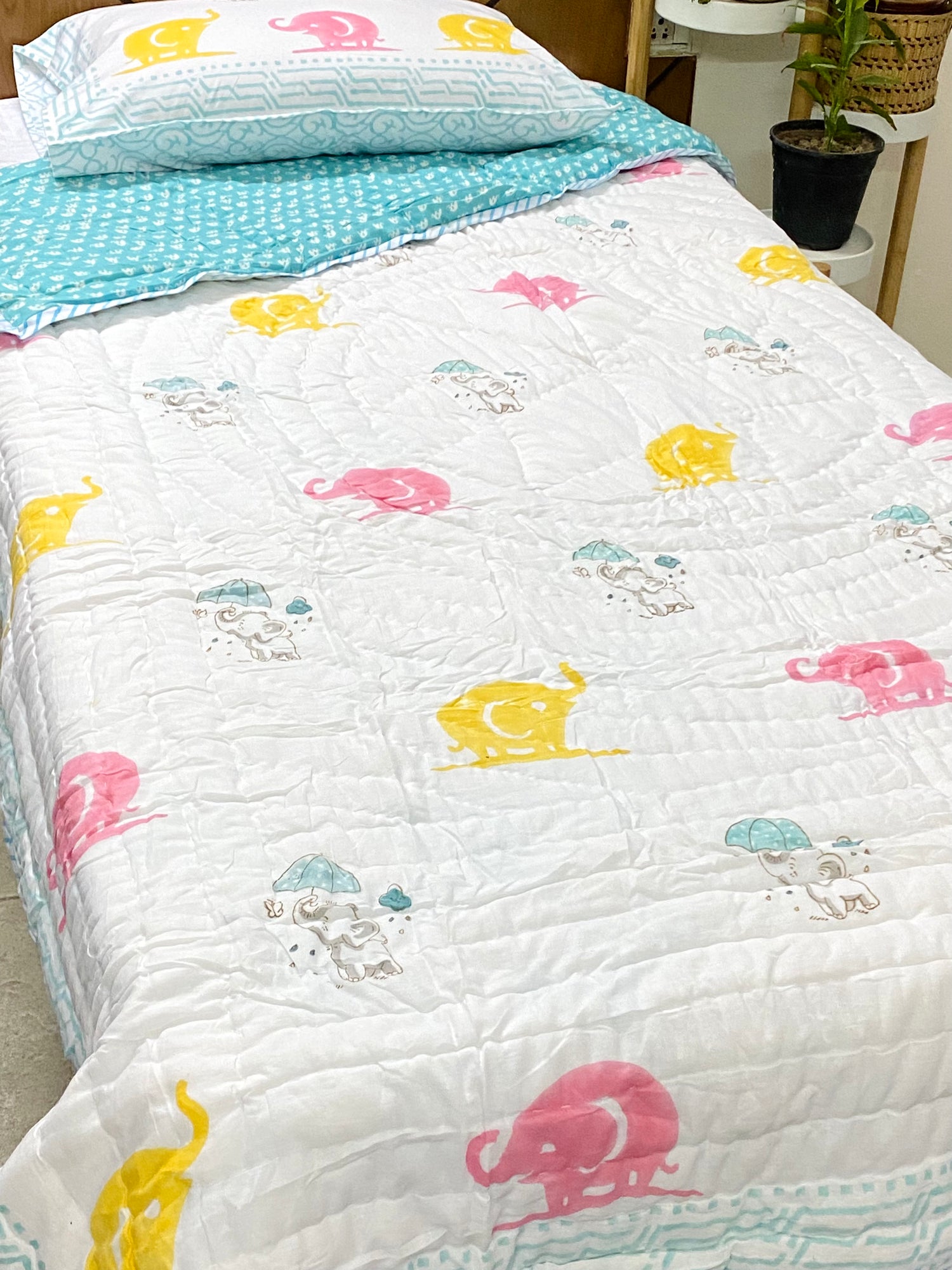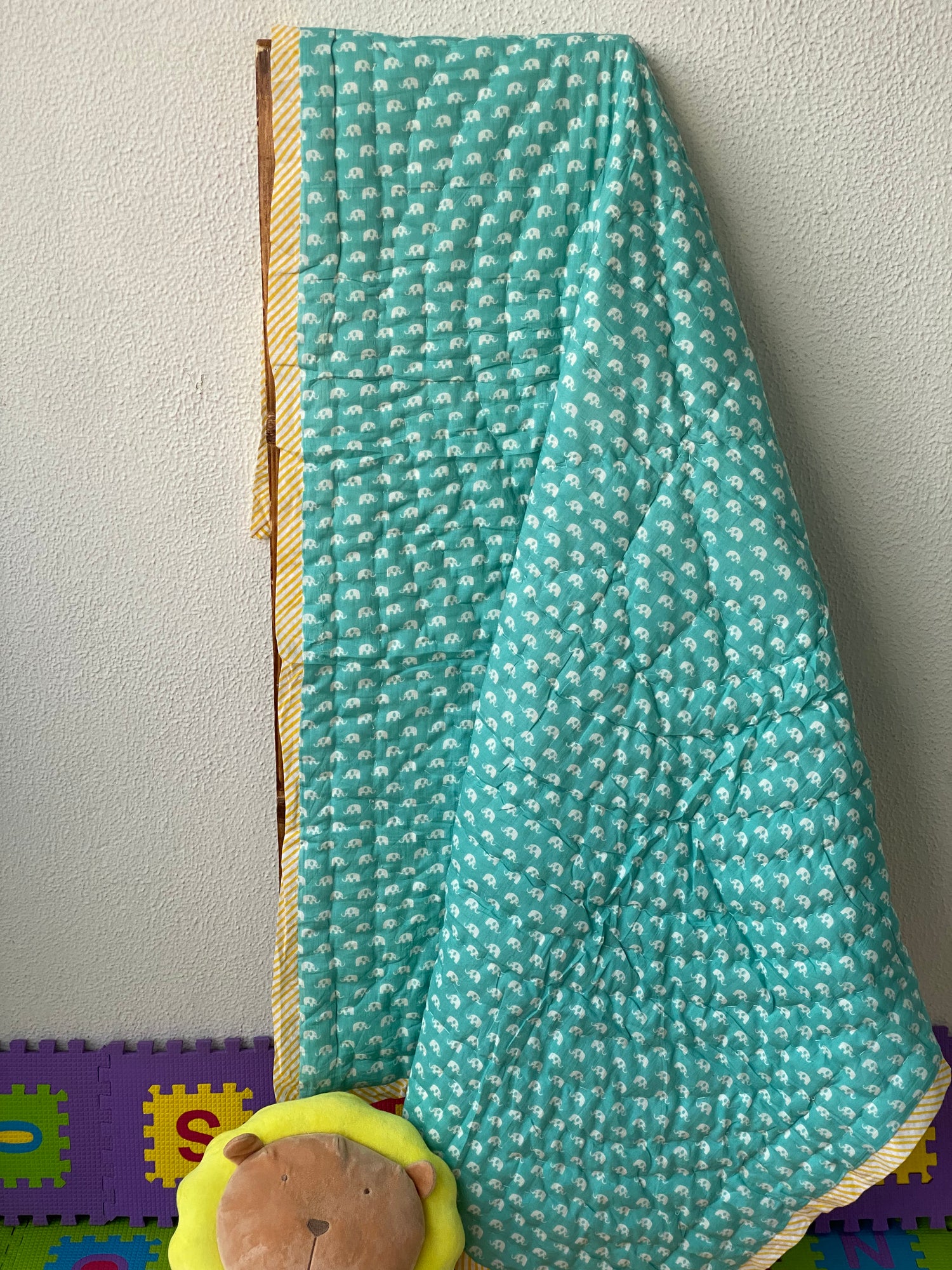 Elephant Blockprint Quilt - Kids Size (60*40 inches) 0-6 yrs is backordered and will ship as soon as it is back in stock.