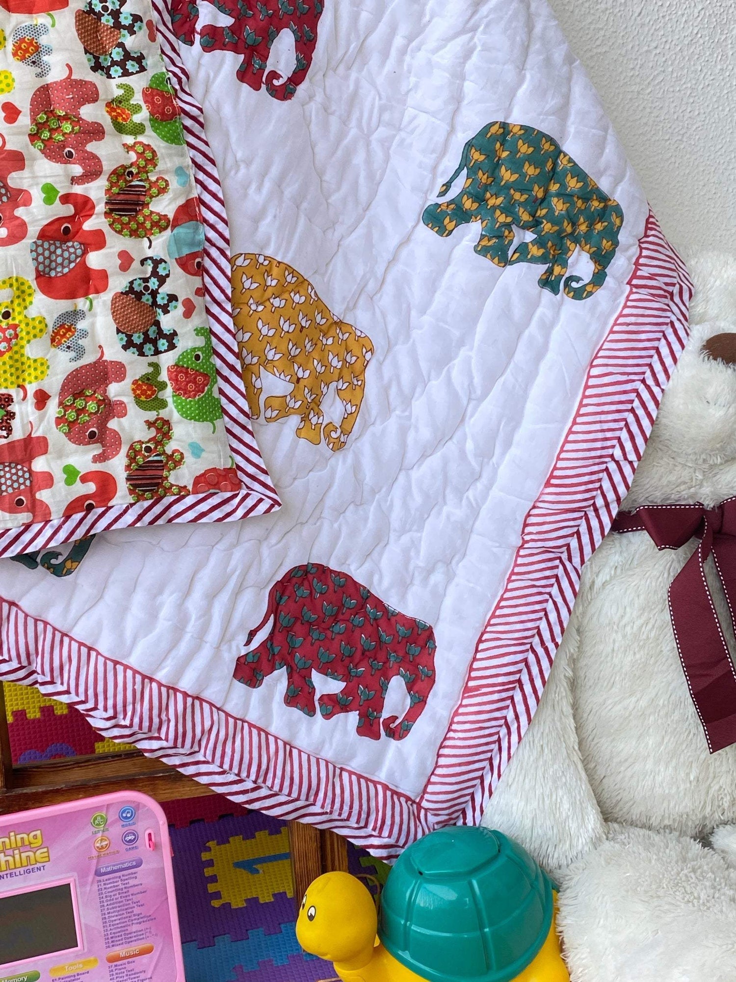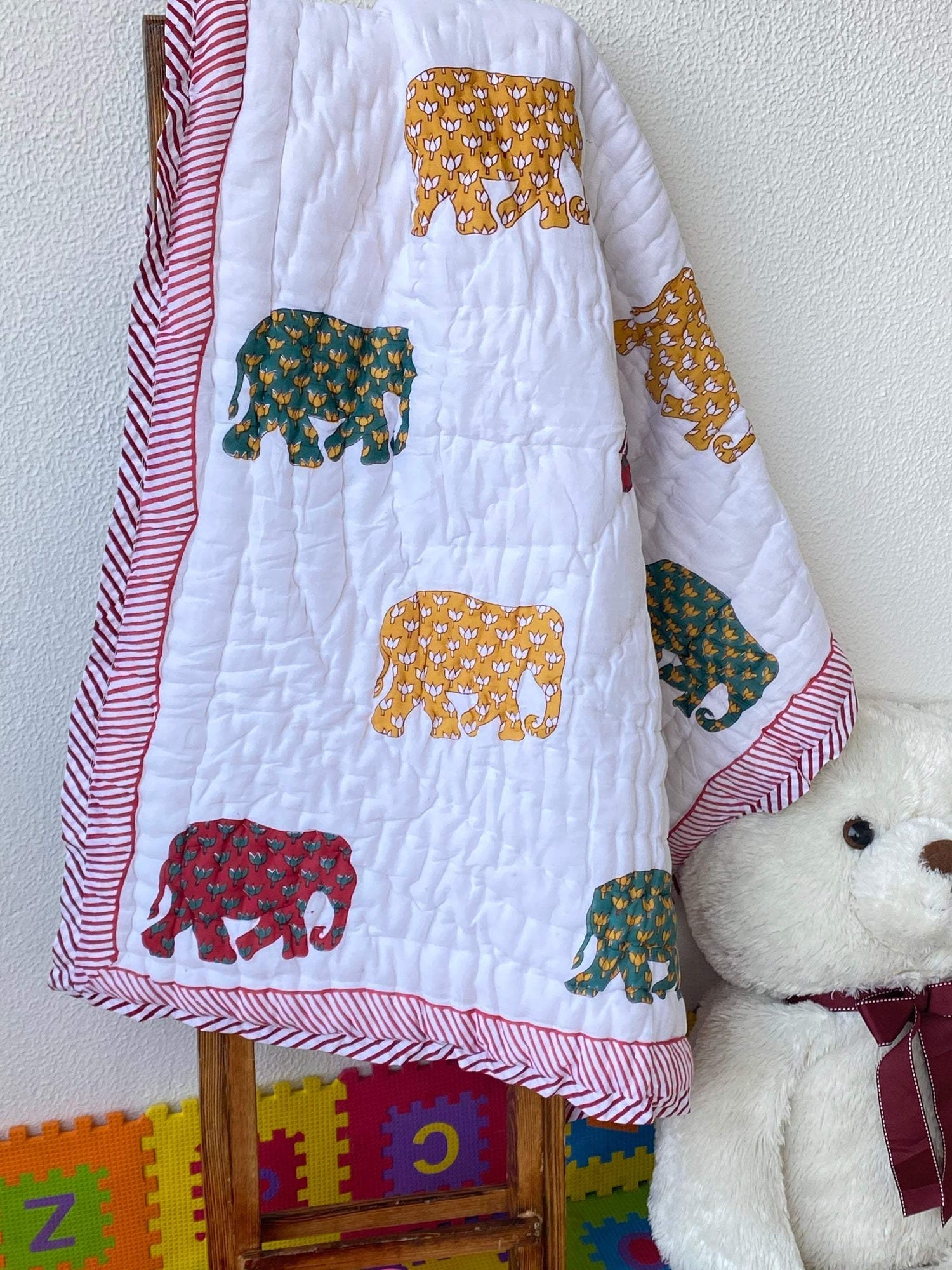 Elephant HandBlock Printed Mulmul Reversible Quilt - Single Size (90*60 inches) +6 yrs is backordered and will ship as soon as it is back in stock.