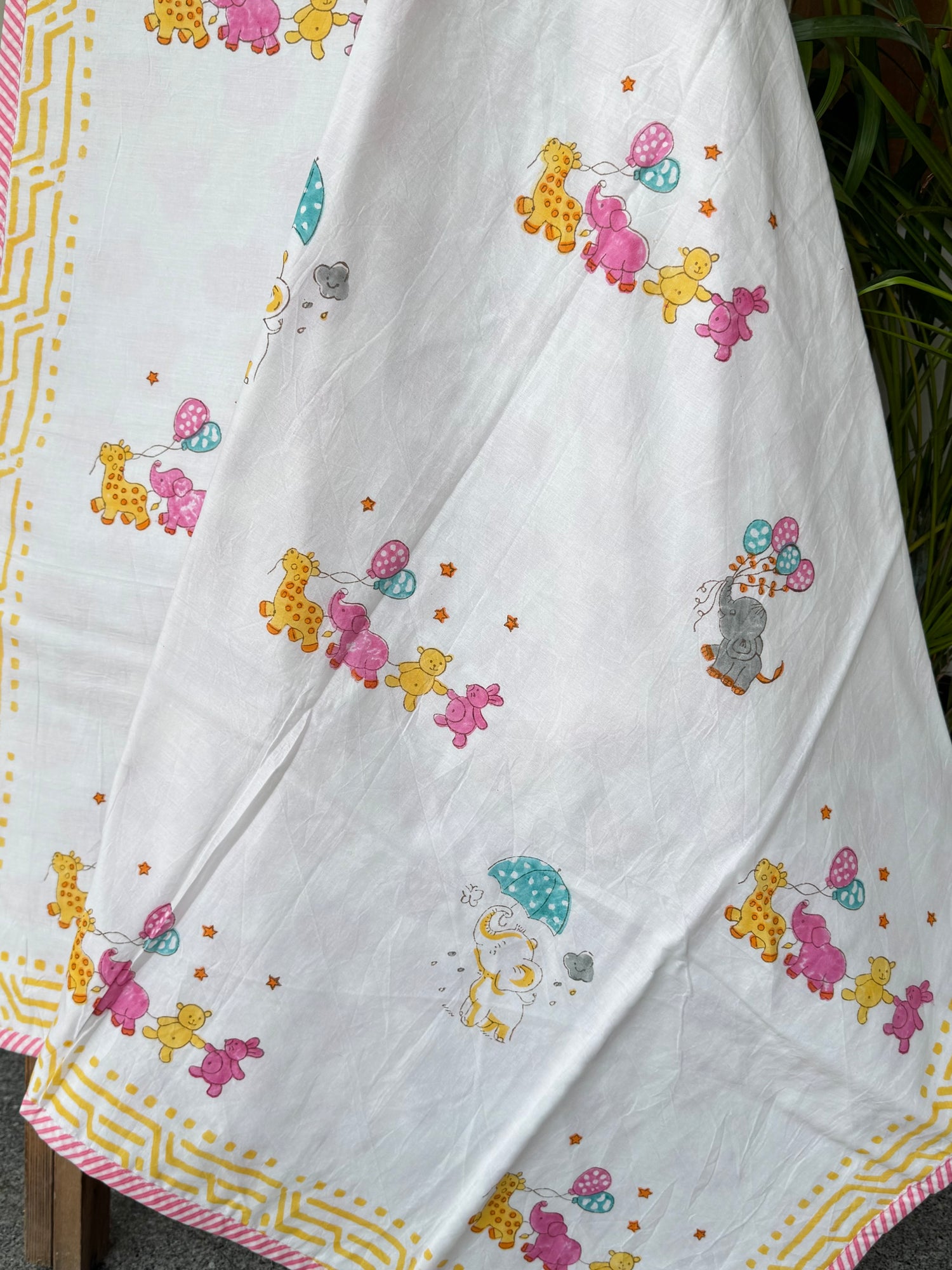 Made with eco‑friendly, azo‑free dyes and sustainable manufacturing, this best‑selling kids bedding staple is gentle on sensitive skin, durable, and machine‑washable for everyday convenience. Whether you’re shopping for nursery décor, birthday party return gifts, baby shower favors, or bulk gifting for schools, daycares, and events, the Skewed Elephant Parade Dohar delivers both style and comfort. Small business owners, boutiques, and international resellers can also reach out for bulk rates and custom packaging.