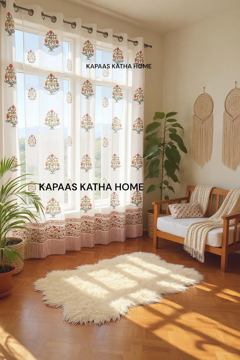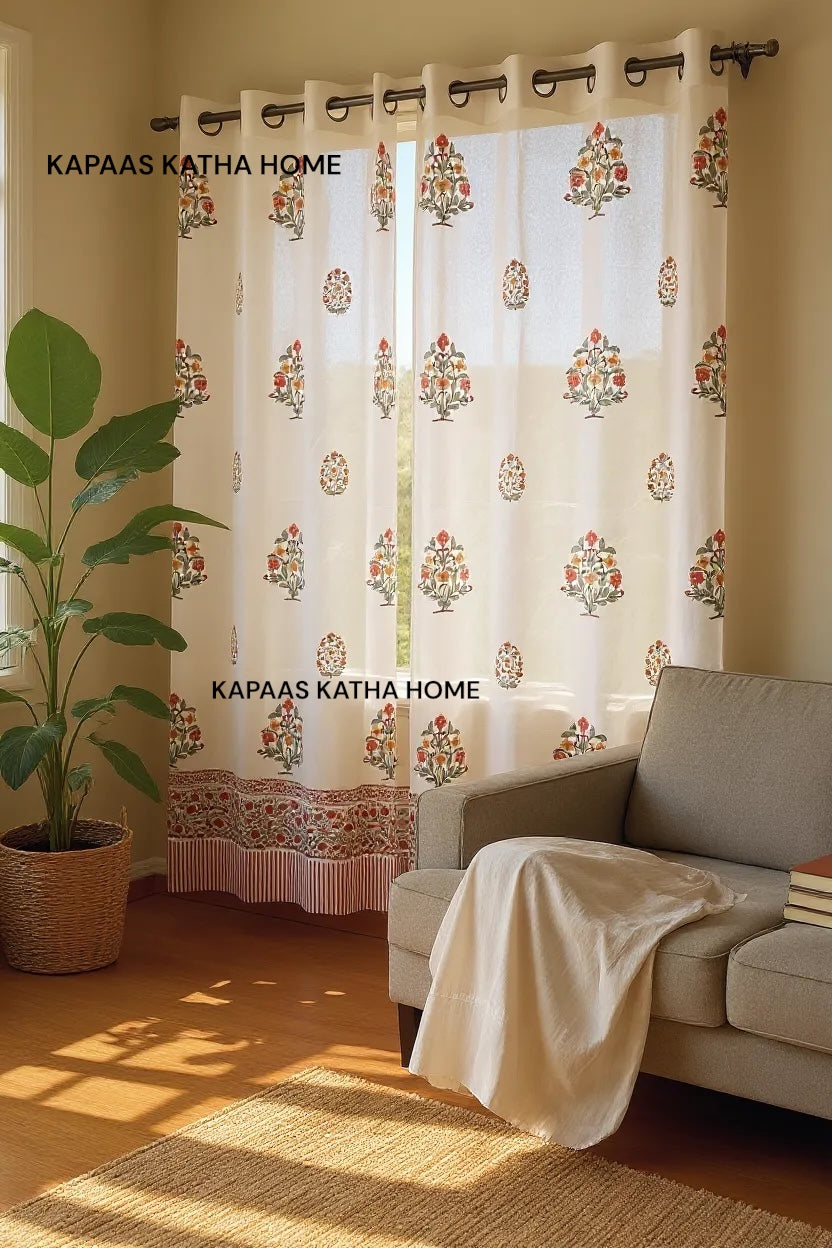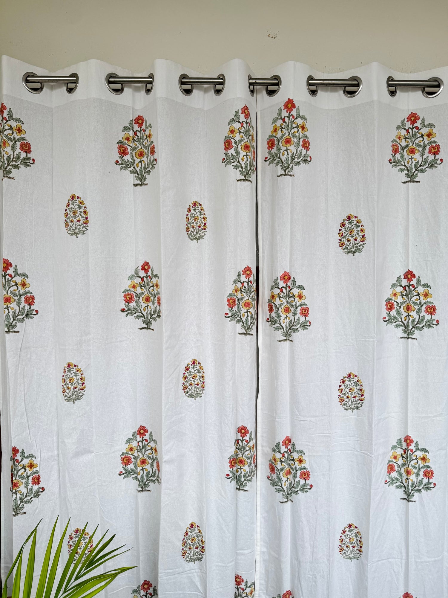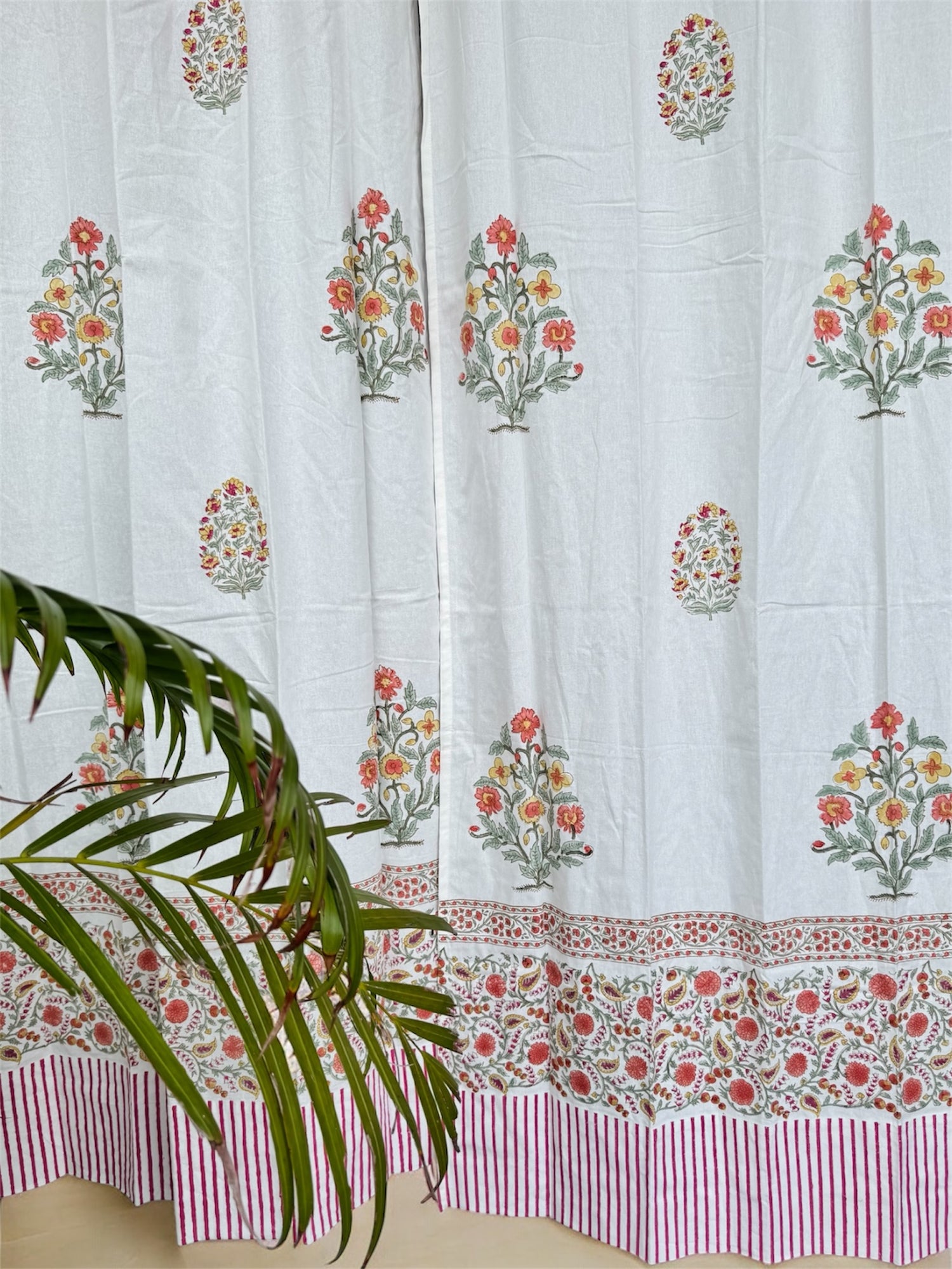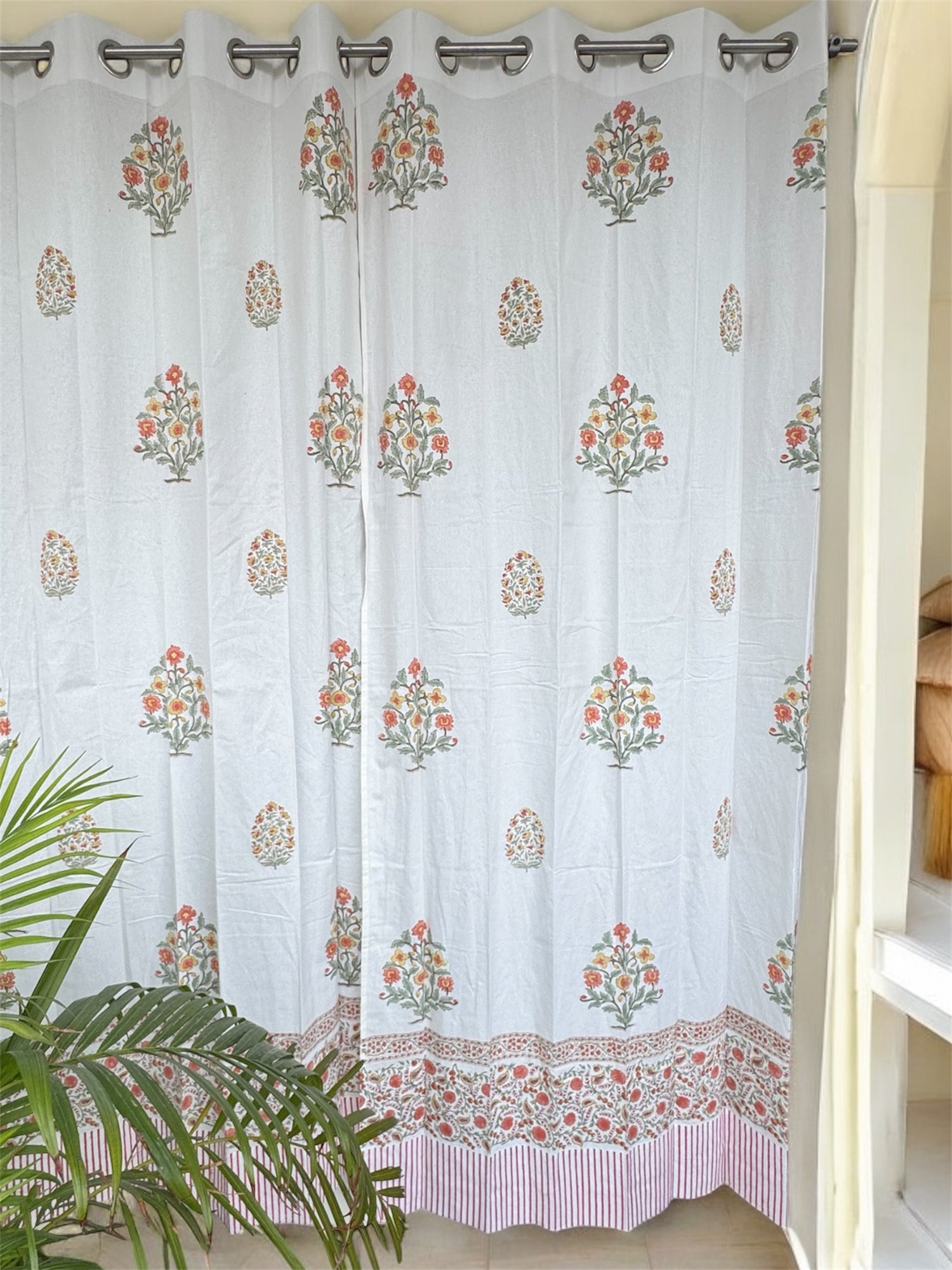 Floral Jaipur Blockprint Cotton Curtain - 7ft long is backordered and will ship as soon as it is back in stock.