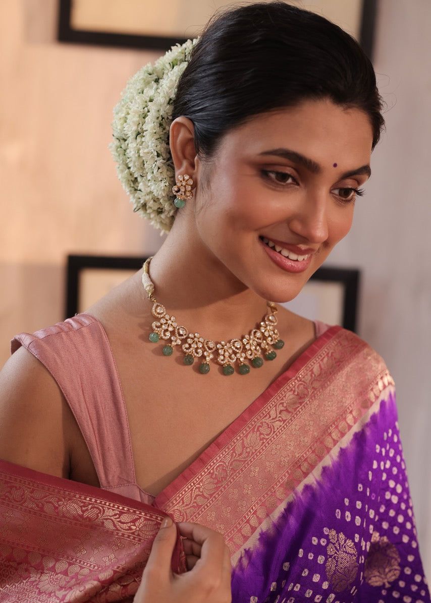Floral Radiance Moissanite Polki 92.5 Silver Necklace Set
