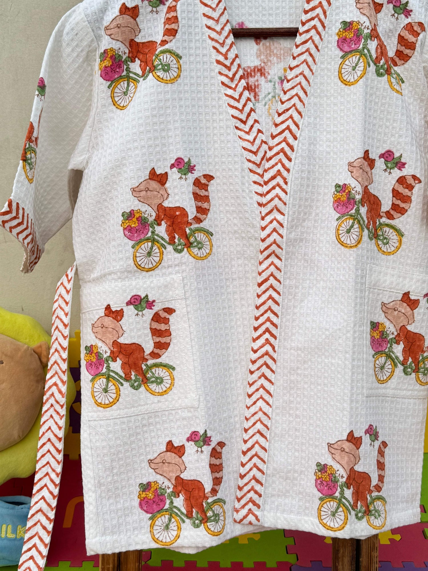 Fox on the Move- Kids Cotton Waffle Bathrobe