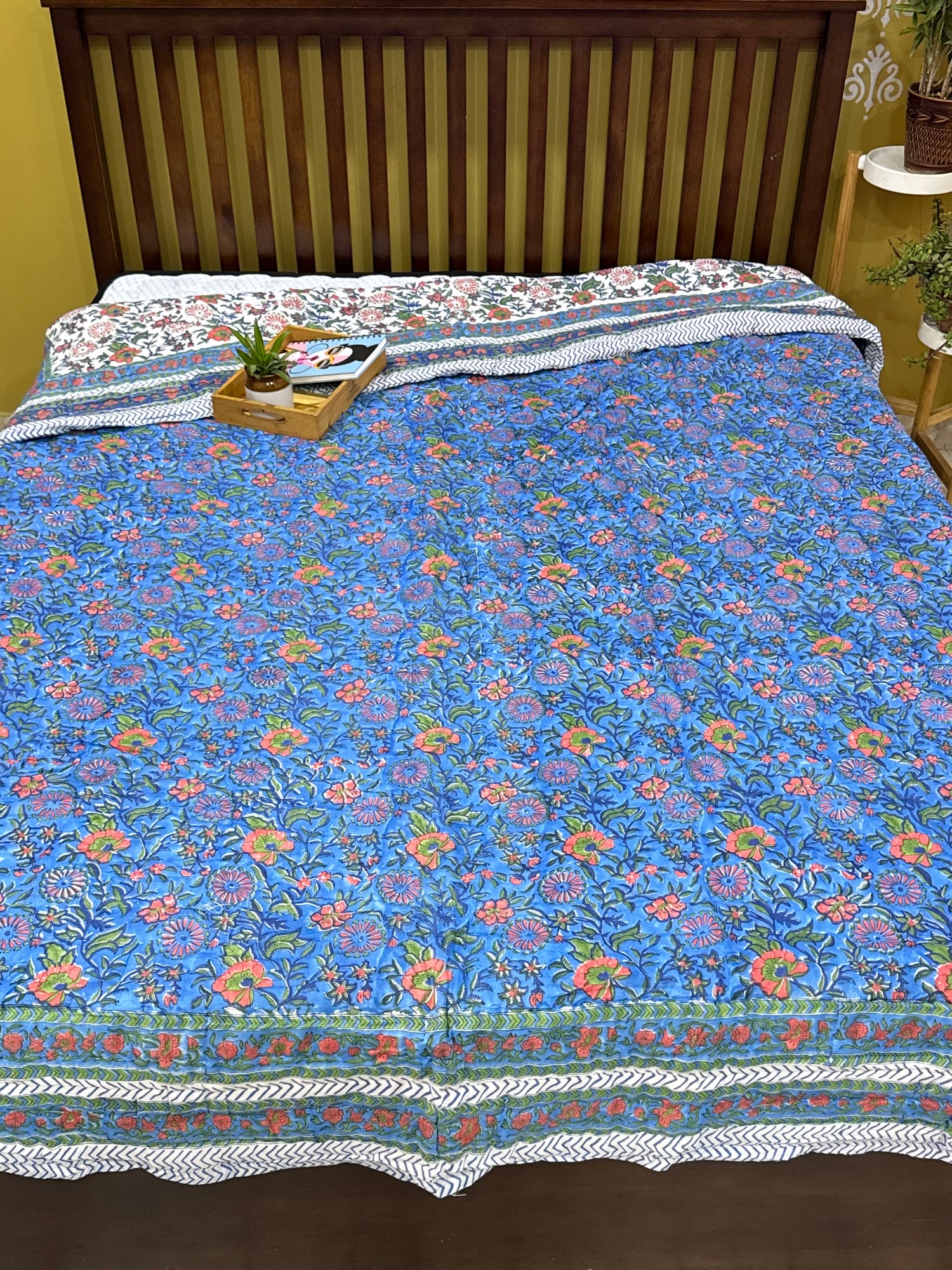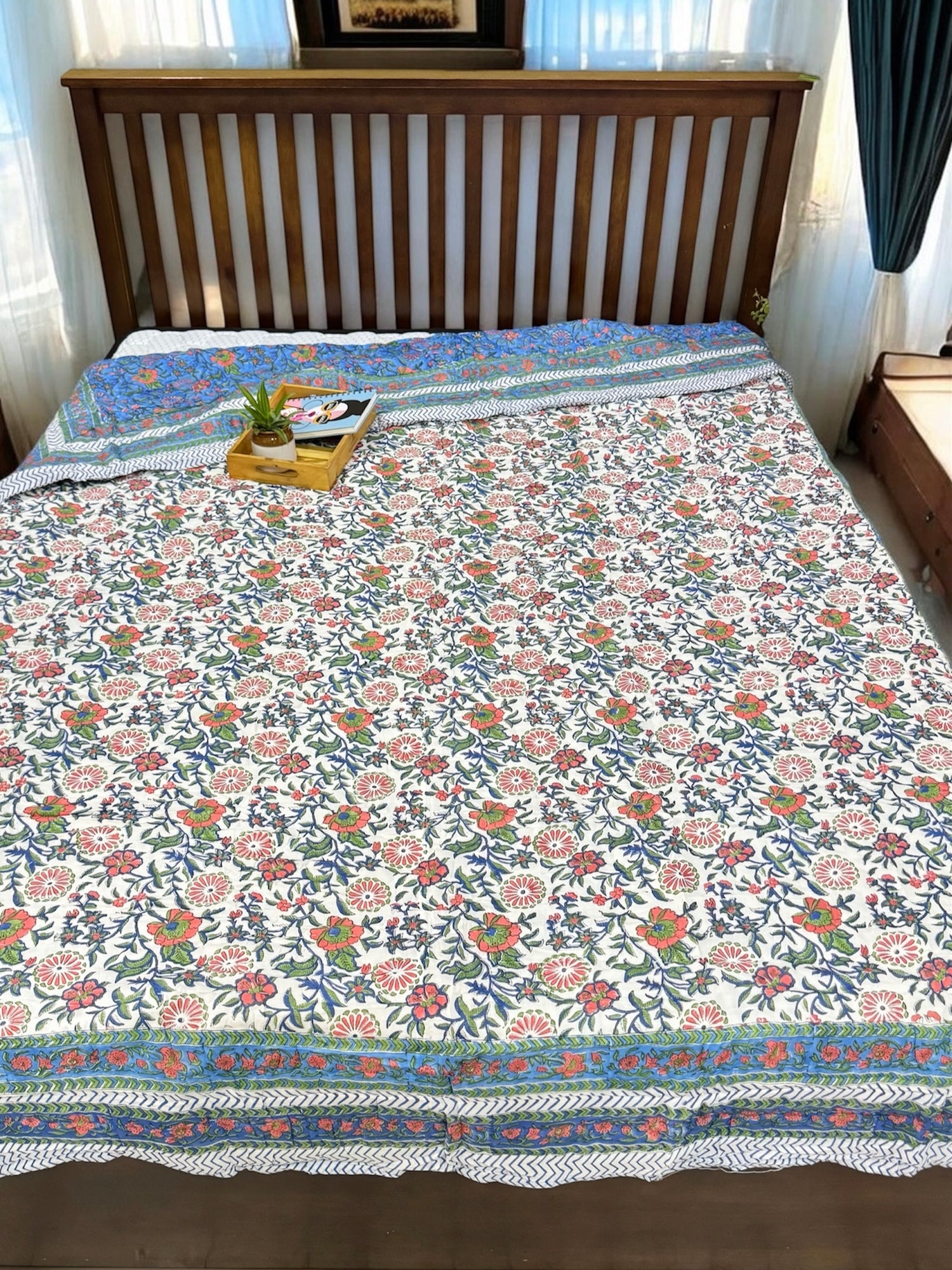 Fresh Blossom Handblock Queen Size Mulmul Cotton Quilt