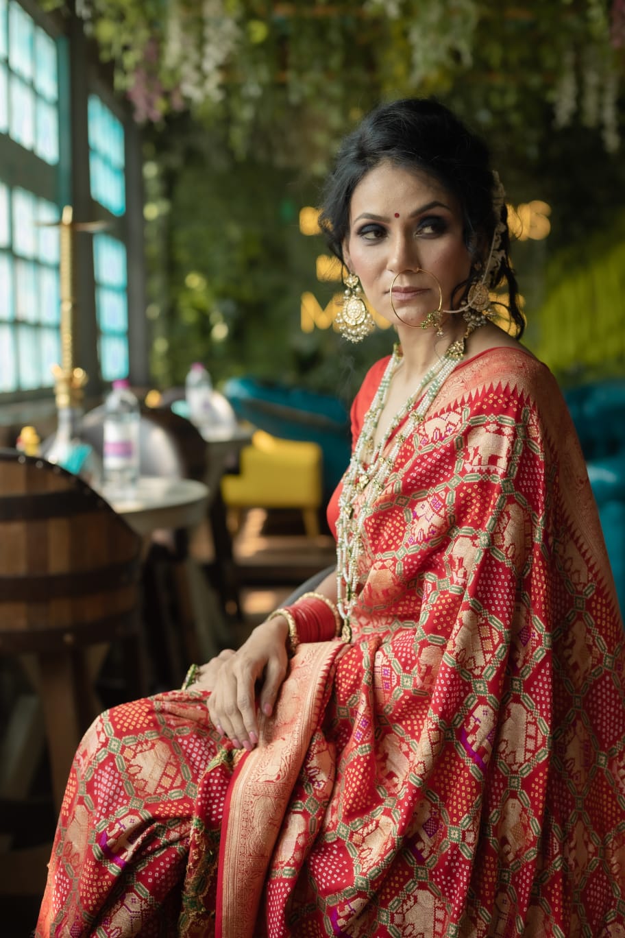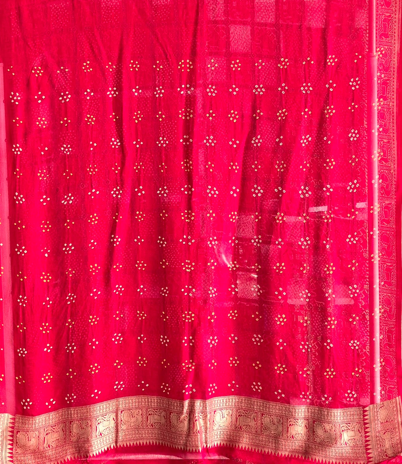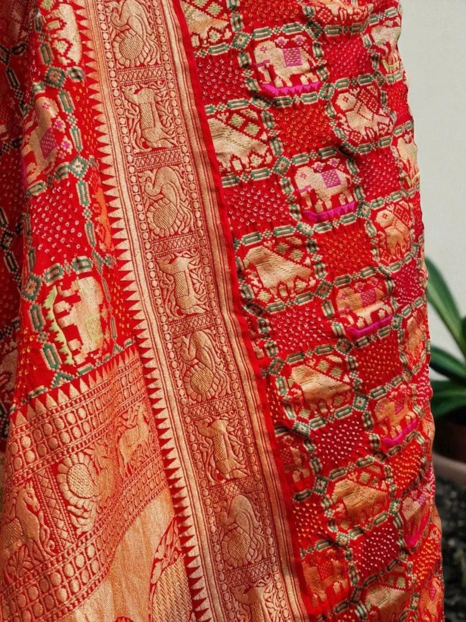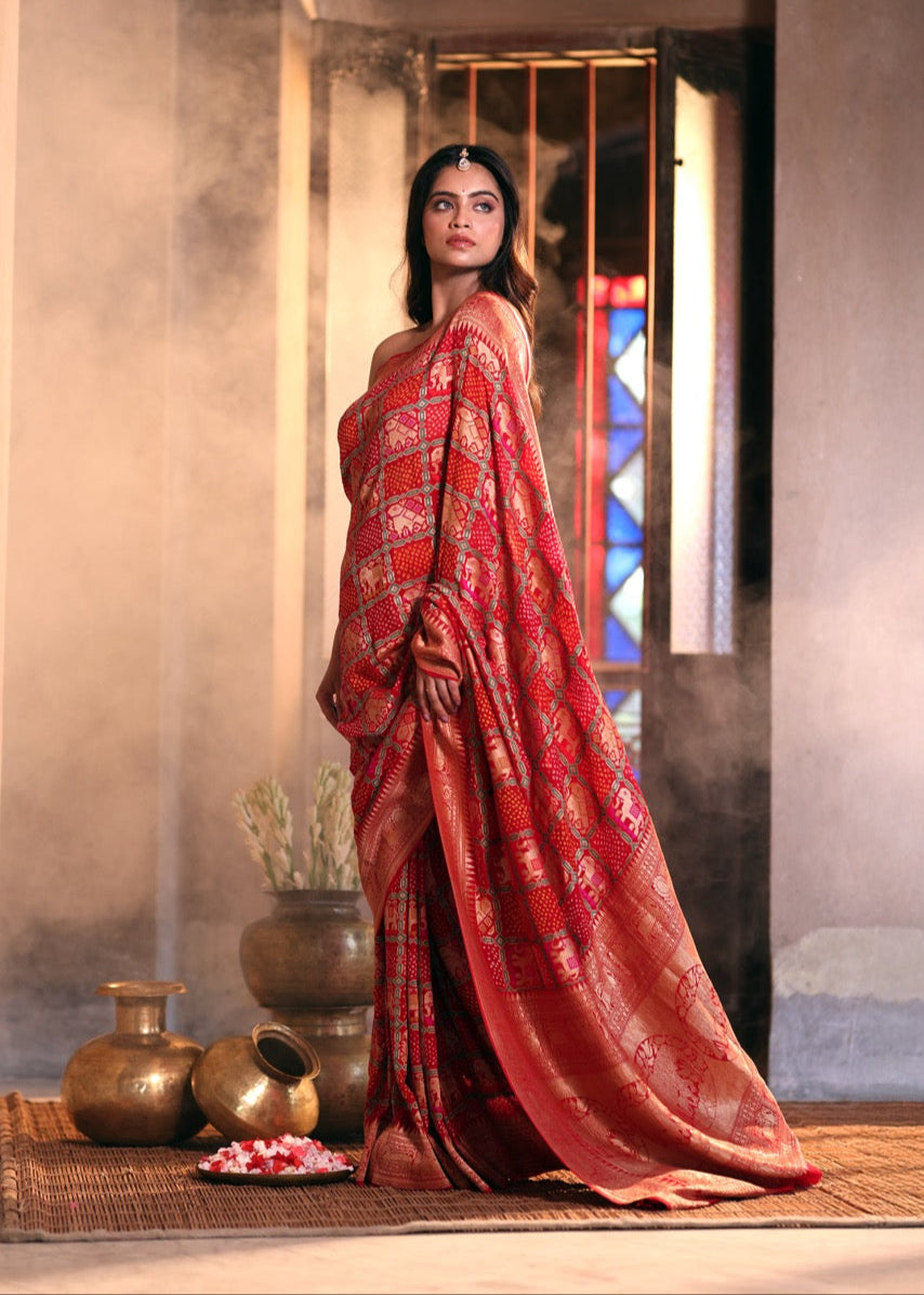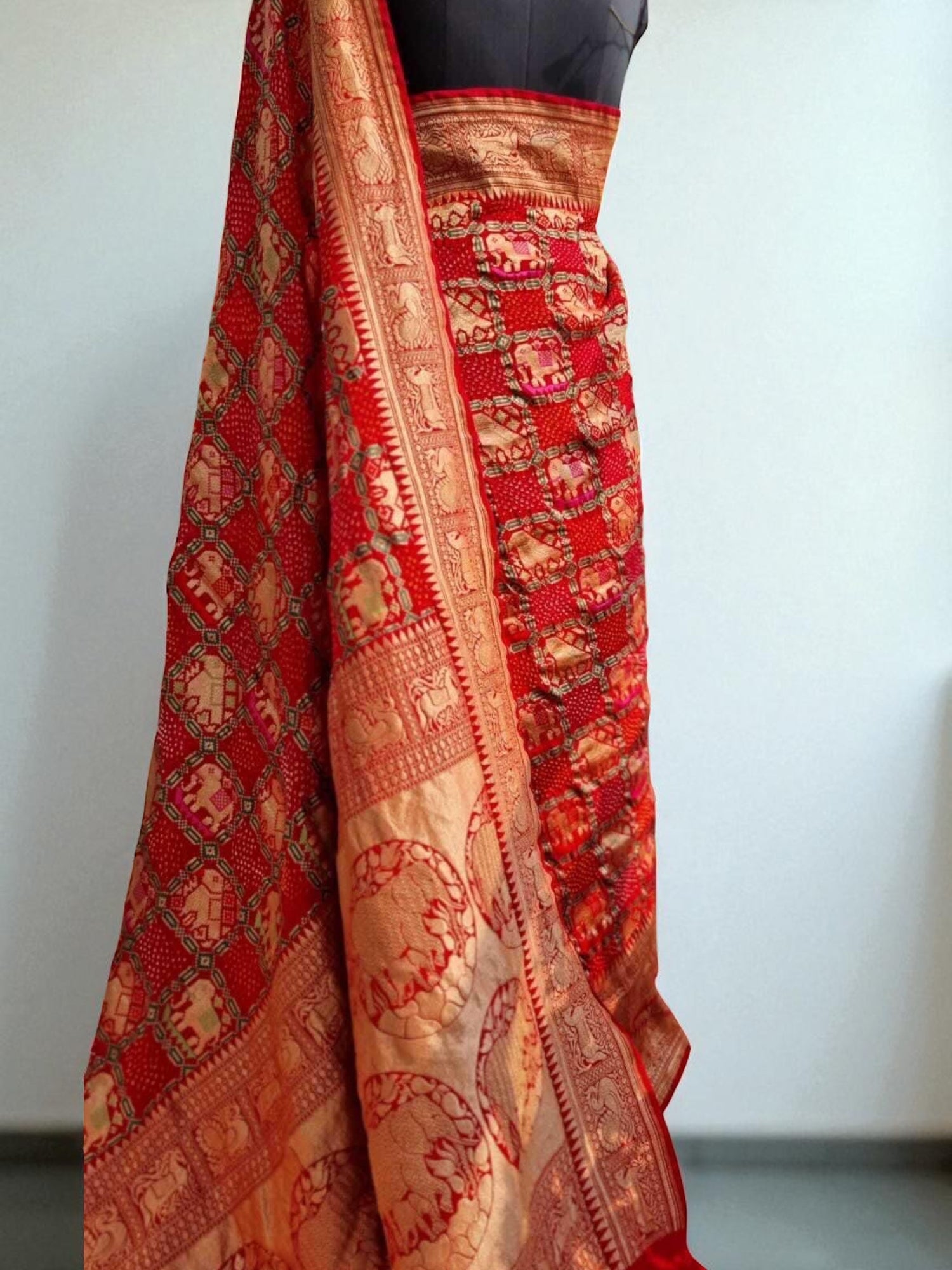 Gajraj Theme Red Banarasi Georgette Bandhani Saree