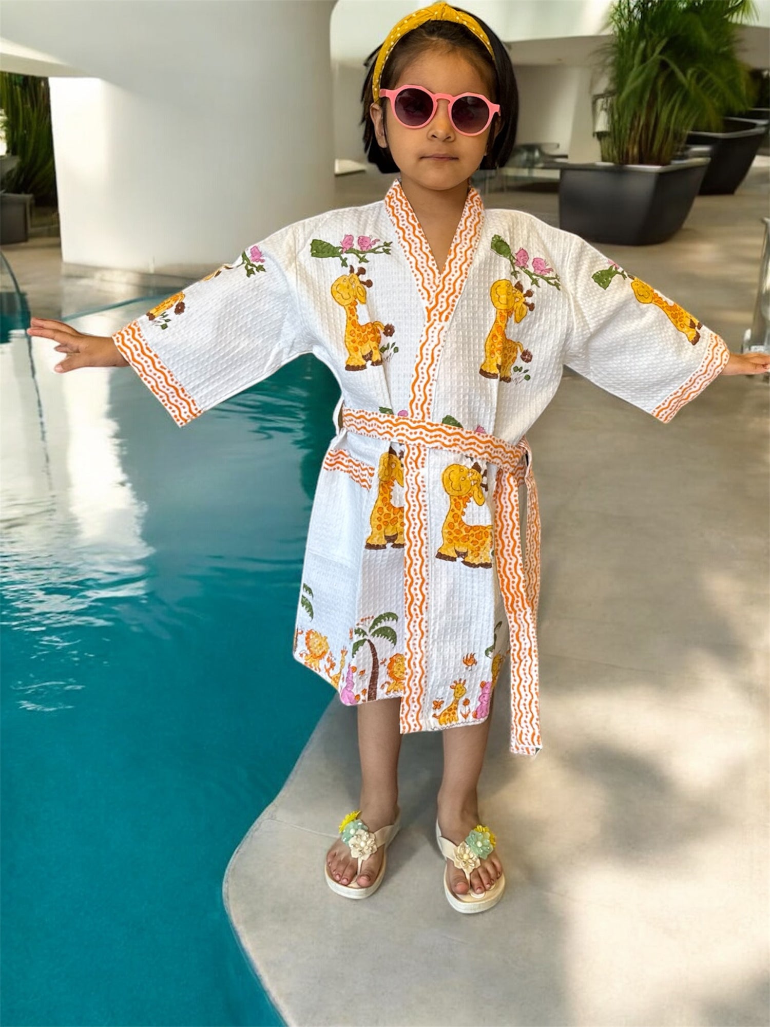 Giggly Giraffe- Kids Cotton Waffle Bathrobe