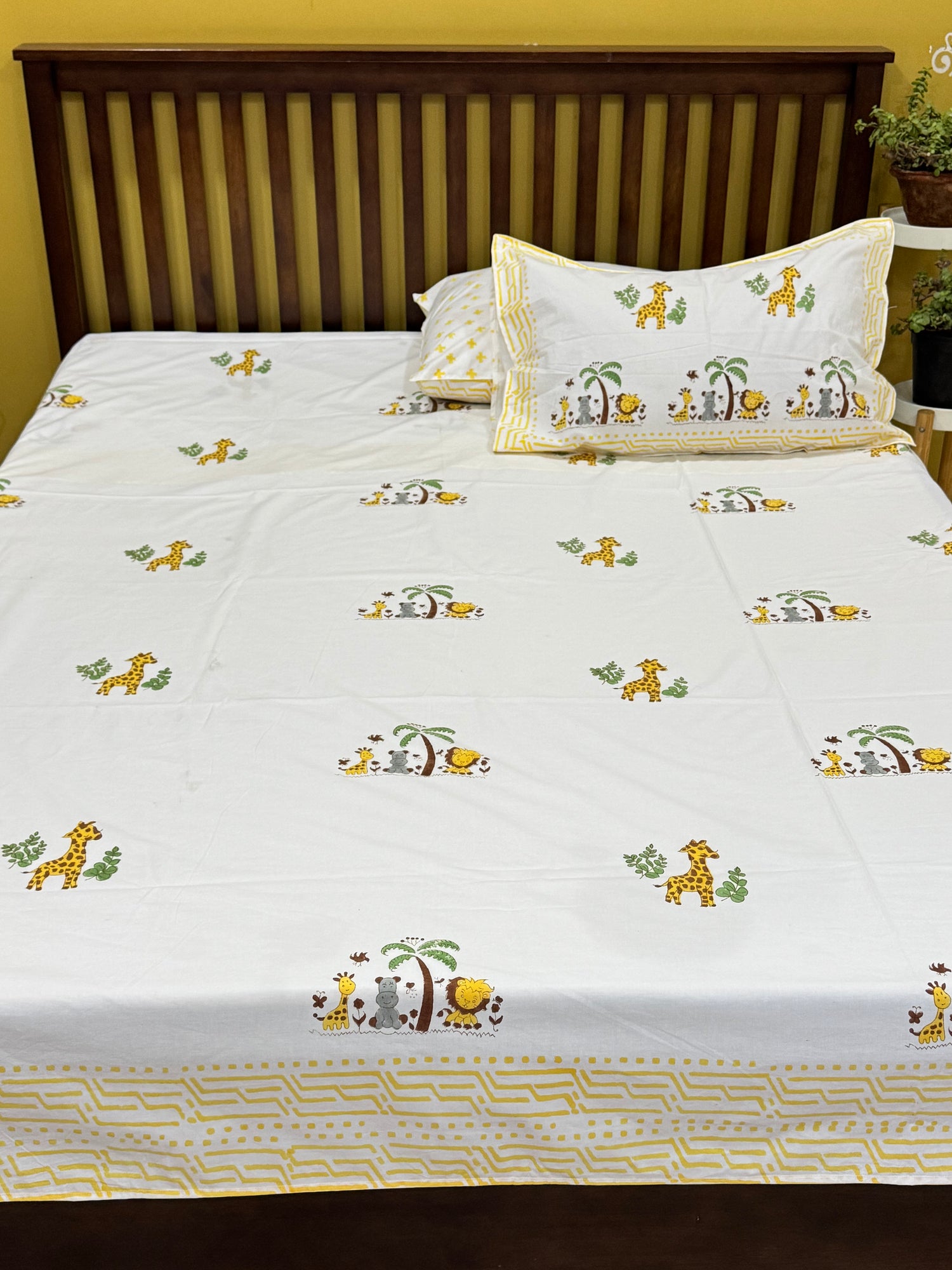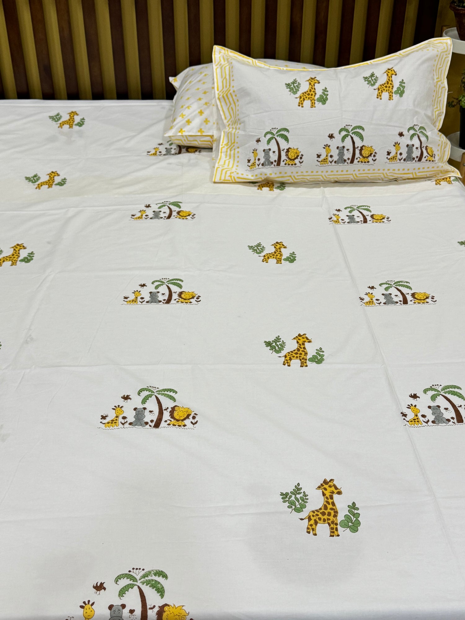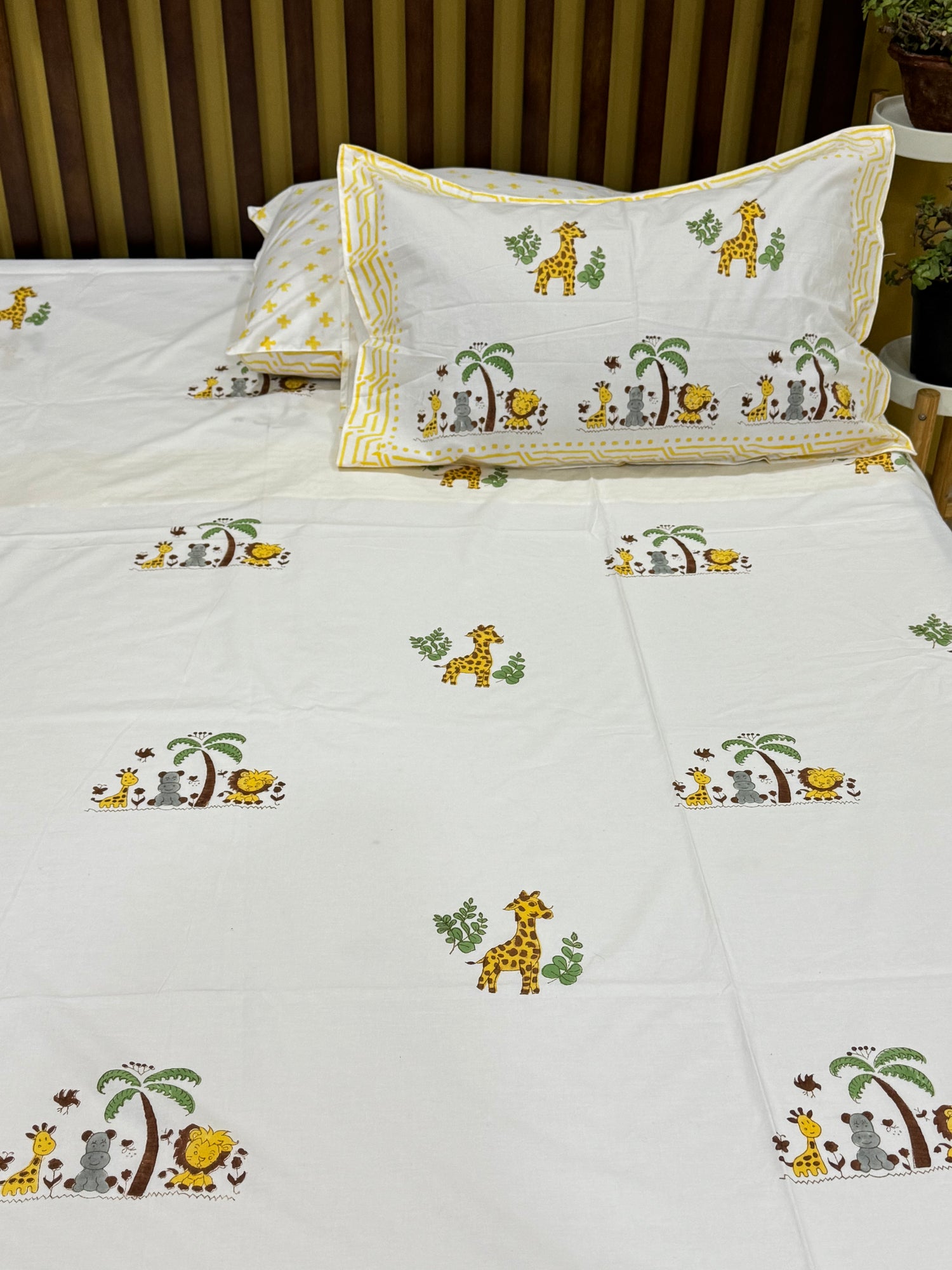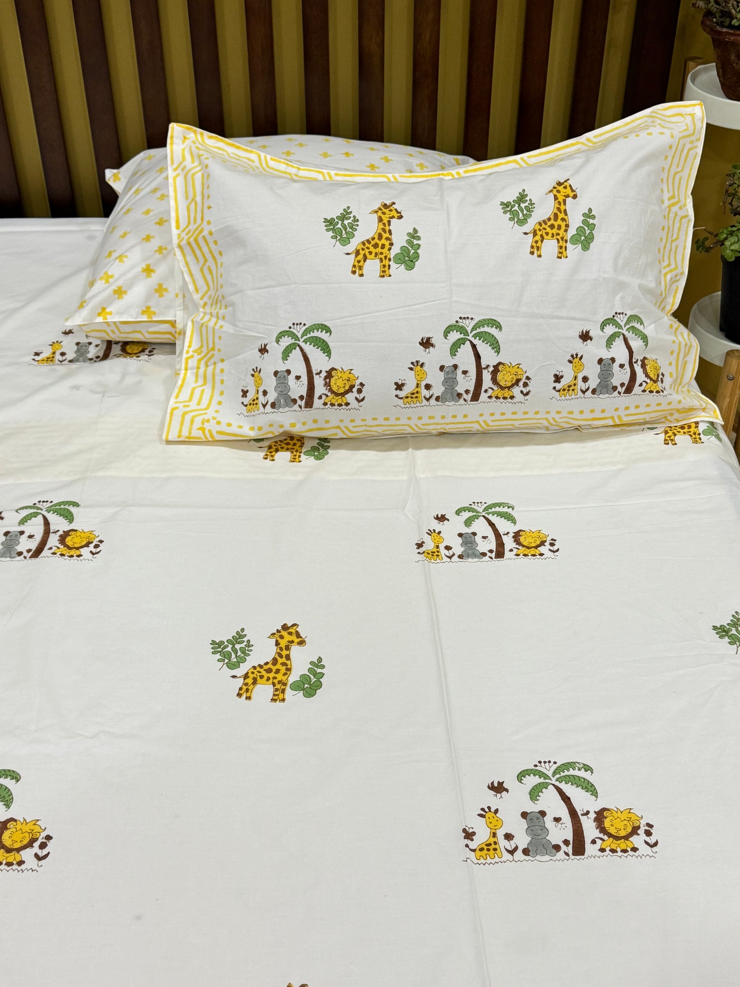 Giraffe and Friends Handblock Printed Kids Cotton Bedsheet