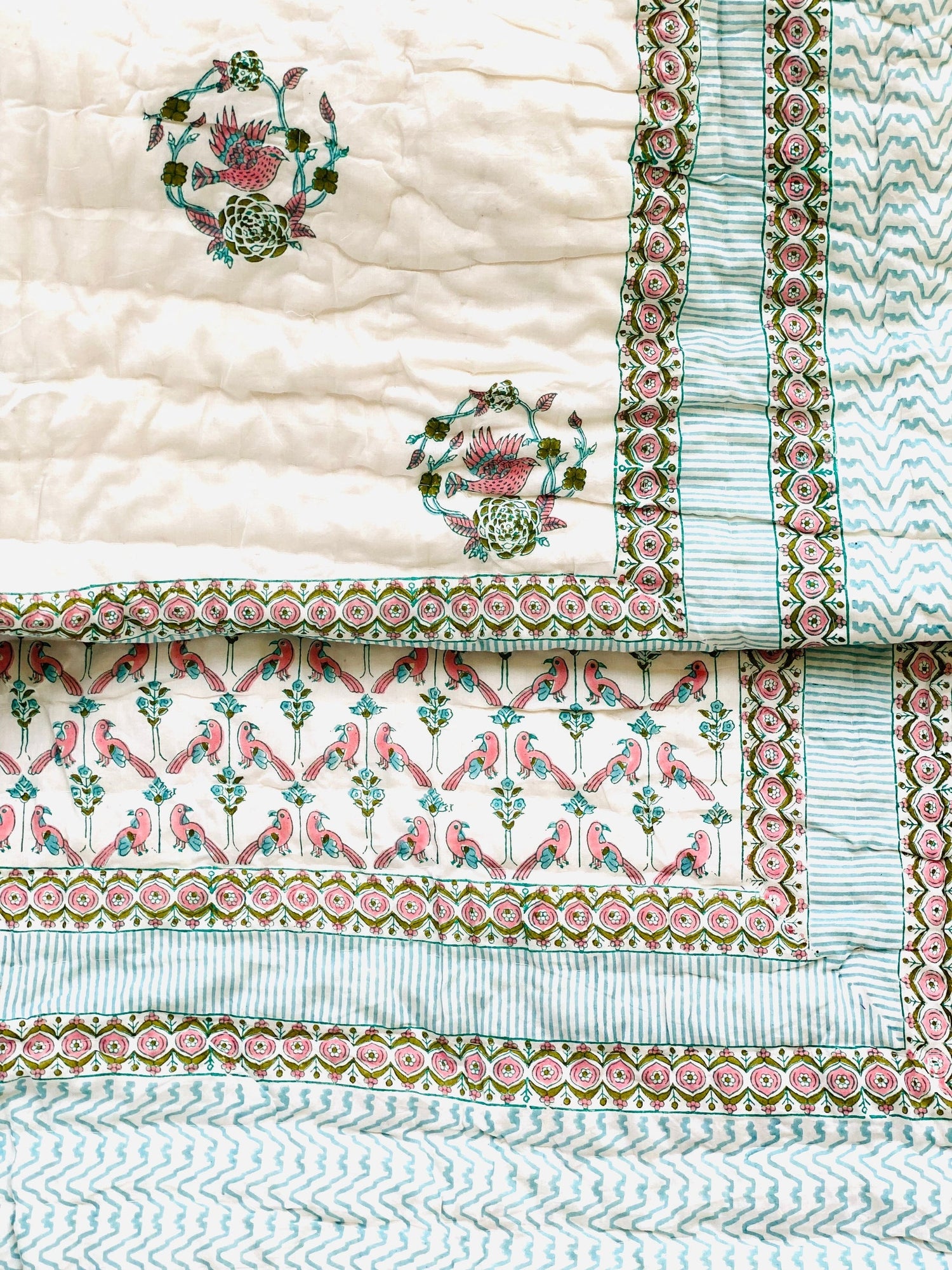 - Hand block printed and hand stitched