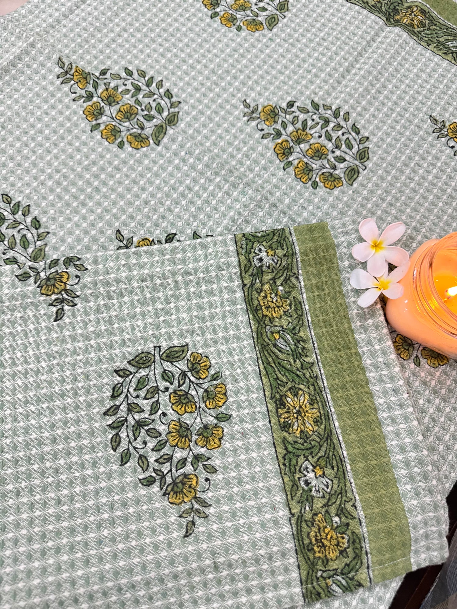 Green Blockprint Cotton Hand Towel- Set of 2 is backordered and will ship as soon as it is back in stock.