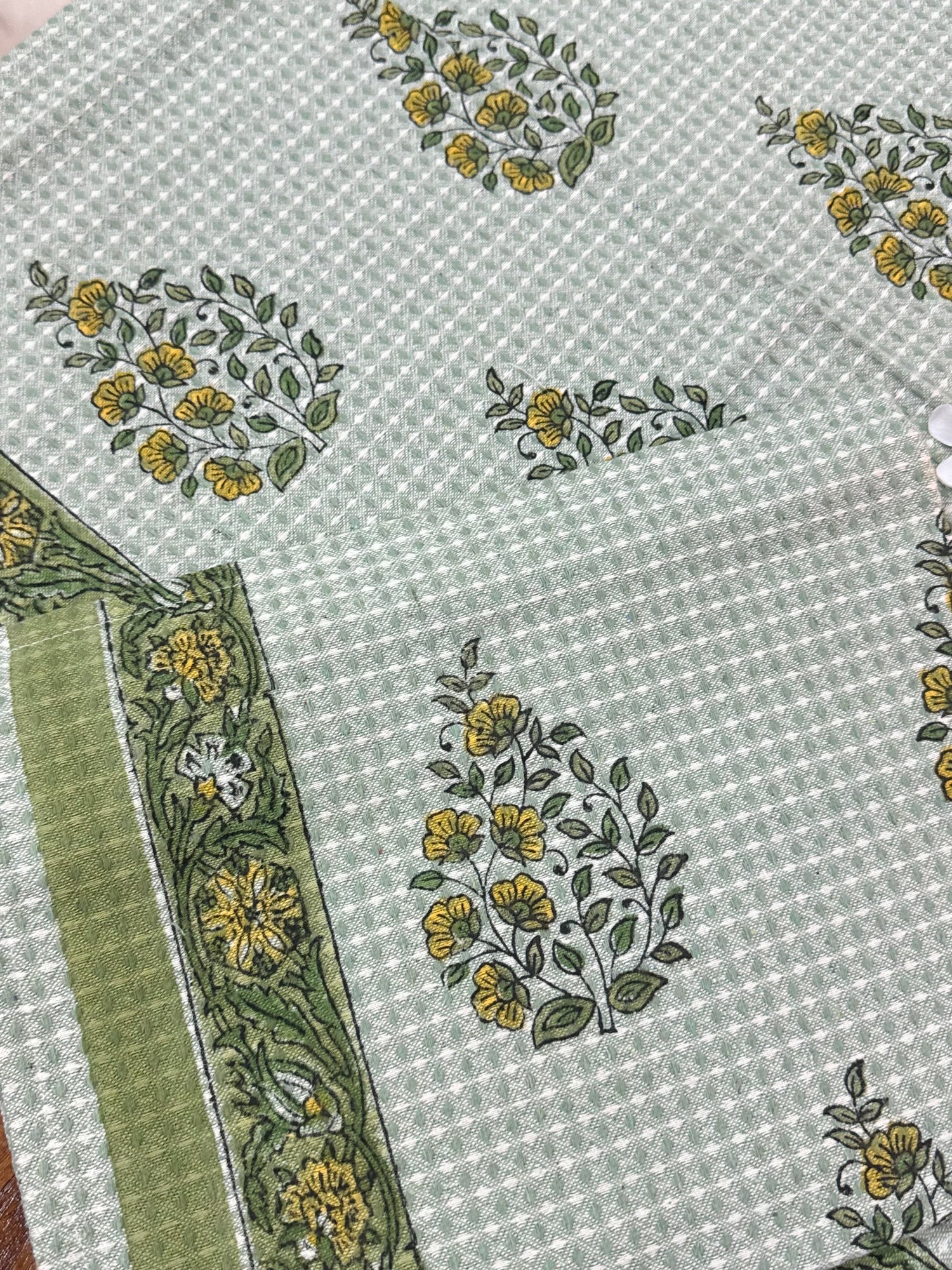 - Color Variations: Hand blockprinting can result in slight variations in color intensity or hue between different prints or batches of fabric. Please note there may be variations in colors due to photography lights and the device used for viewing.