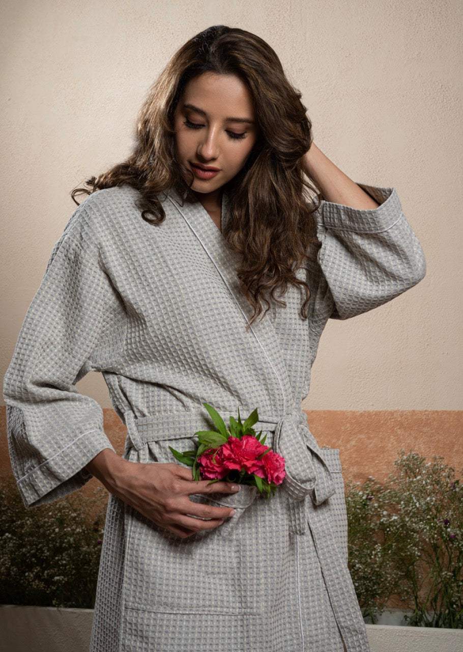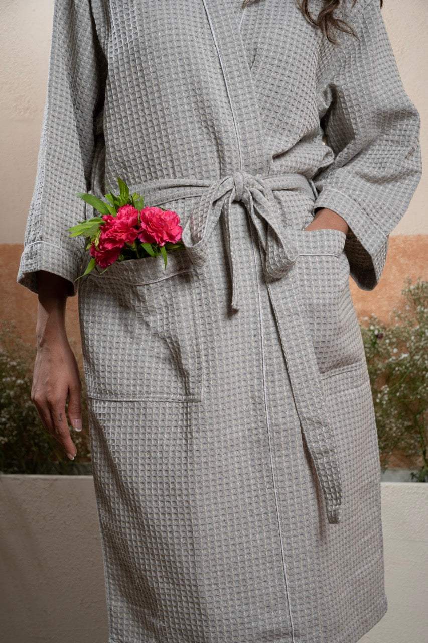 Grey Unisex Cotton Waffle Bath Robe is backordered and will ship as soon as it is back in stock.