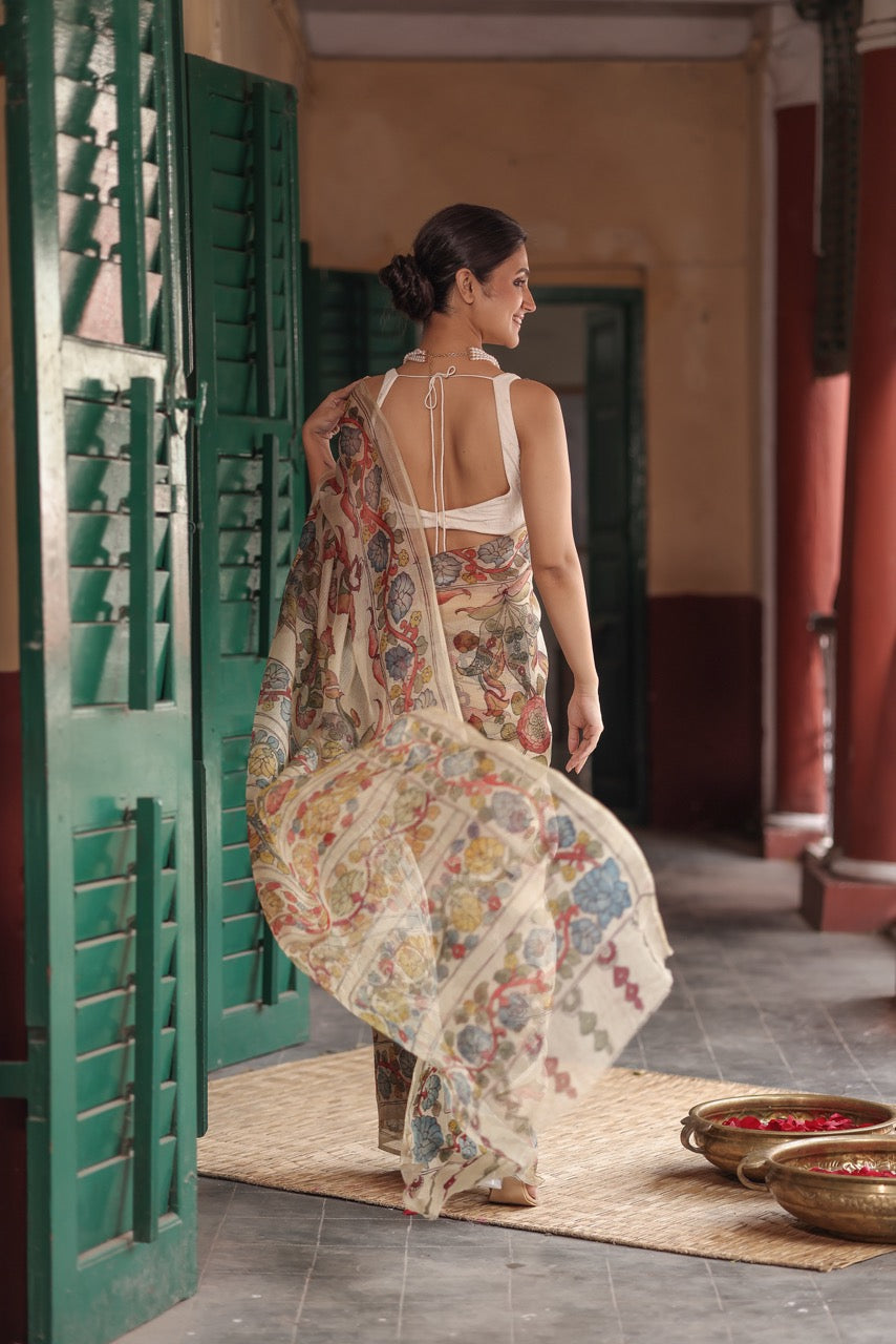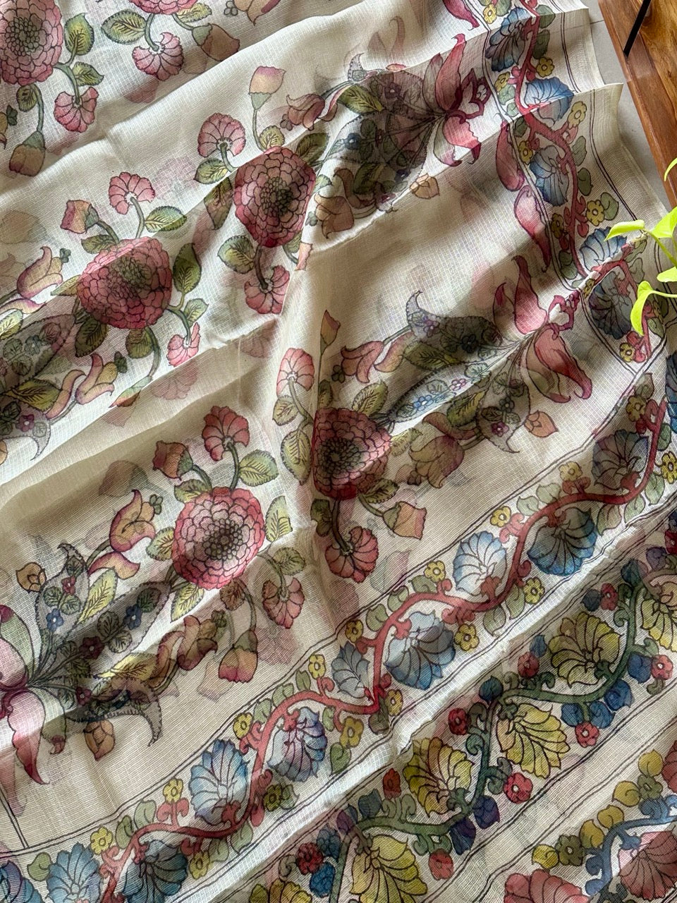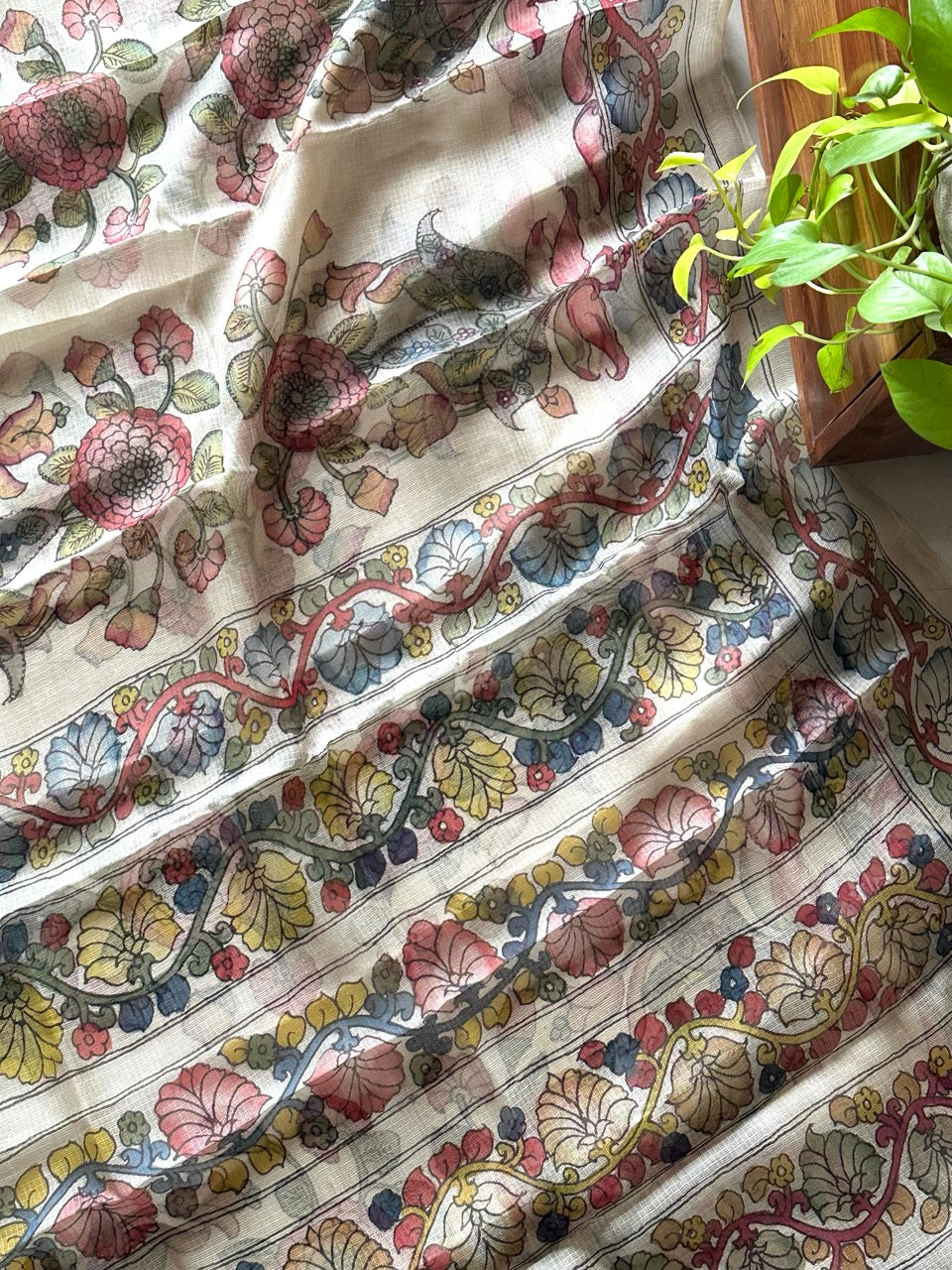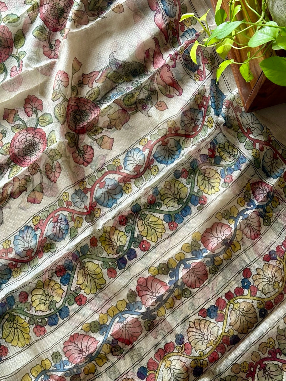 Gulbadan Phoolwari Handcrafted Kota Silk Kalamkari Saree