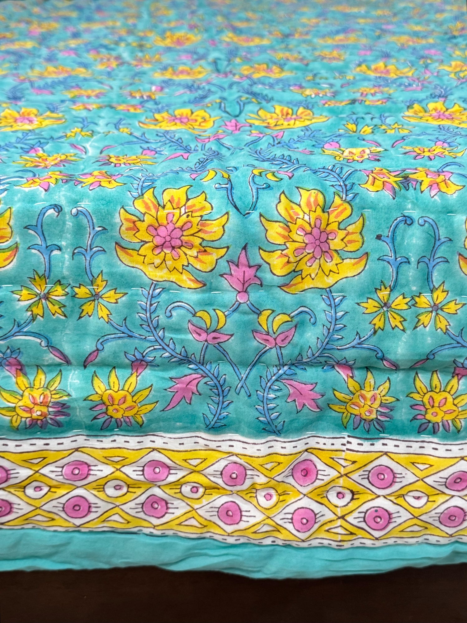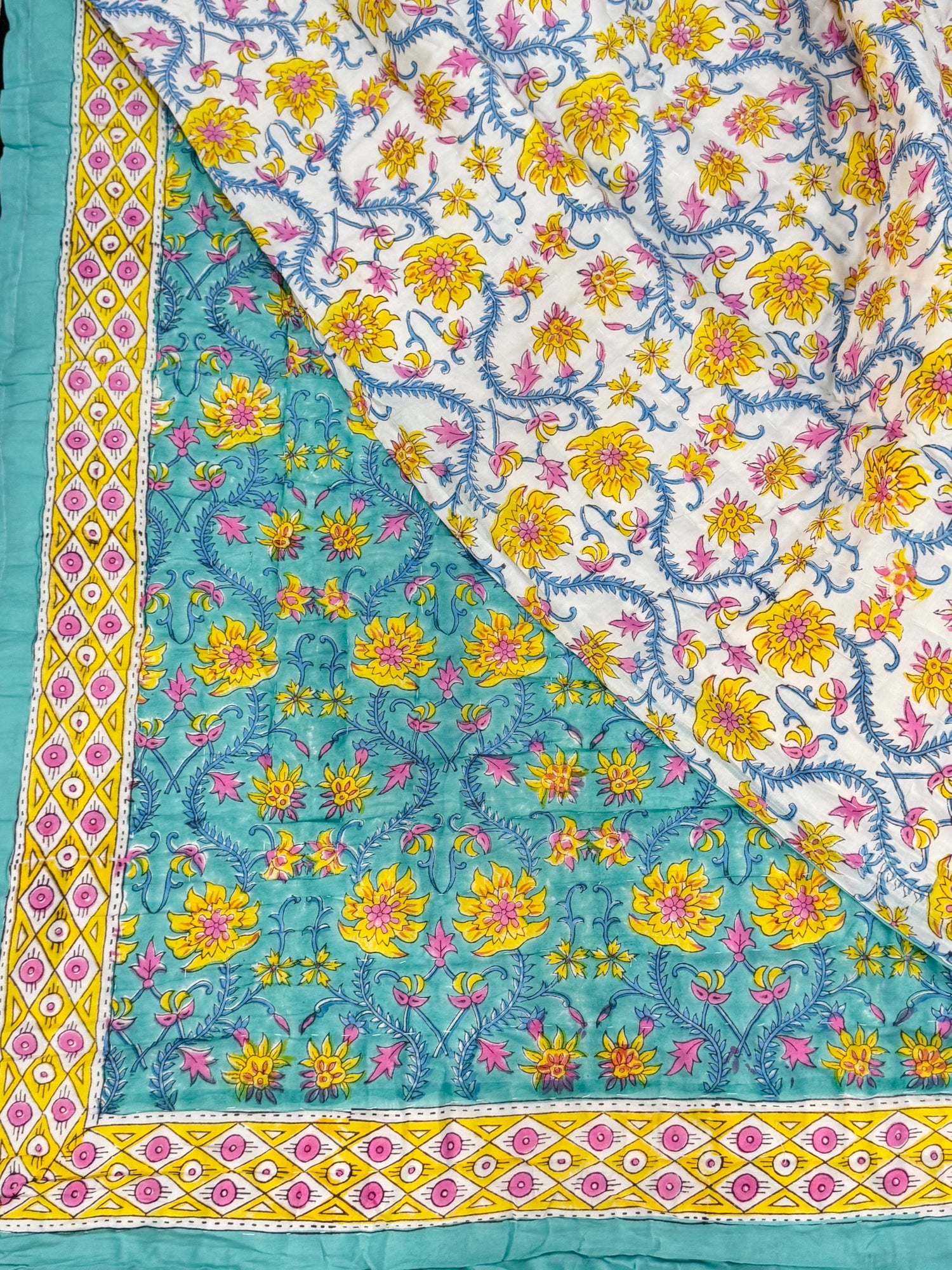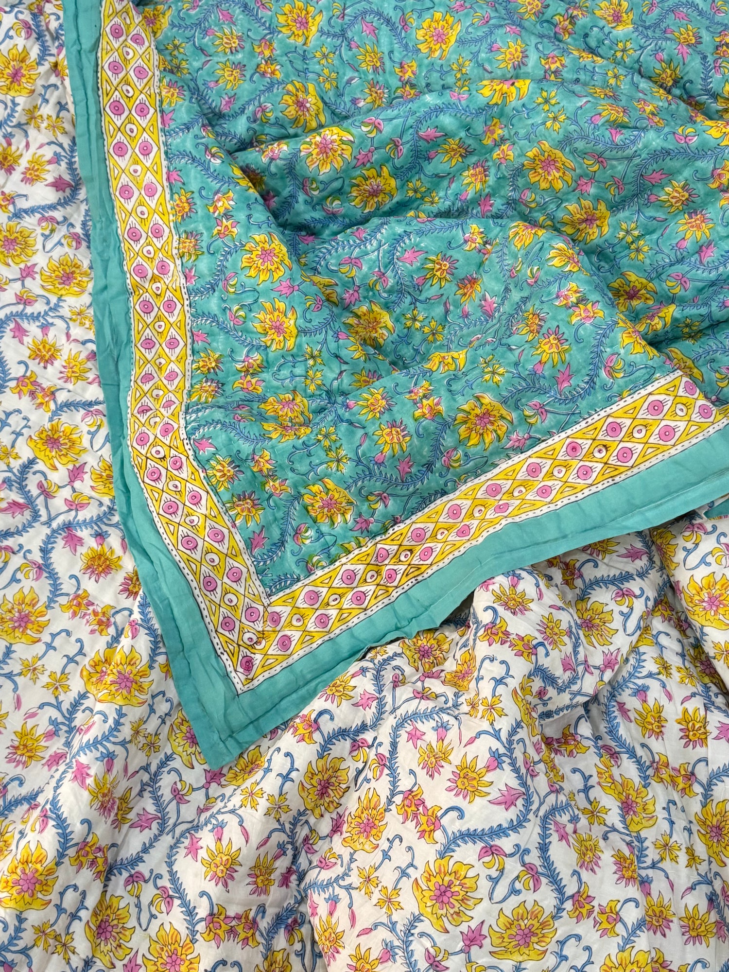 Traditional hand blockprinted and hand-stitched Jaipuri Razaai