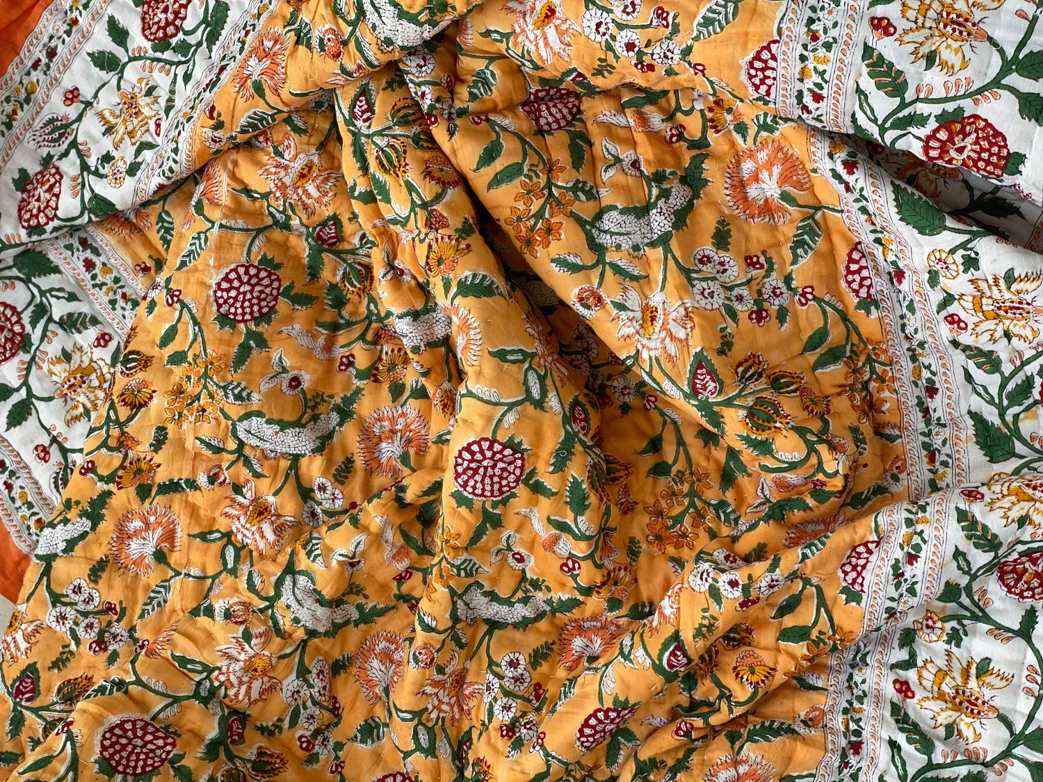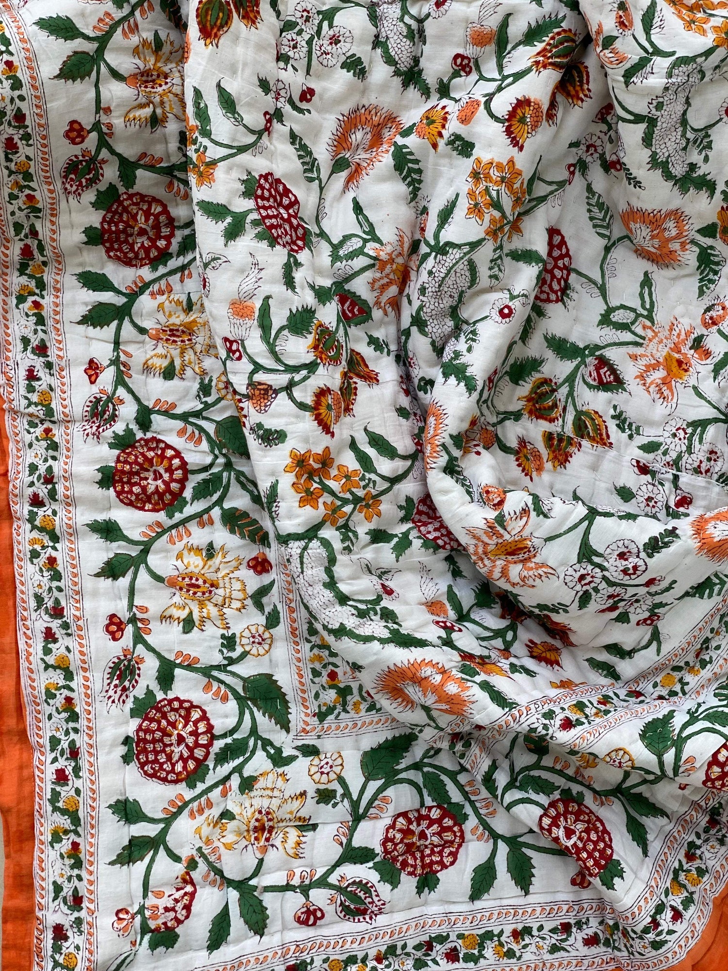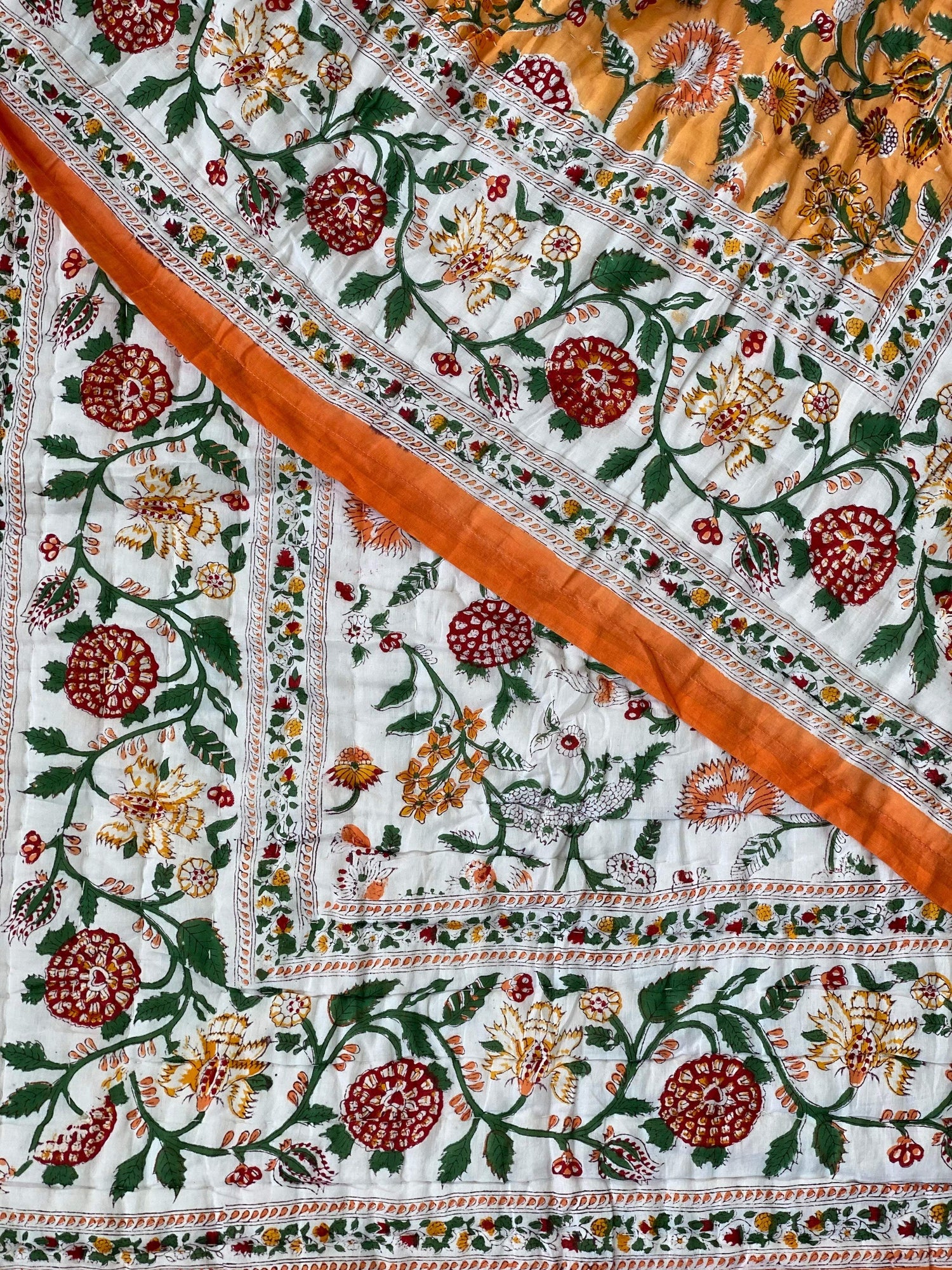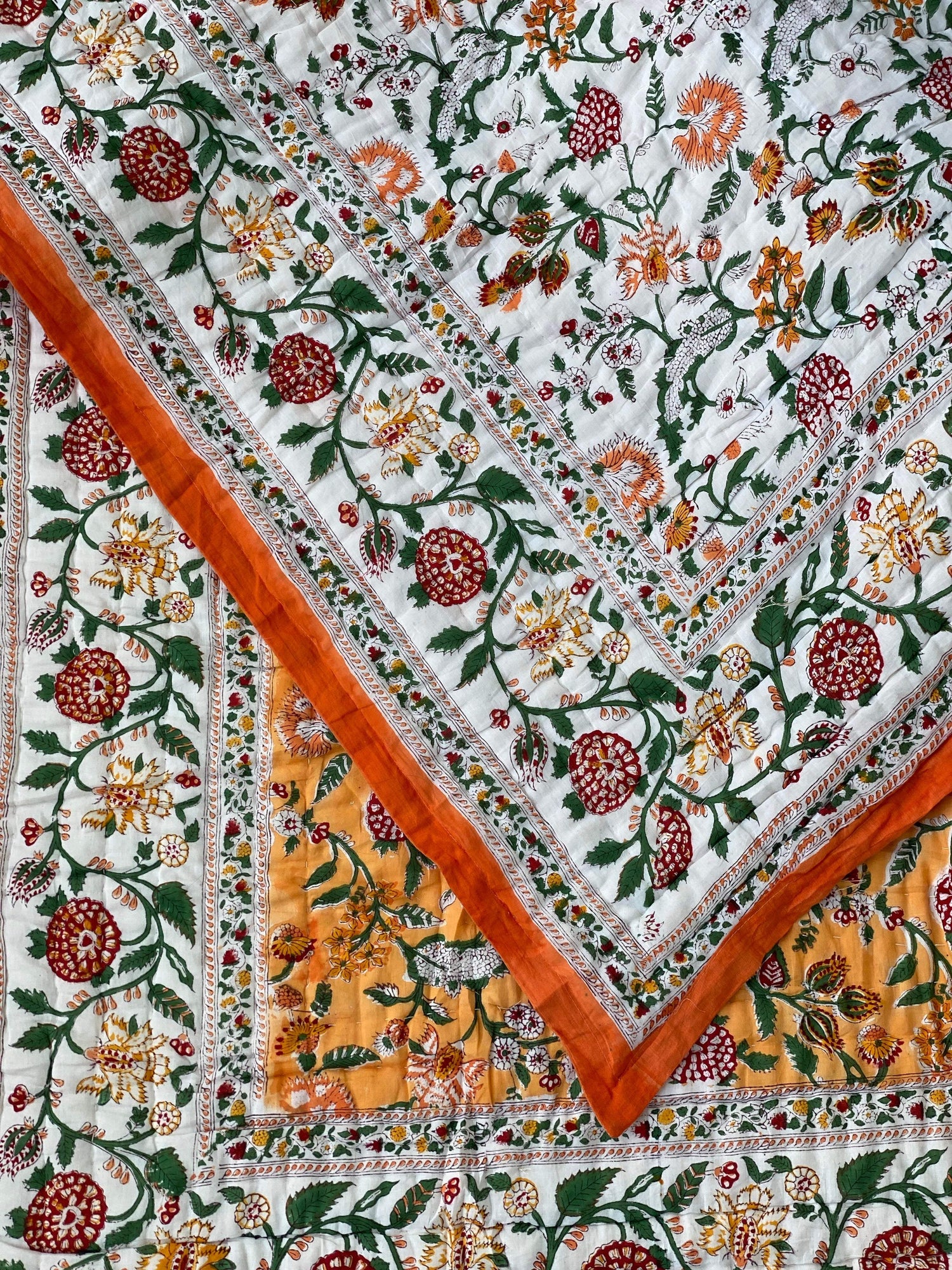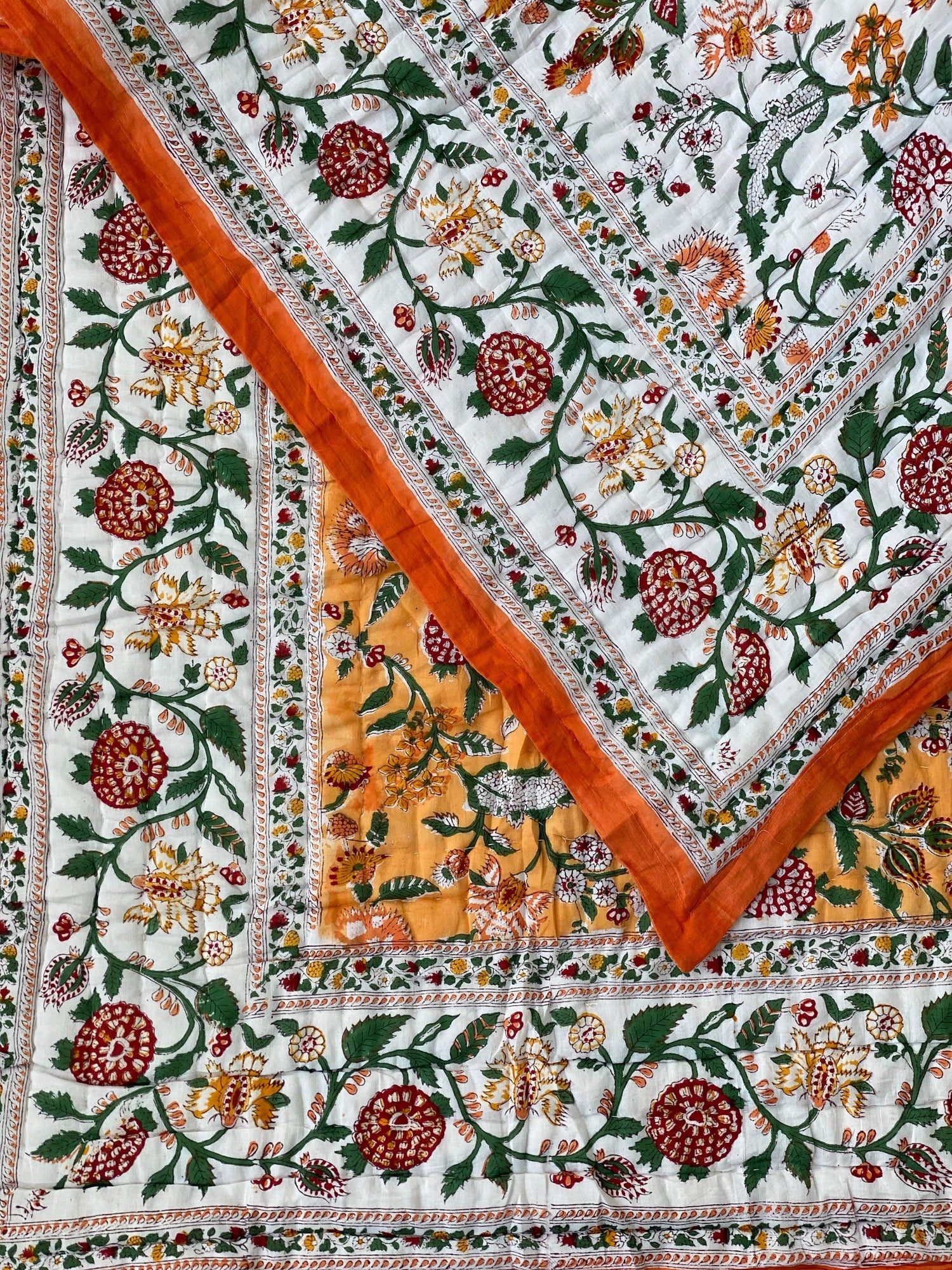 Sanganeri Hand Block Printed Cotton Reversible quilt/comforter. The quilt is made by the artisans of Rajasthan using azo-free dyes.
