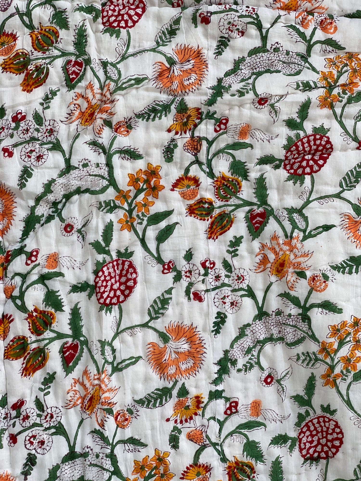 - Occasional smudges, spots, or irregularities in the print, adding to the handmade character of the bedcover.