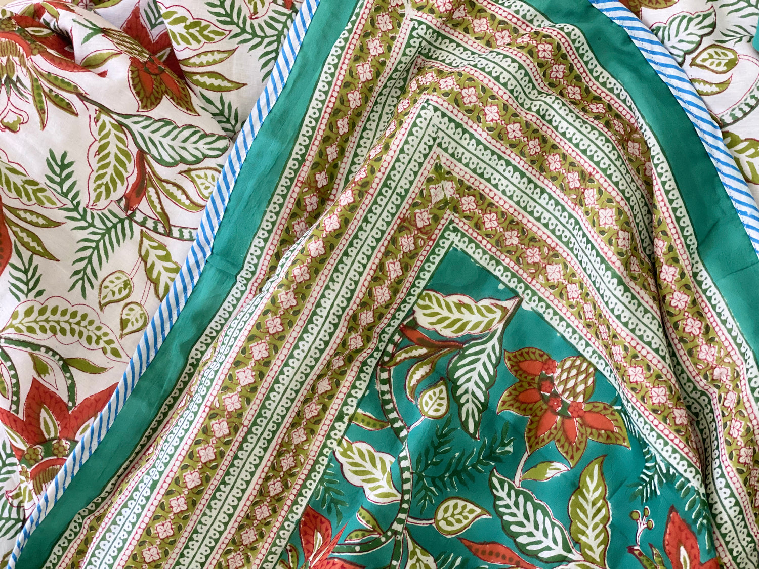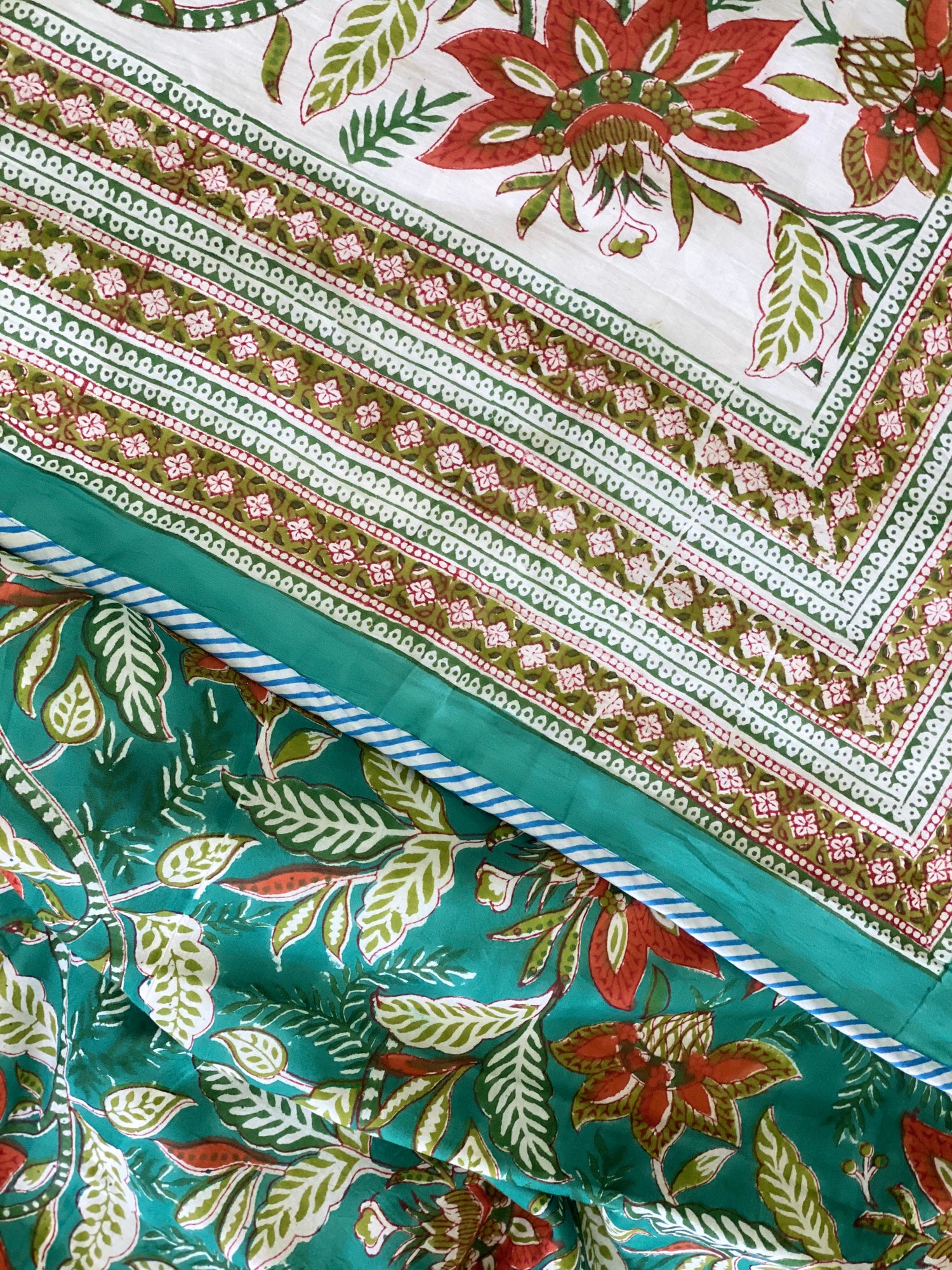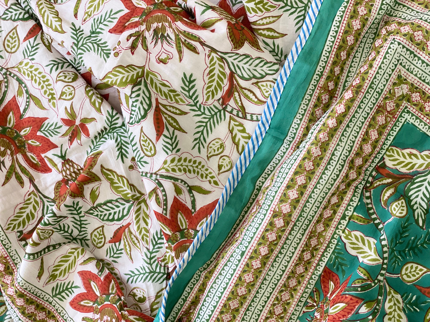 Reversible Hand Block Printed Soft Cotton Dohar layered with a warm layer of flannel. Crafted by the artisans of Rajasthan using azo-free dye.