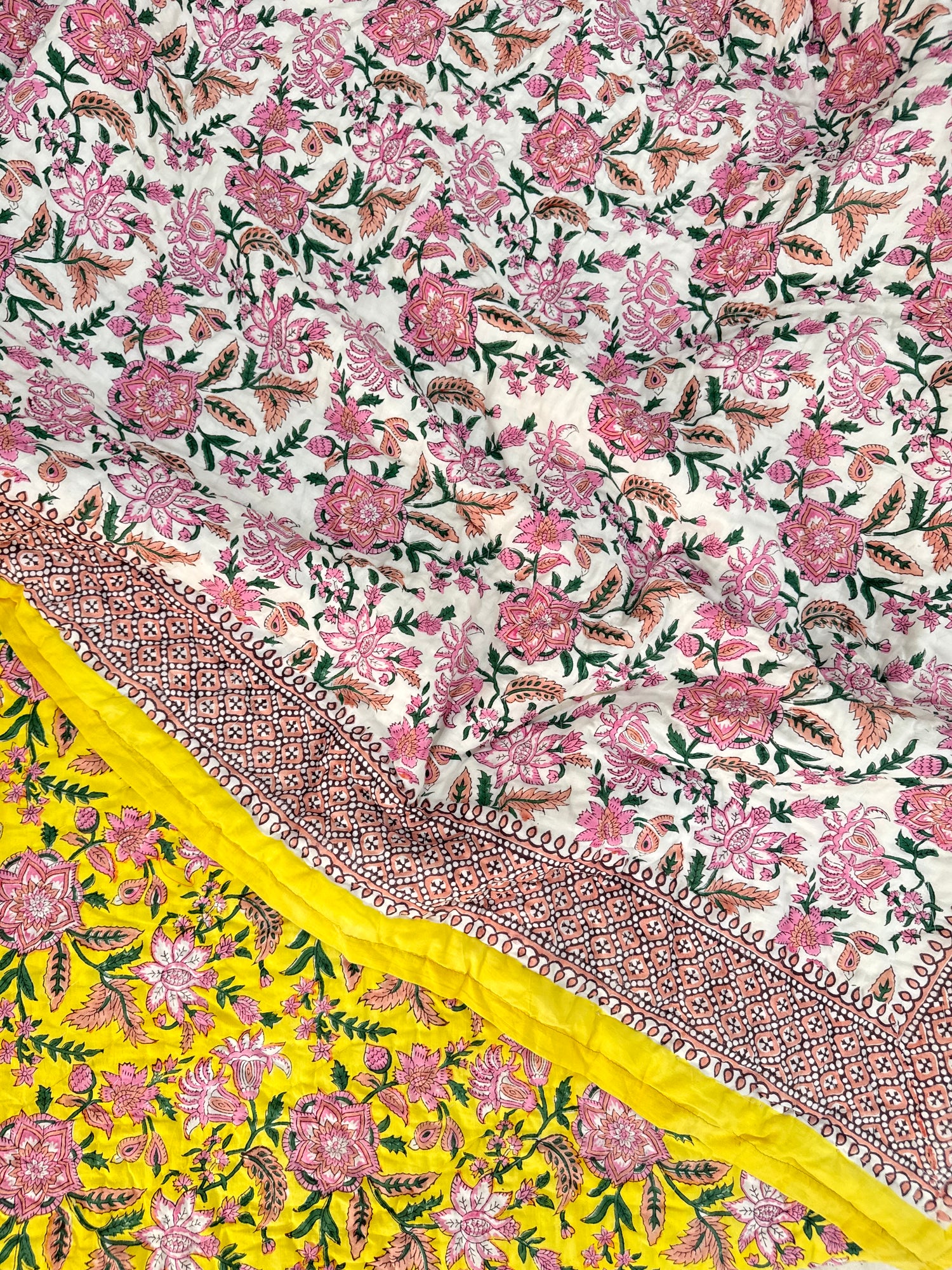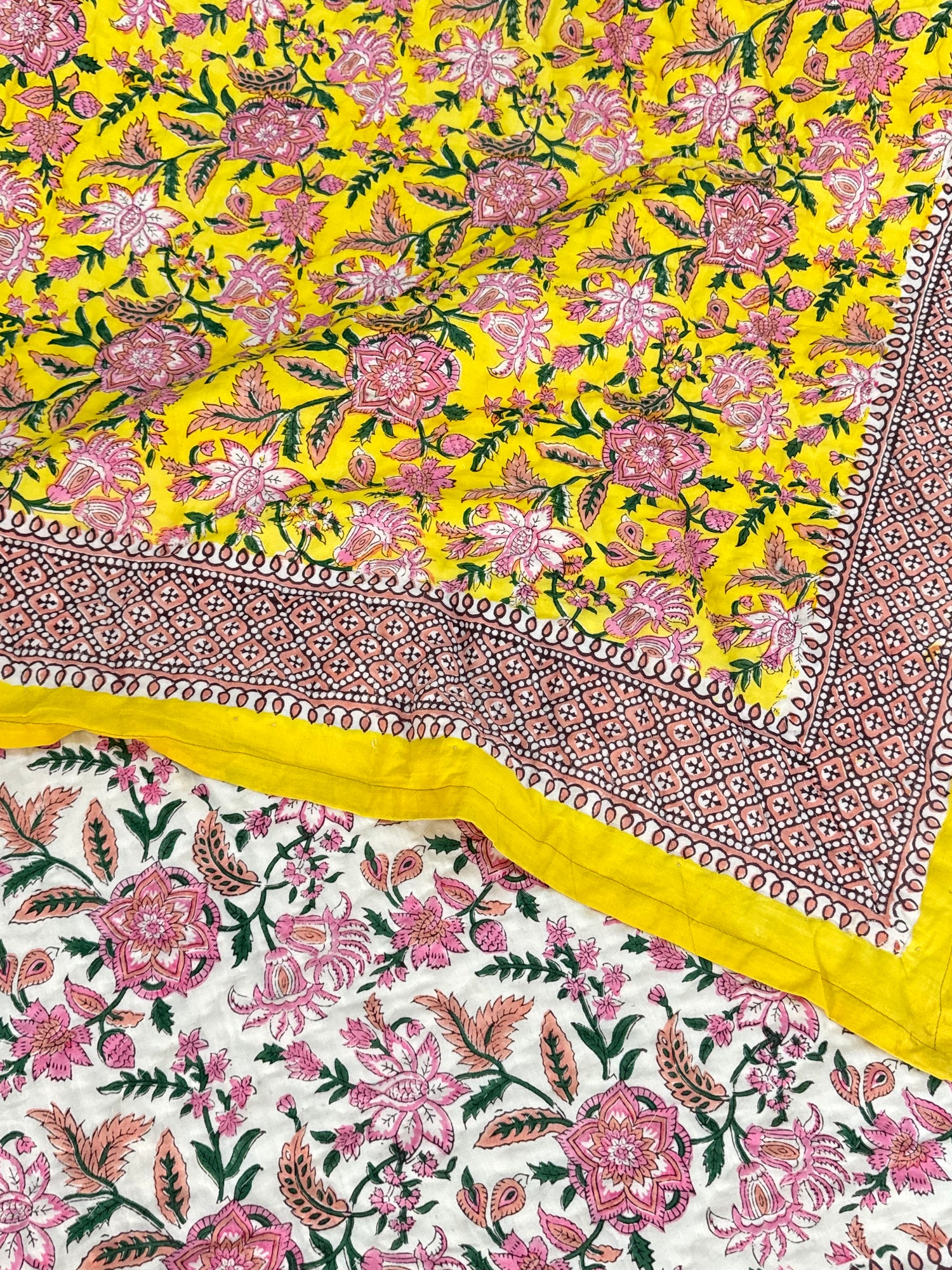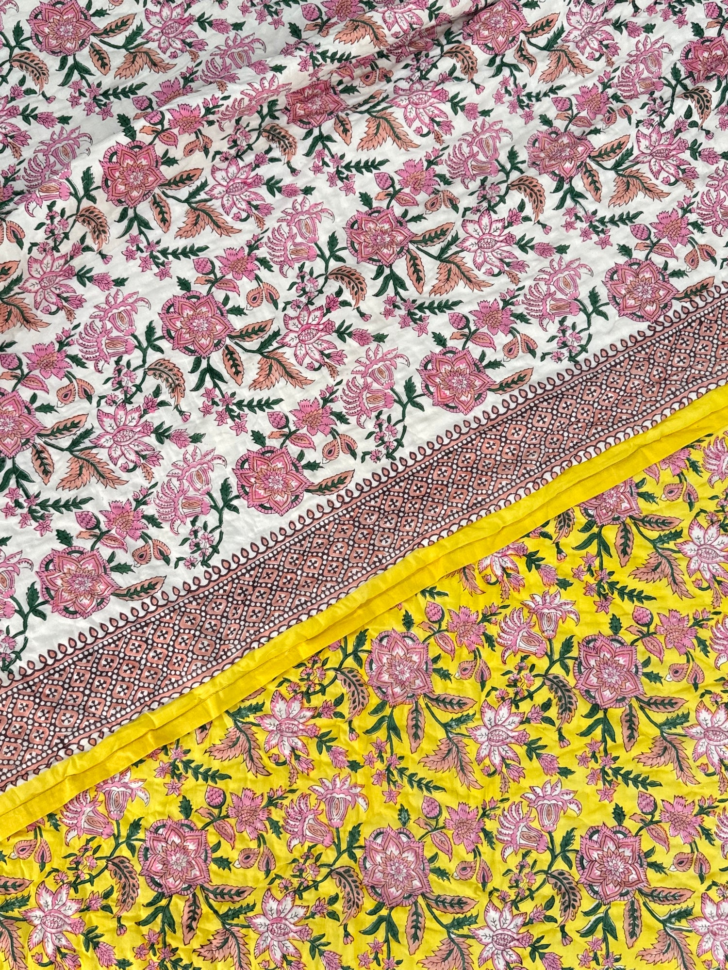 Hand Block Printed Cotton Reversible quilt/comforter. The quilt is made by the artisans of Rajasthan using azo-free dyes.