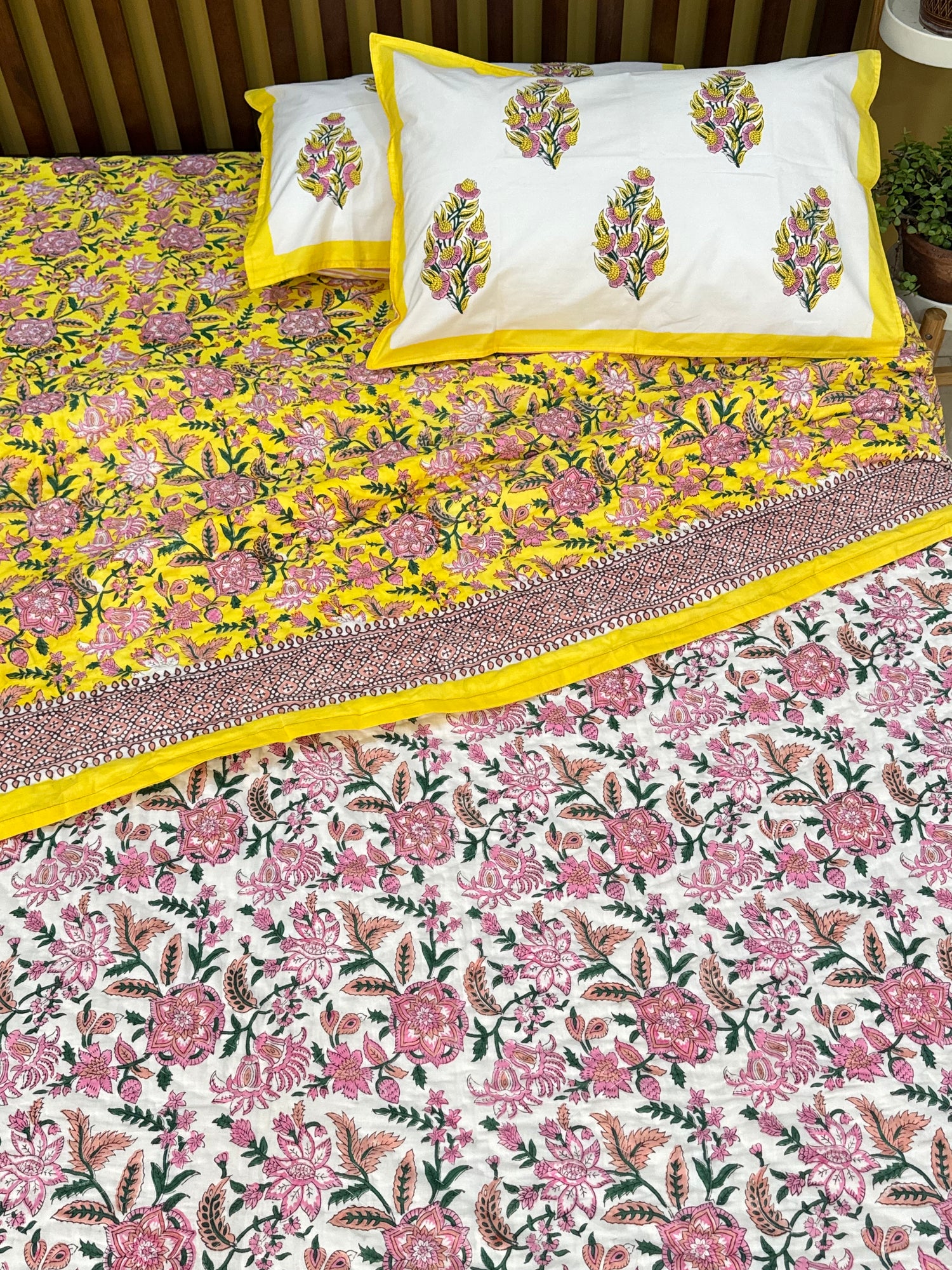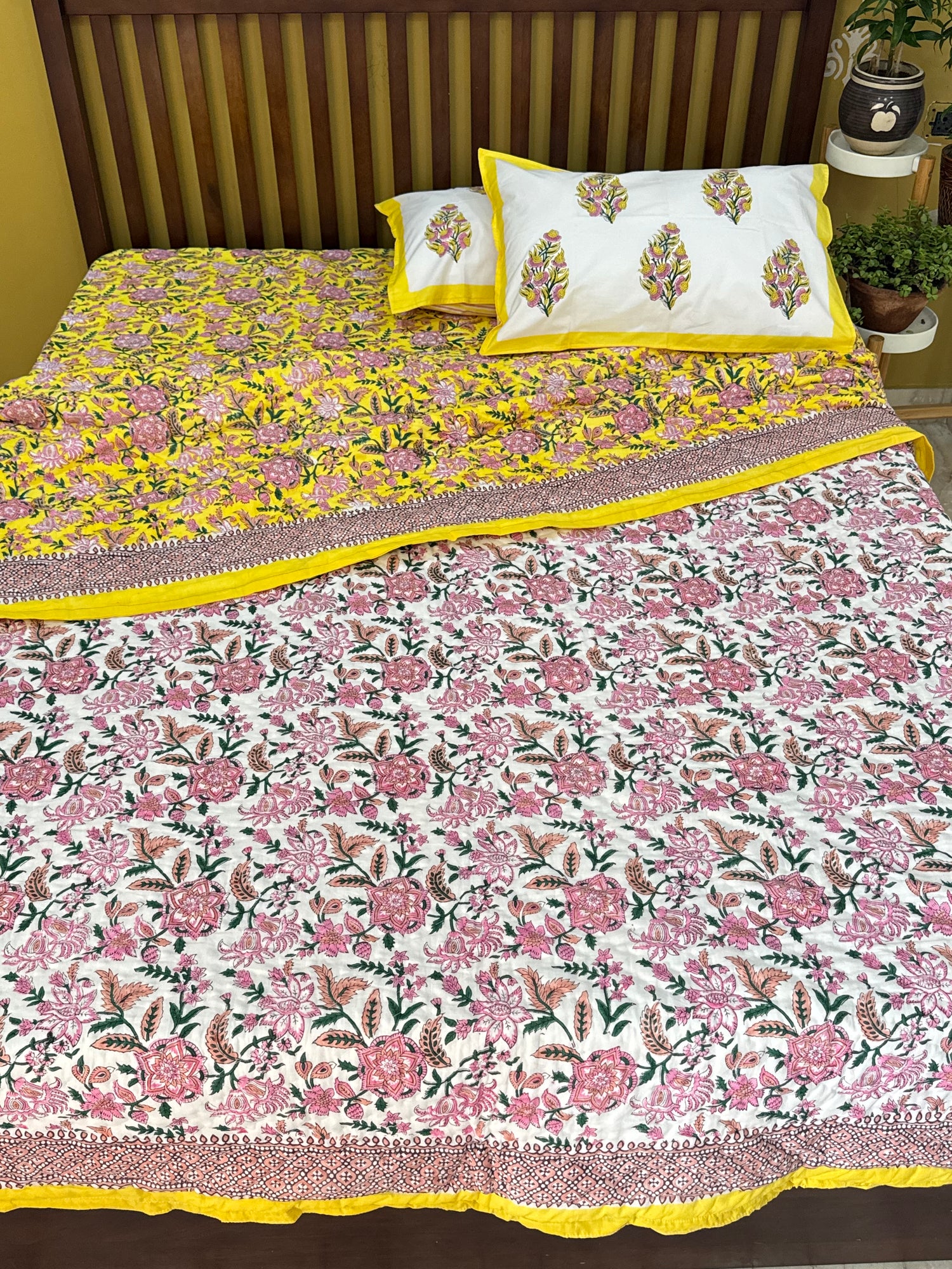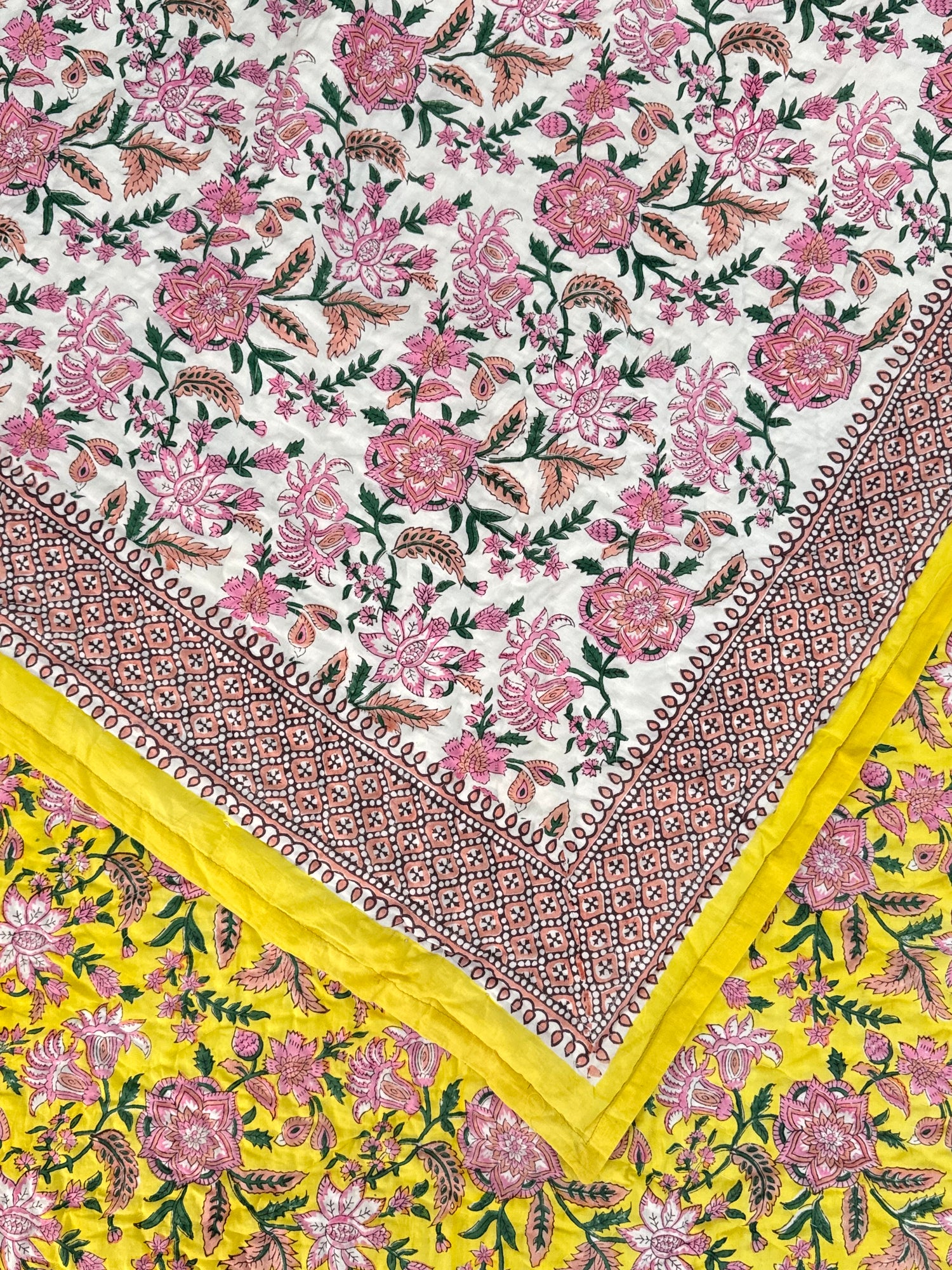 Hand Block Printed Cotton Reversible quilt/comforter. The quilt is made by the artisans of Rajasthan using azo-free dyes.