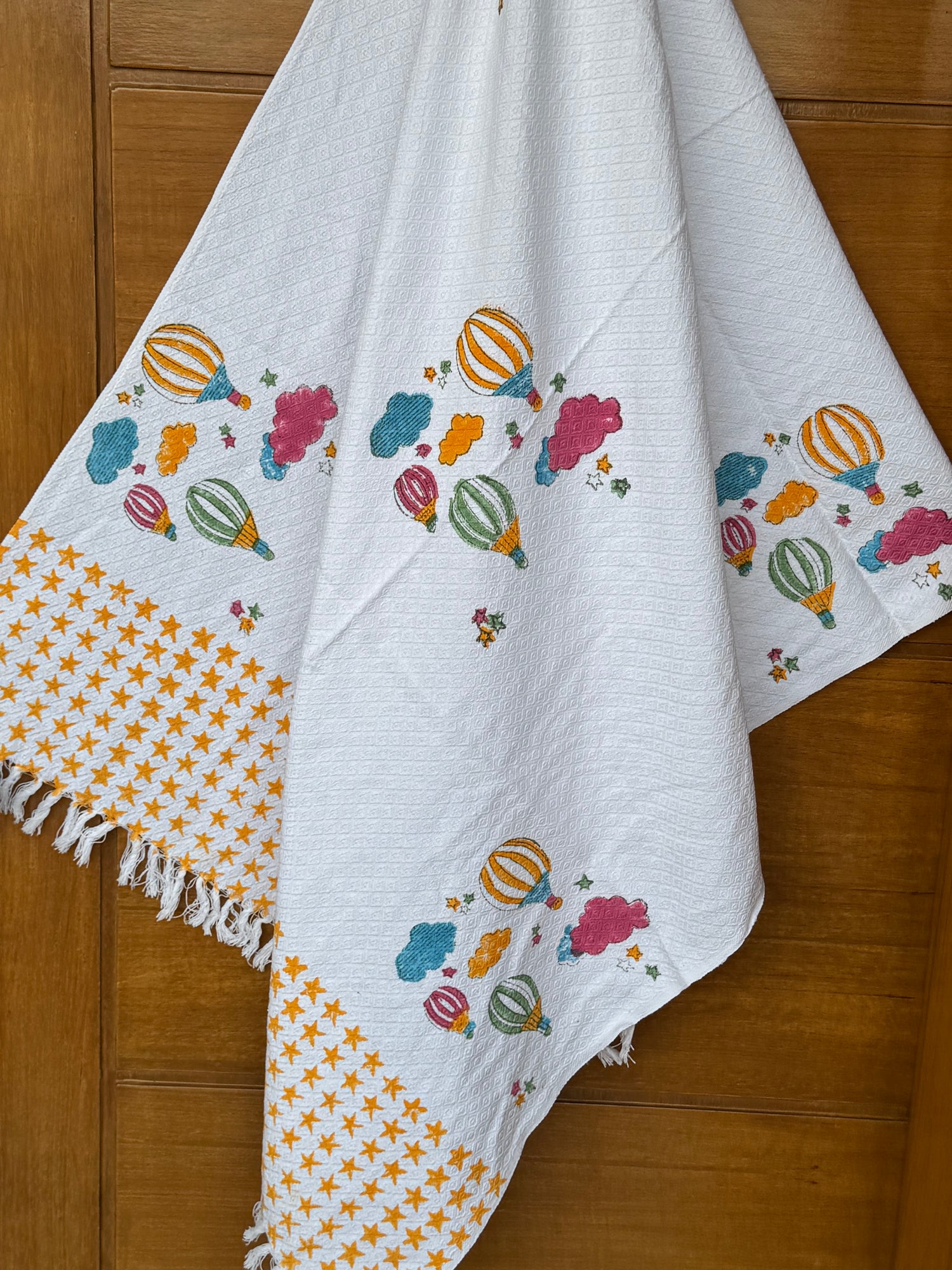 Hot Air Balloon Blockprint Kids Towel – Cotton Jacquard Weave