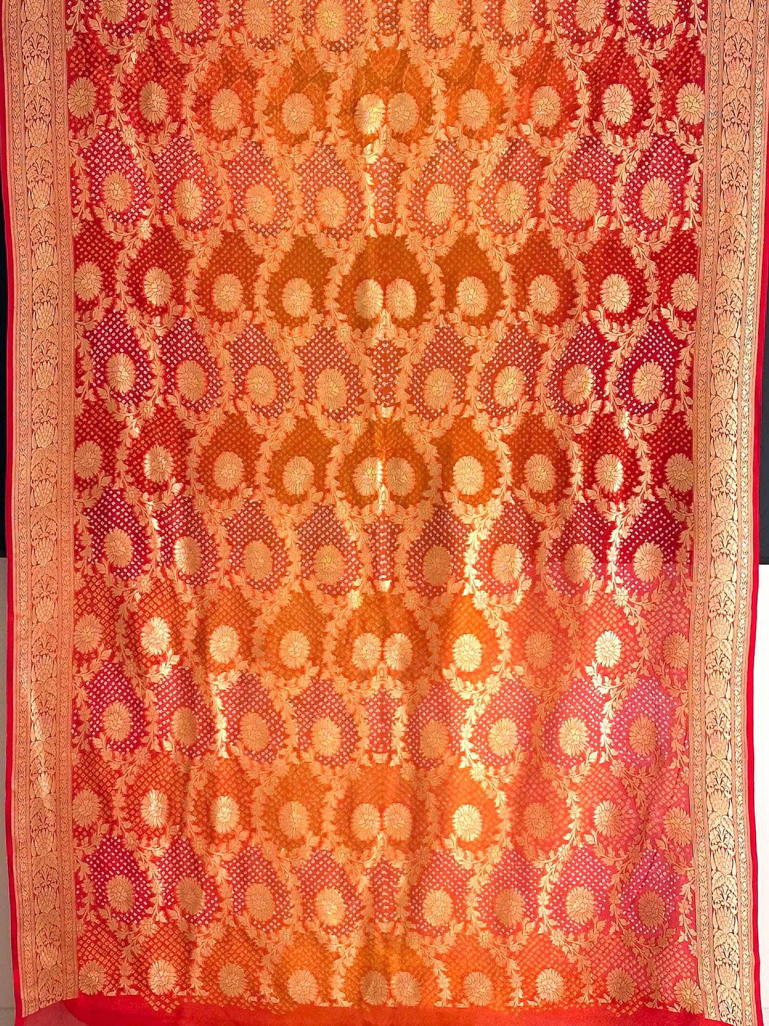 Imperial Radiance Handloom Pure Banarasi Georgette Bandhani Saree