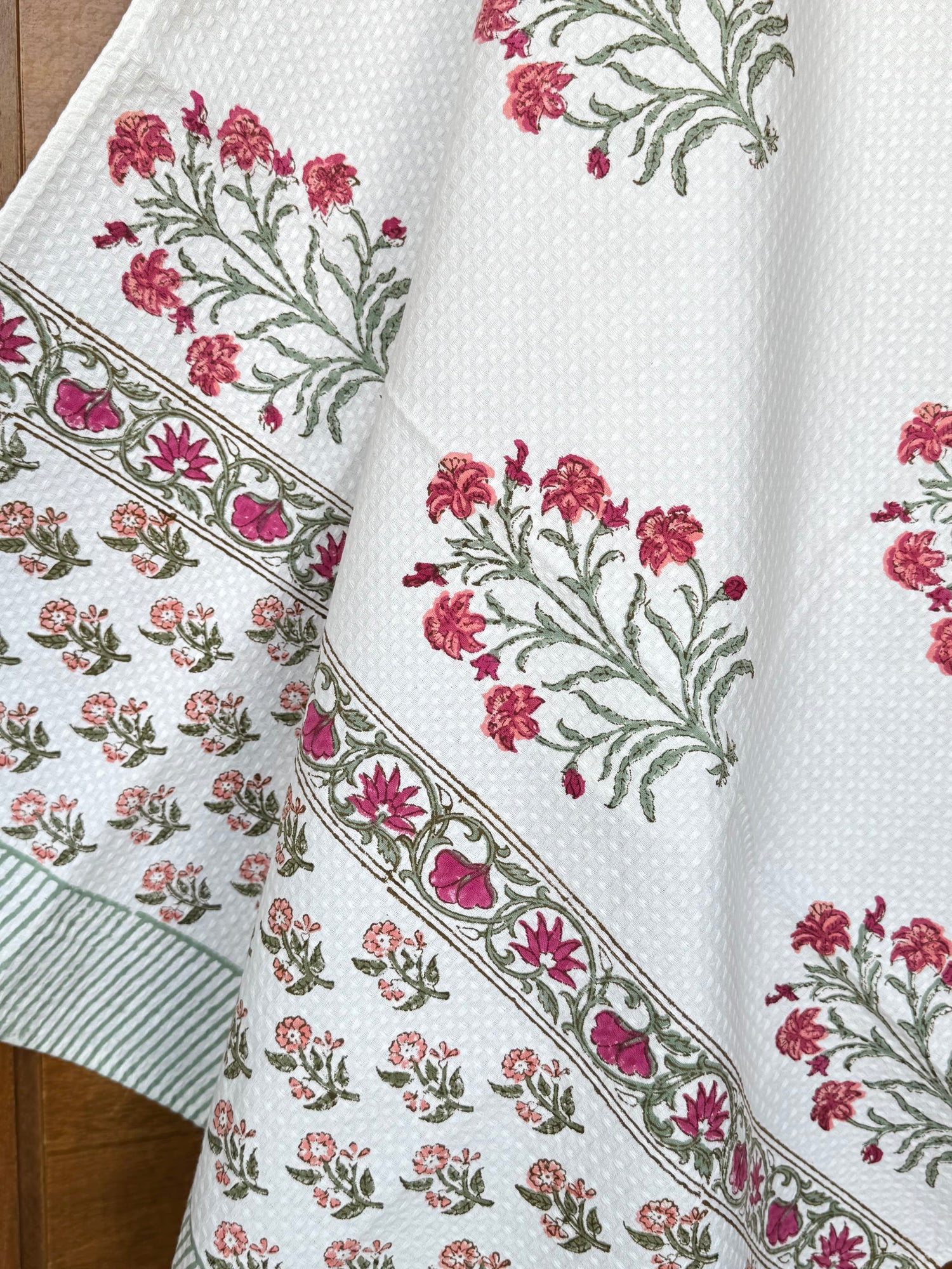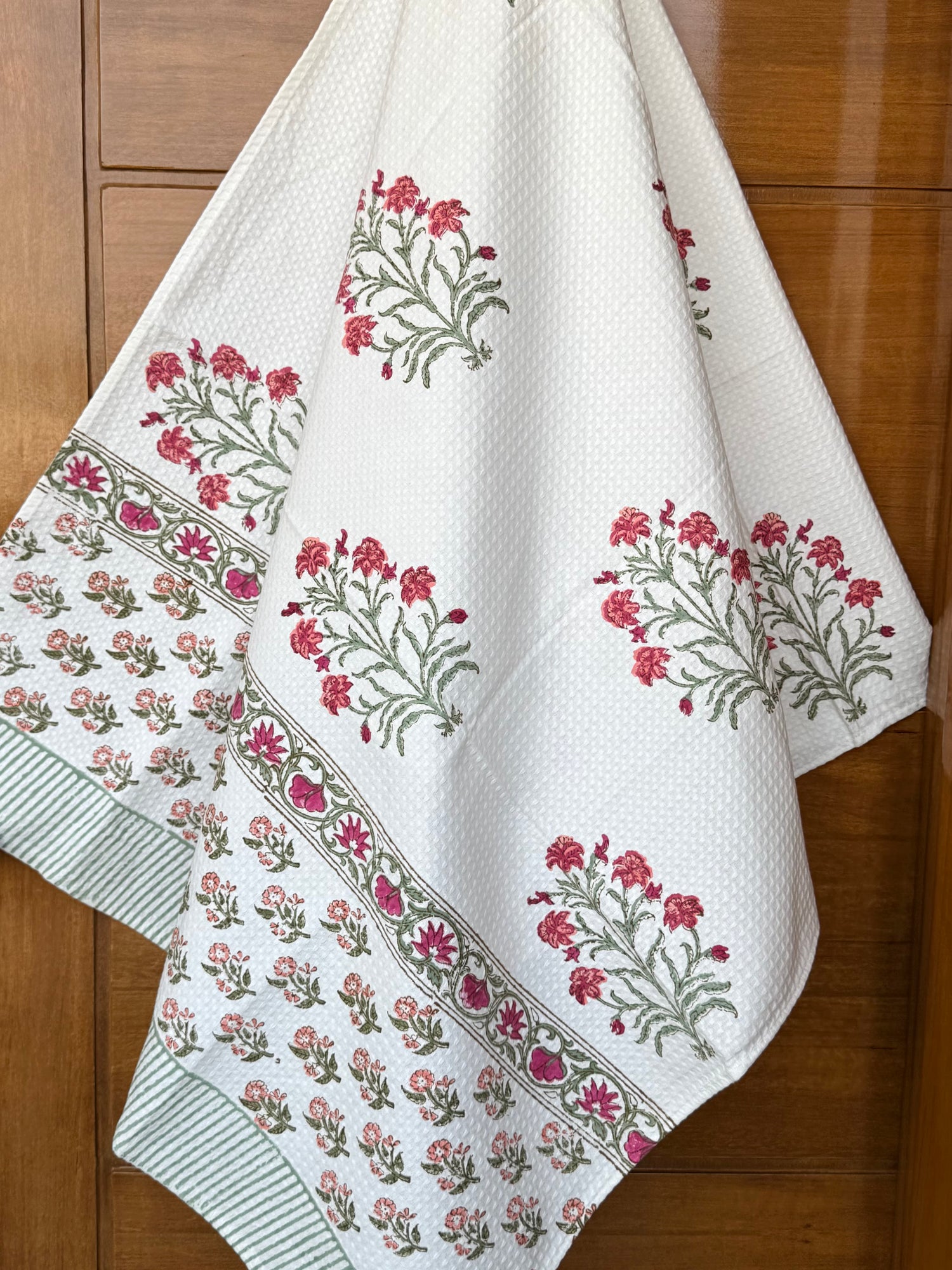 Jaipuri Floral Blockprint Cotton Towel- Waffle Weave