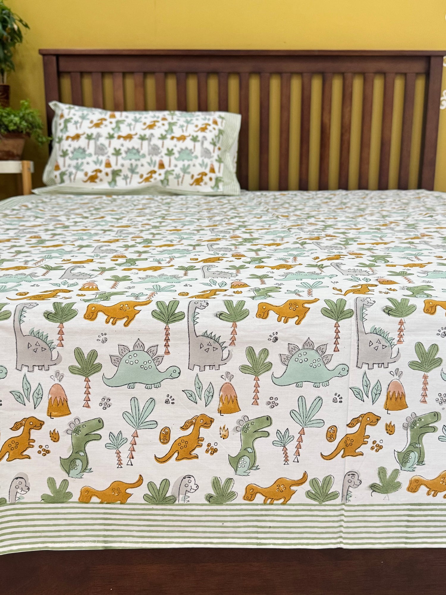 Jungle Animals Handblock Printed Kids Cotton Bedsheet