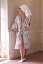 Elevate your everyday rituals with the Lavender Mist Waffle Cotton Robe, featuring delicate dragonfly-inspired prints in soft pink and violet on a cool grey base. Made from breathable waffle-textured cotton, it offers relaxed comfort with a flattering silhouette, elegant printed borders, and practical pockets. Ideal for self-care moments, morning routines, or quiet evenings, this robe blends subtle whimsy with timeless ease.