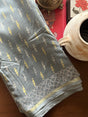 Light Grey Handblock Print Chanderi Cotton Silk Saree