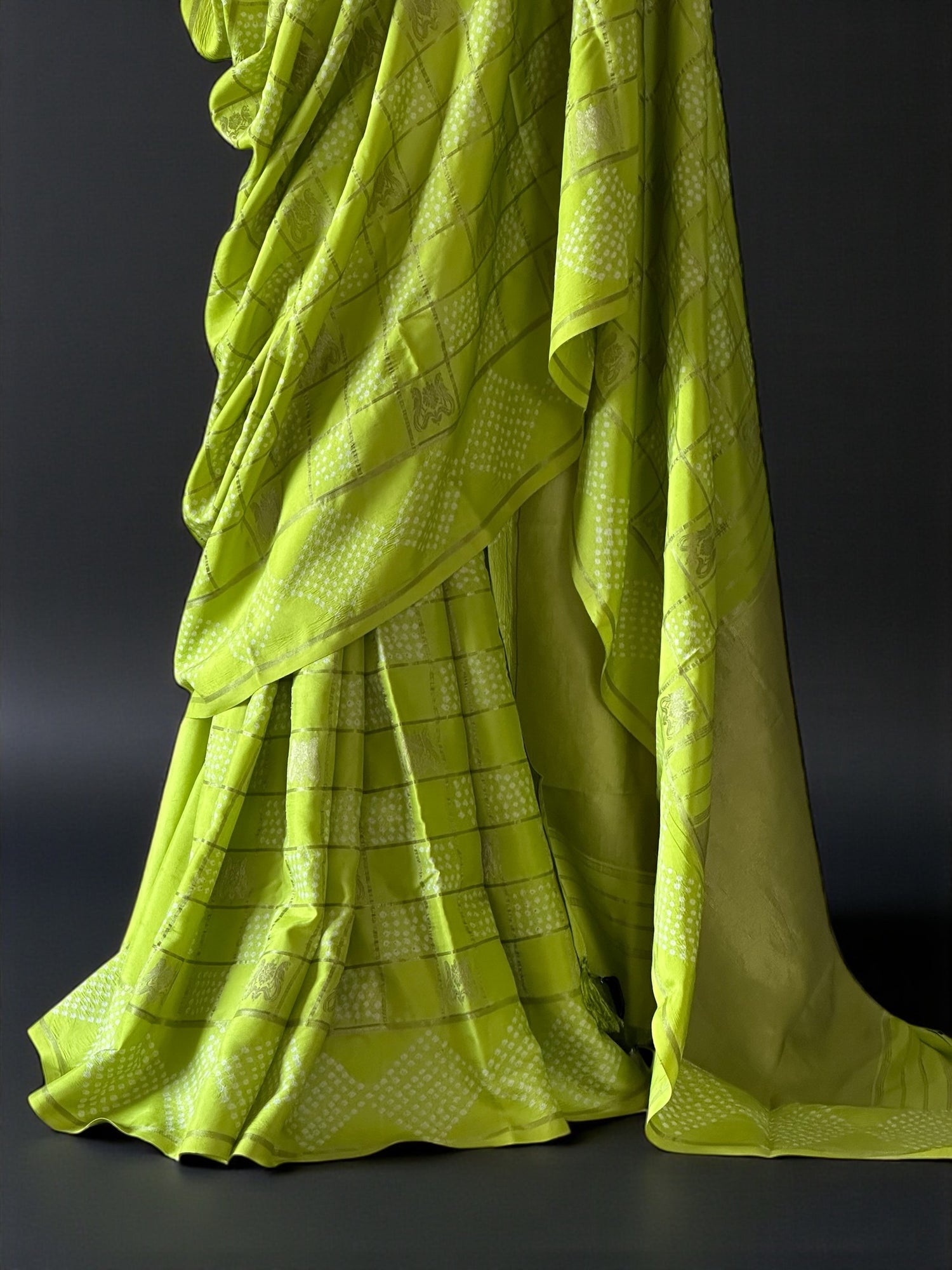 Lime Aura Bandhani Kanjivaram Silk Saree