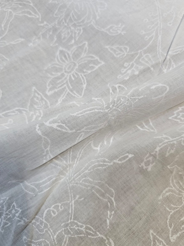 Lovely White on White Handblock Printed Cotton Fabric (2.5 meters)