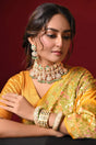 The necklace and earrings embody a regal and festive aesthetic, commonly worn in traditional settings like weddings or celebrations, especially when paired with rich, colorful attire.