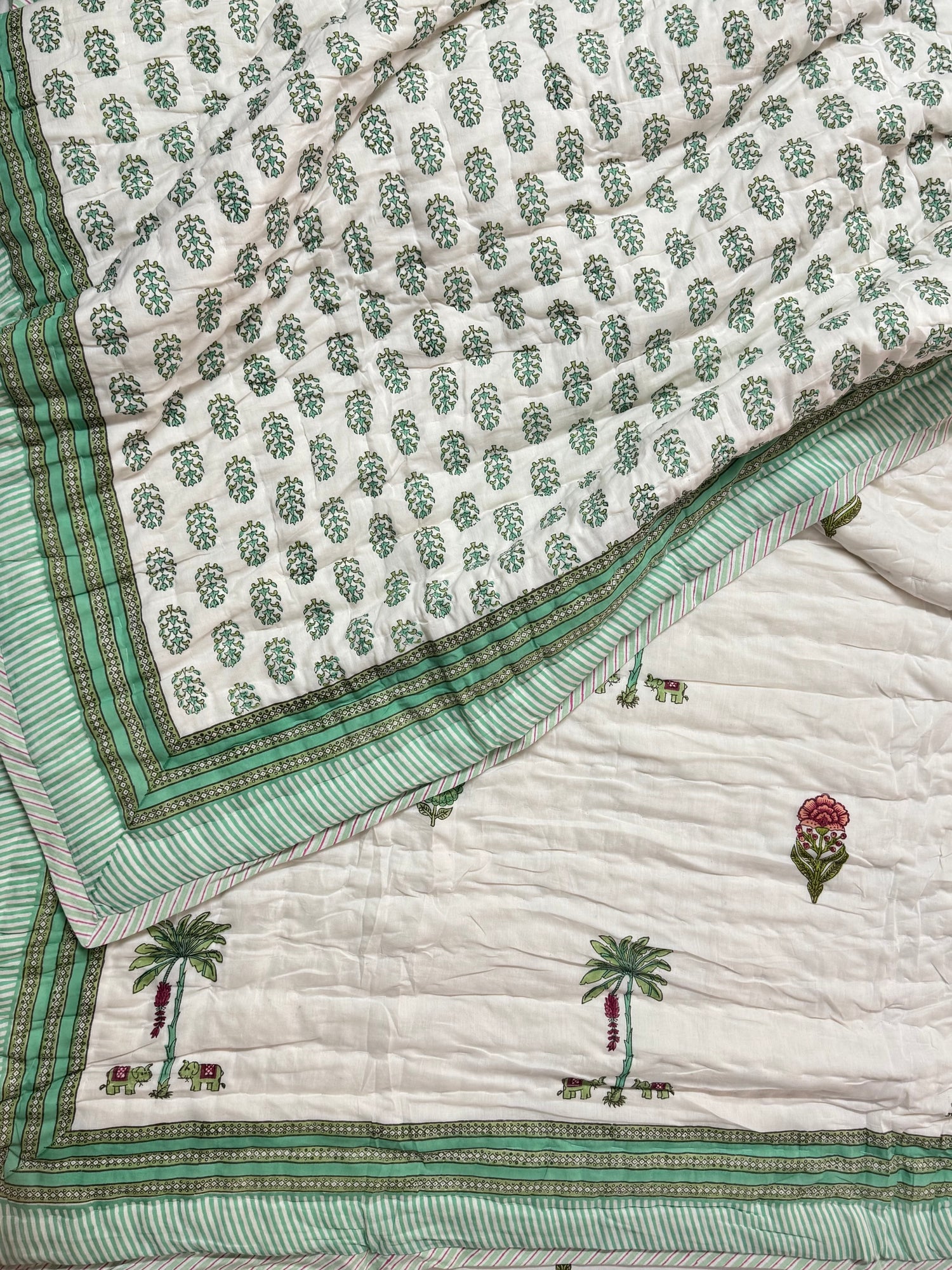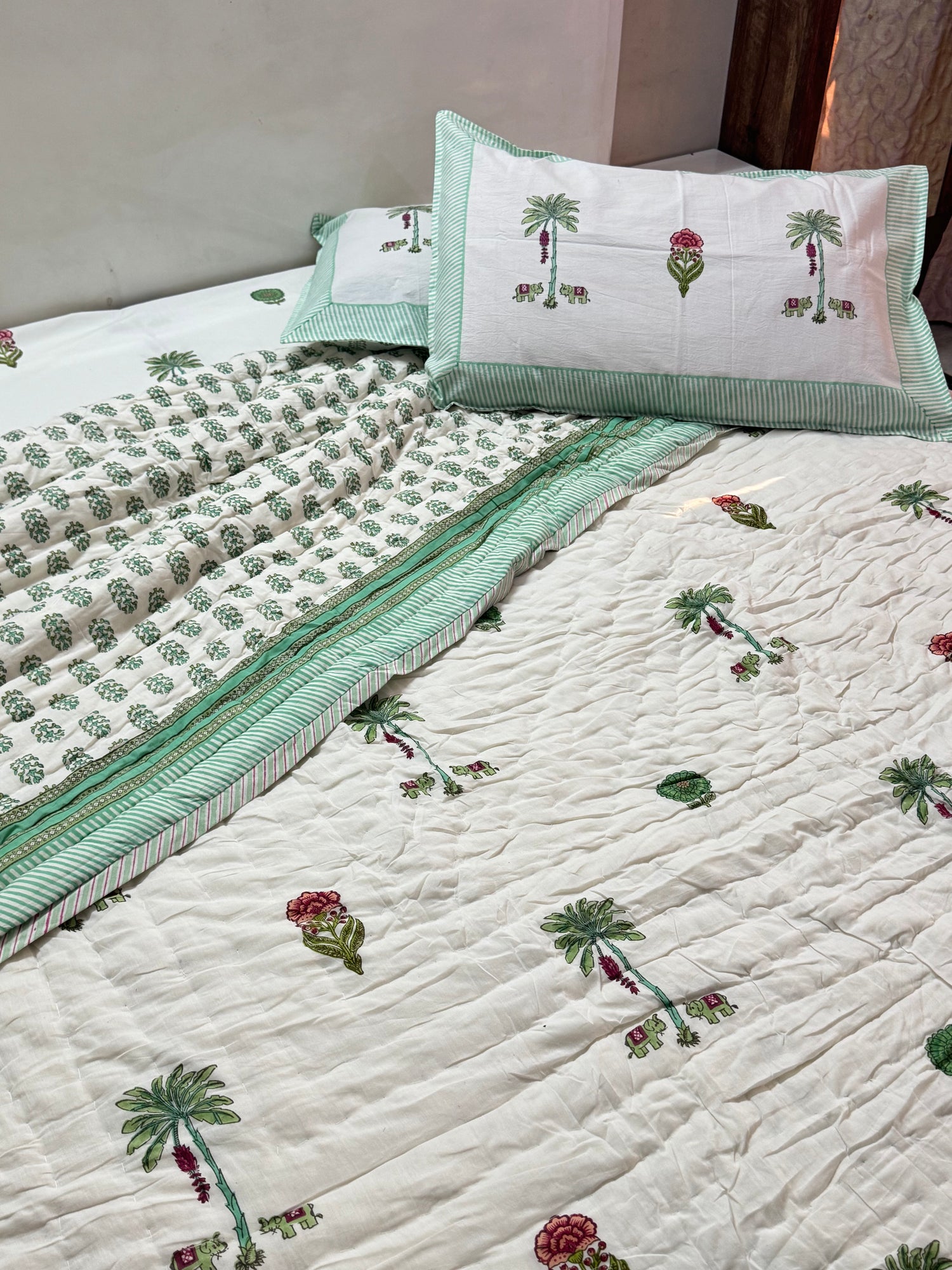 Majestic Heritage Reversible Mulmul Quilt & Cotton Bedsheet Set