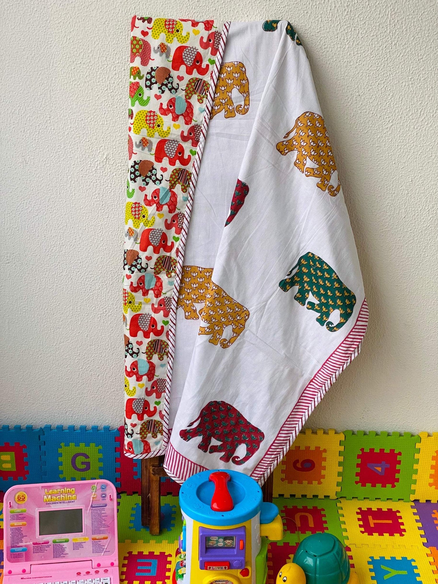 Earthy Elephant Parade – Handblock Printed Kids Dohar | Soft, Skin-Friendly & Summer-Perfect