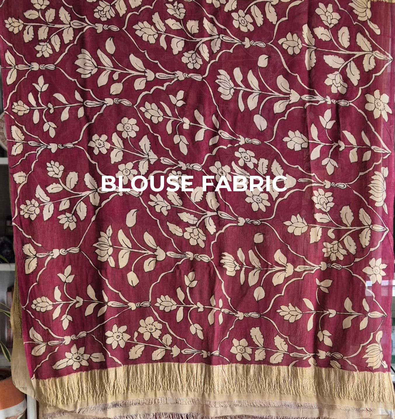 Pure Banarsee georgette pen kalamkari saree. The kalamkari done on the saree is hand drawn and handpainted. Saree comes with its own unstitched blouse.