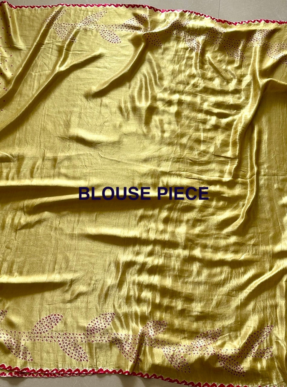 Mehendi Taar Pure Gajji Silk Bandhani Saree