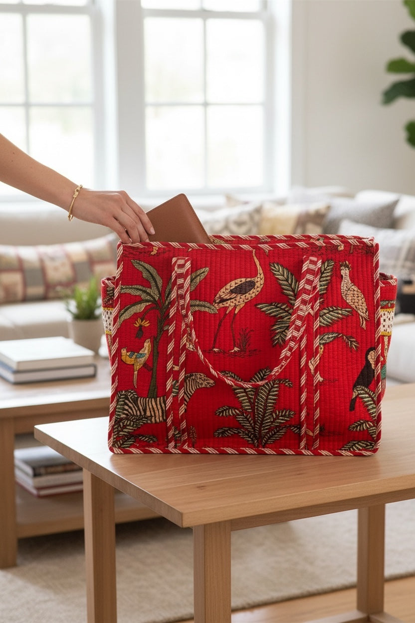 This large tote bag is designed for everyday use where comfort, durability, and ease matter. Made from 100 percent pure cotton with soft cotton quilting, it feels supportive on the shoulder while remaining light to carry.