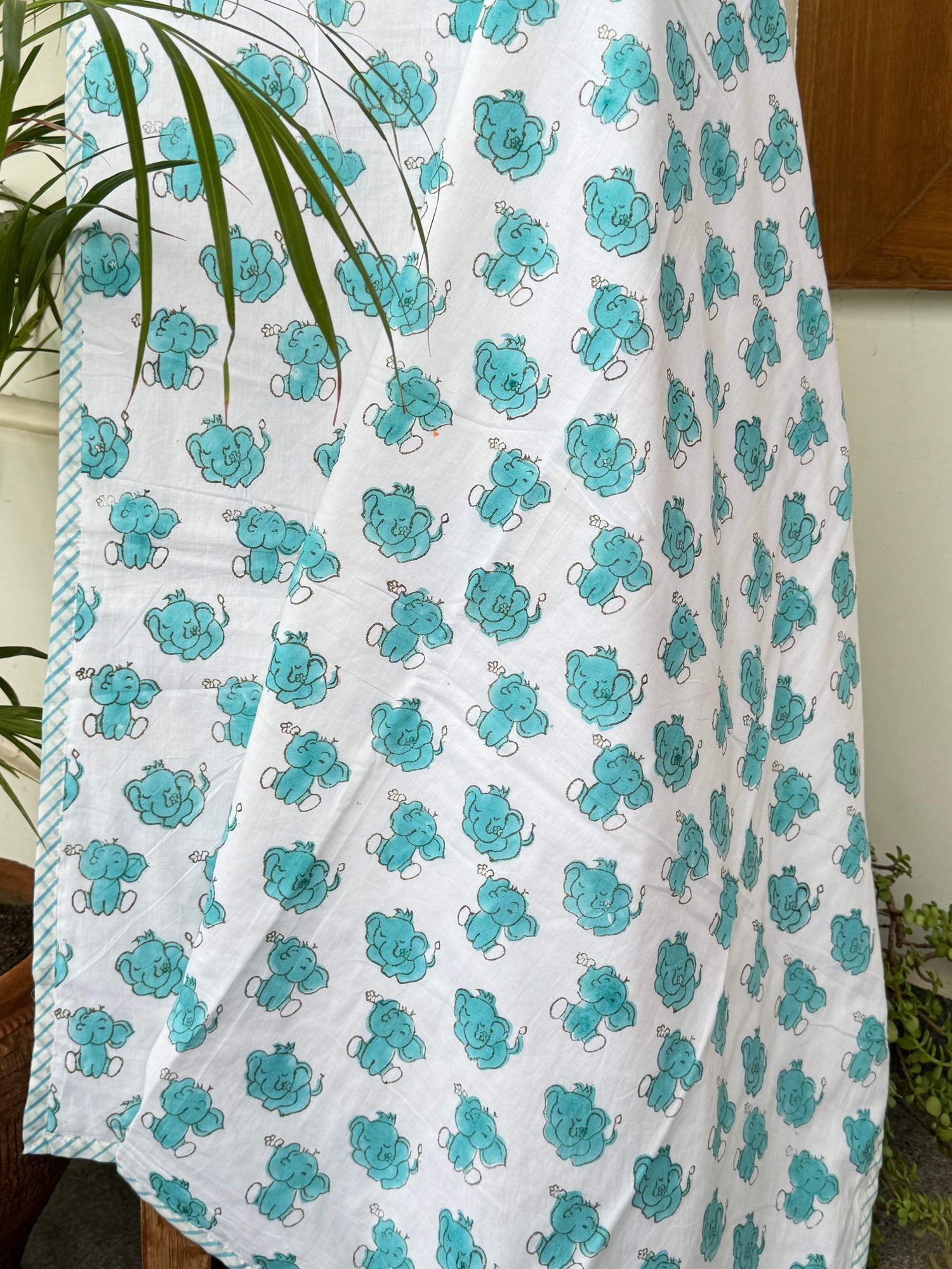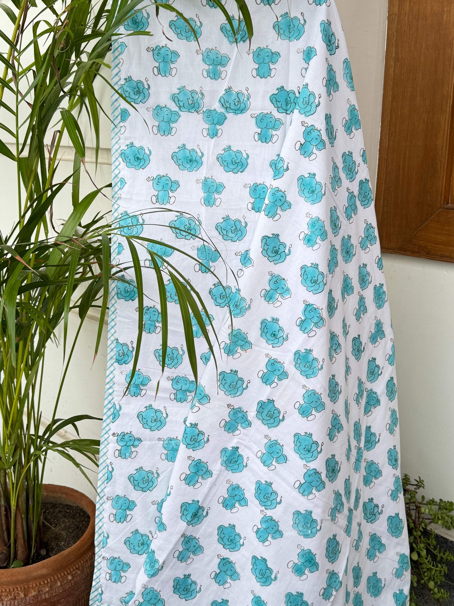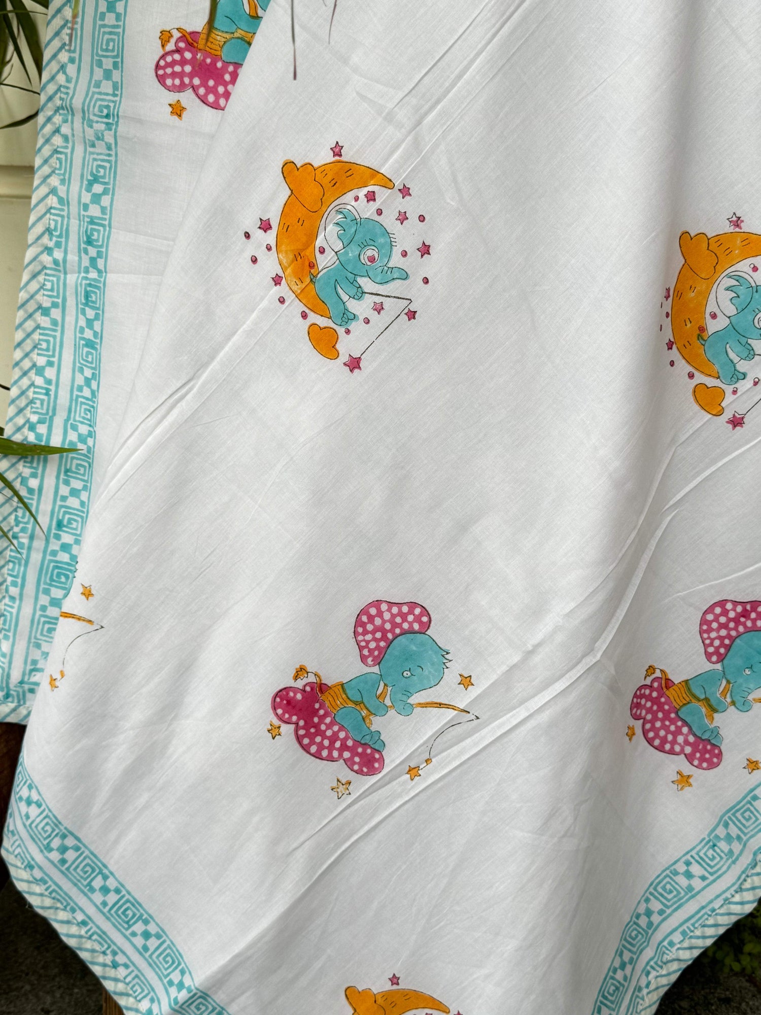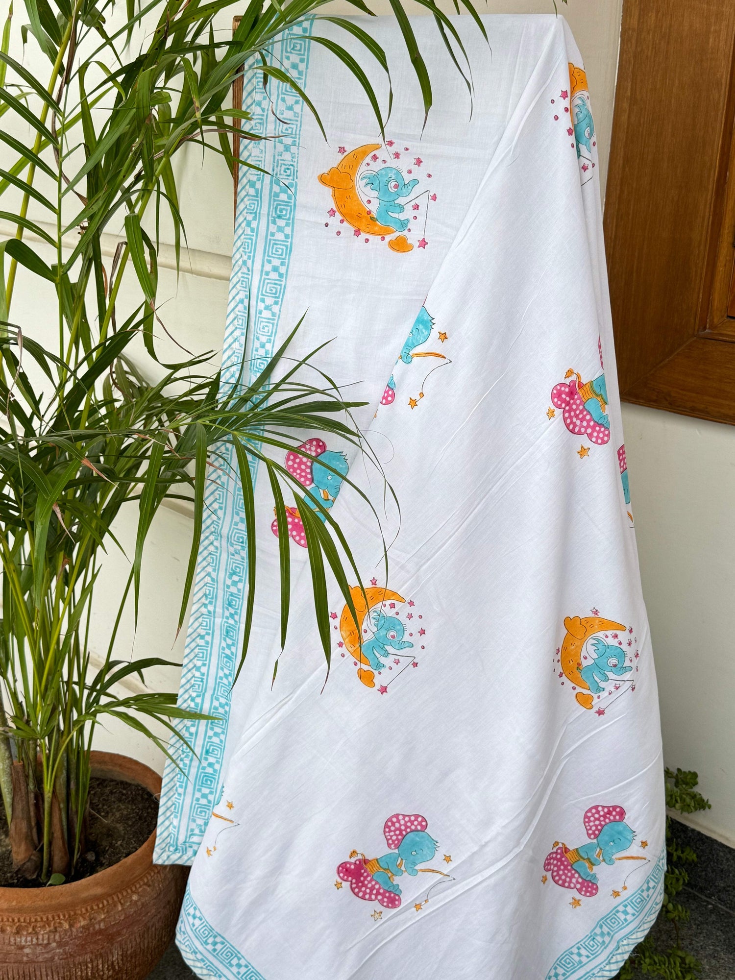 Moonlit Elephant Dreams – Handblock Printed Kids Dohar