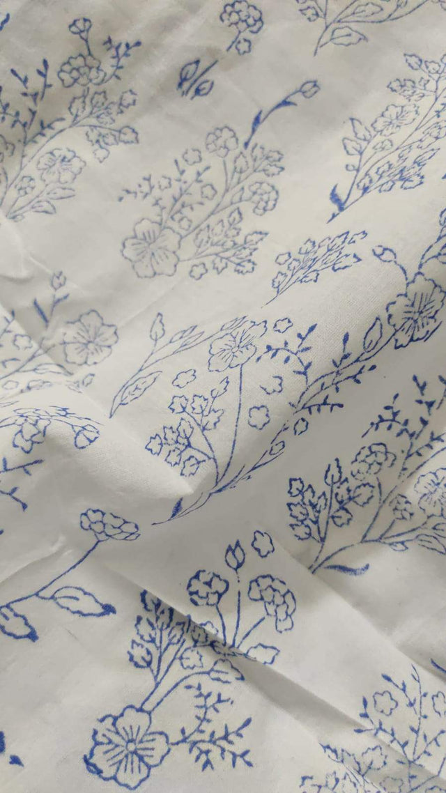 Mughal Inspired Indigo Handblock Printed Floral Cotton Fabric (2.5 meters)
