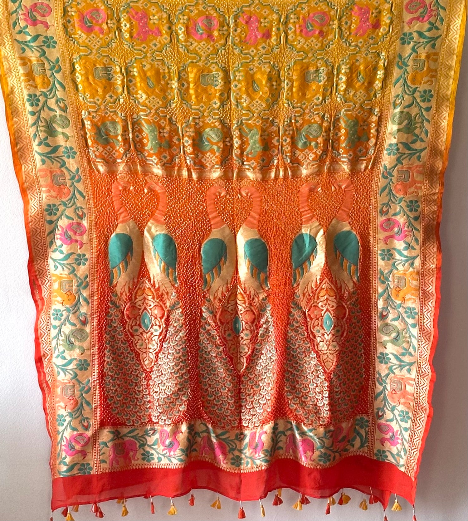 Opulent Texture Handloom Bandhani Chikankari Georgette Dupatta