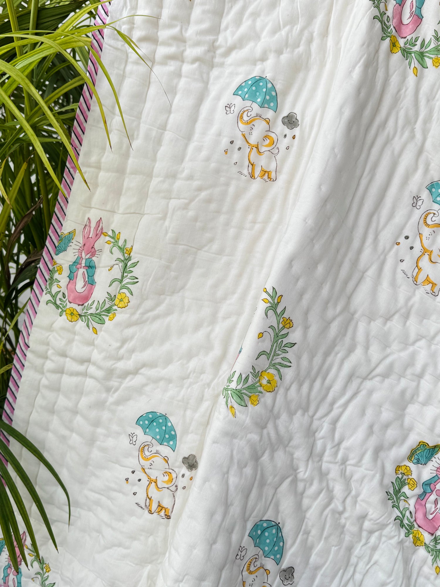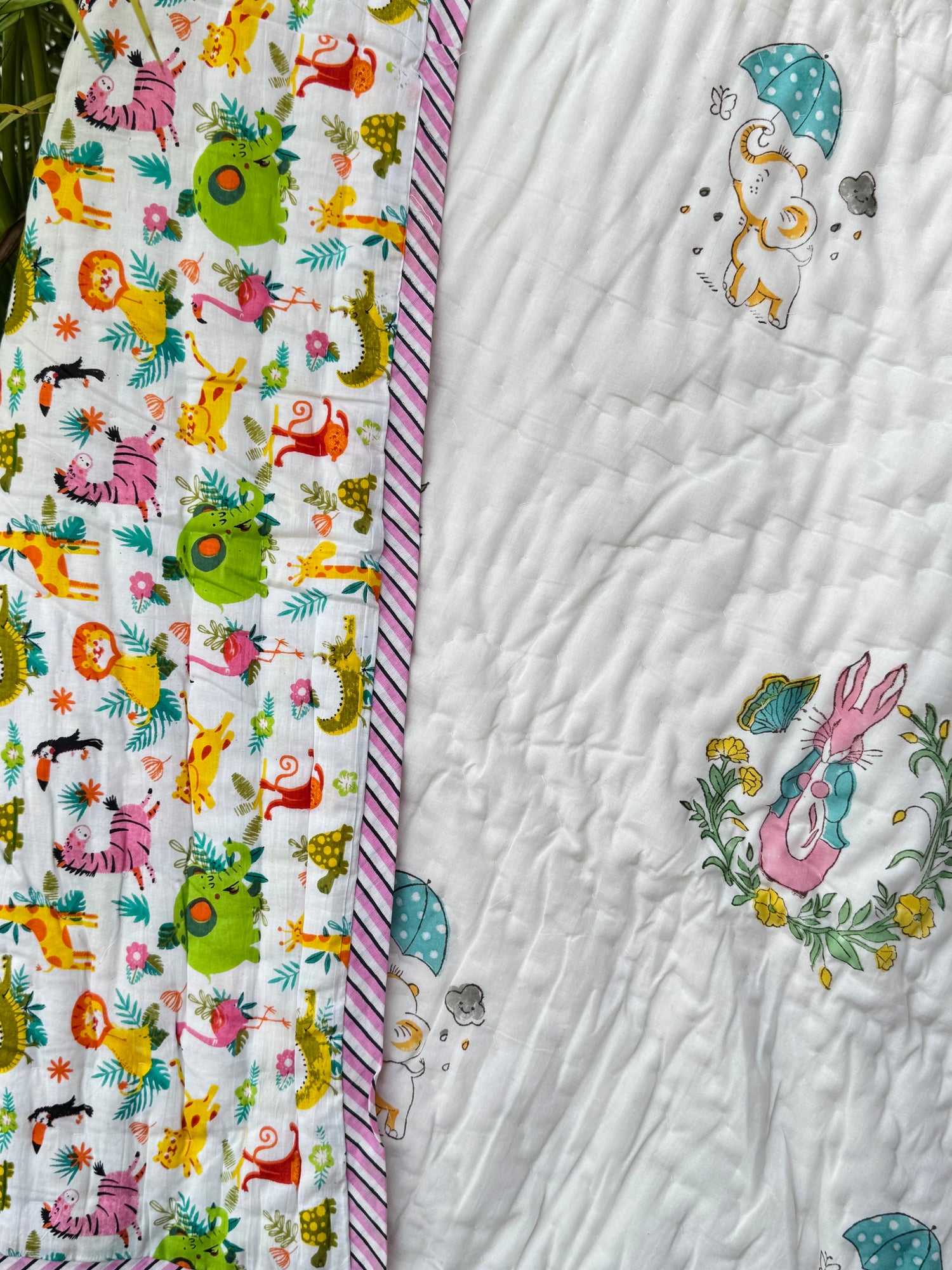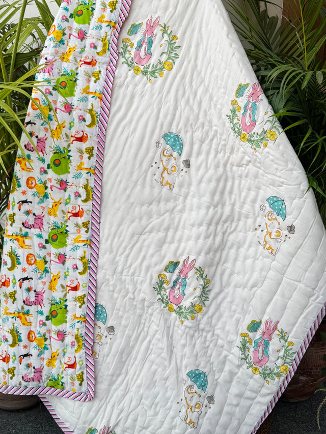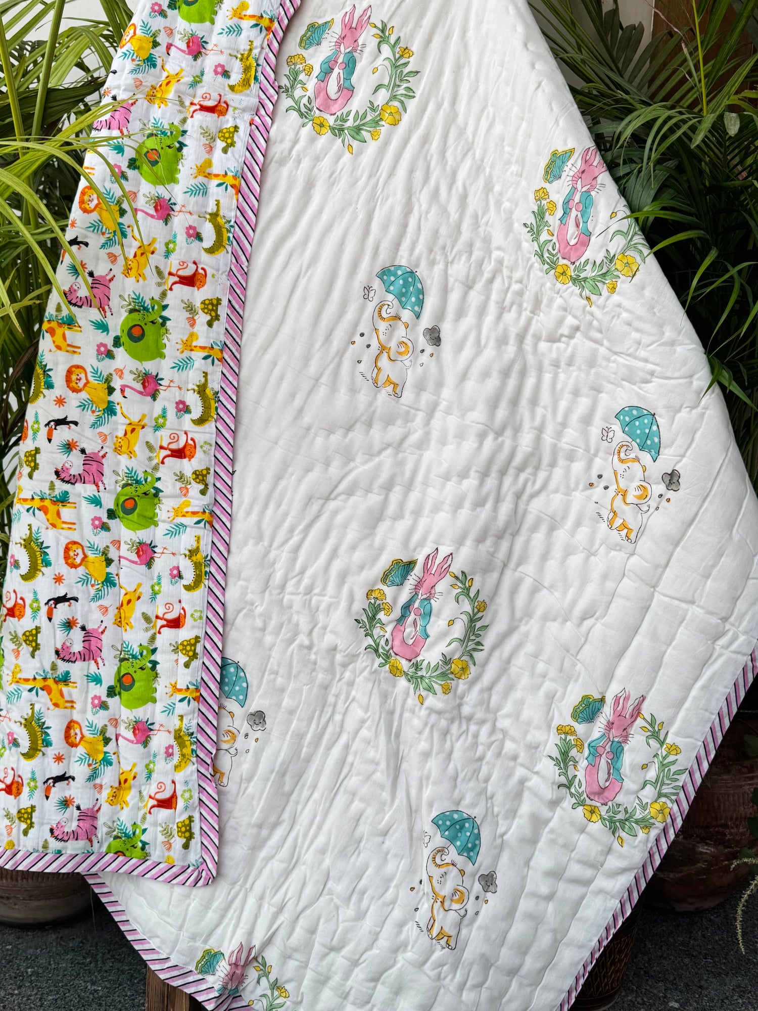 Peter Rabbit Jungle Kids Quilt Blockprint - Kids Size (60*40 inches) 0-6 yrs is backordered and will ship as soon as it is back in stock.