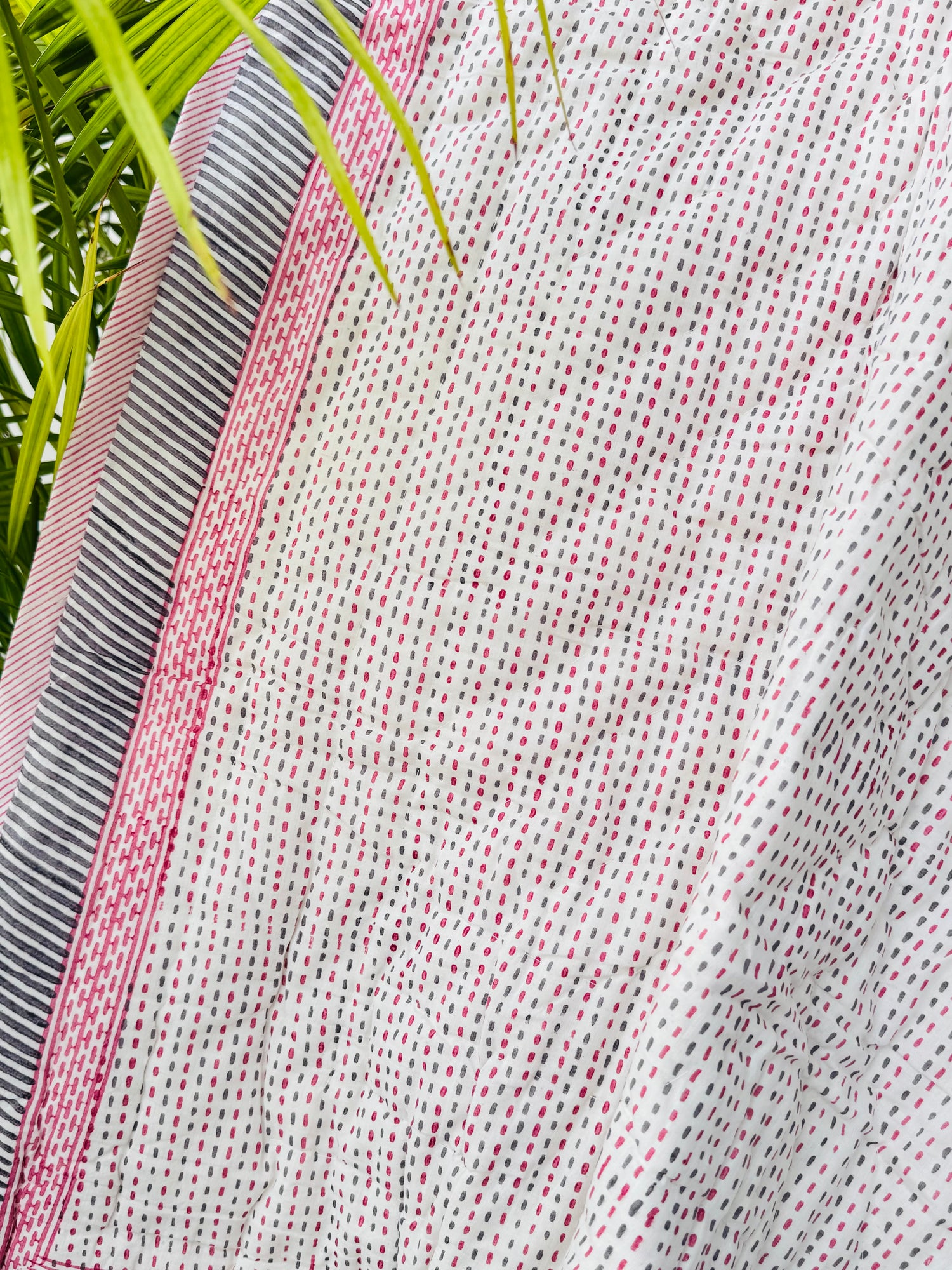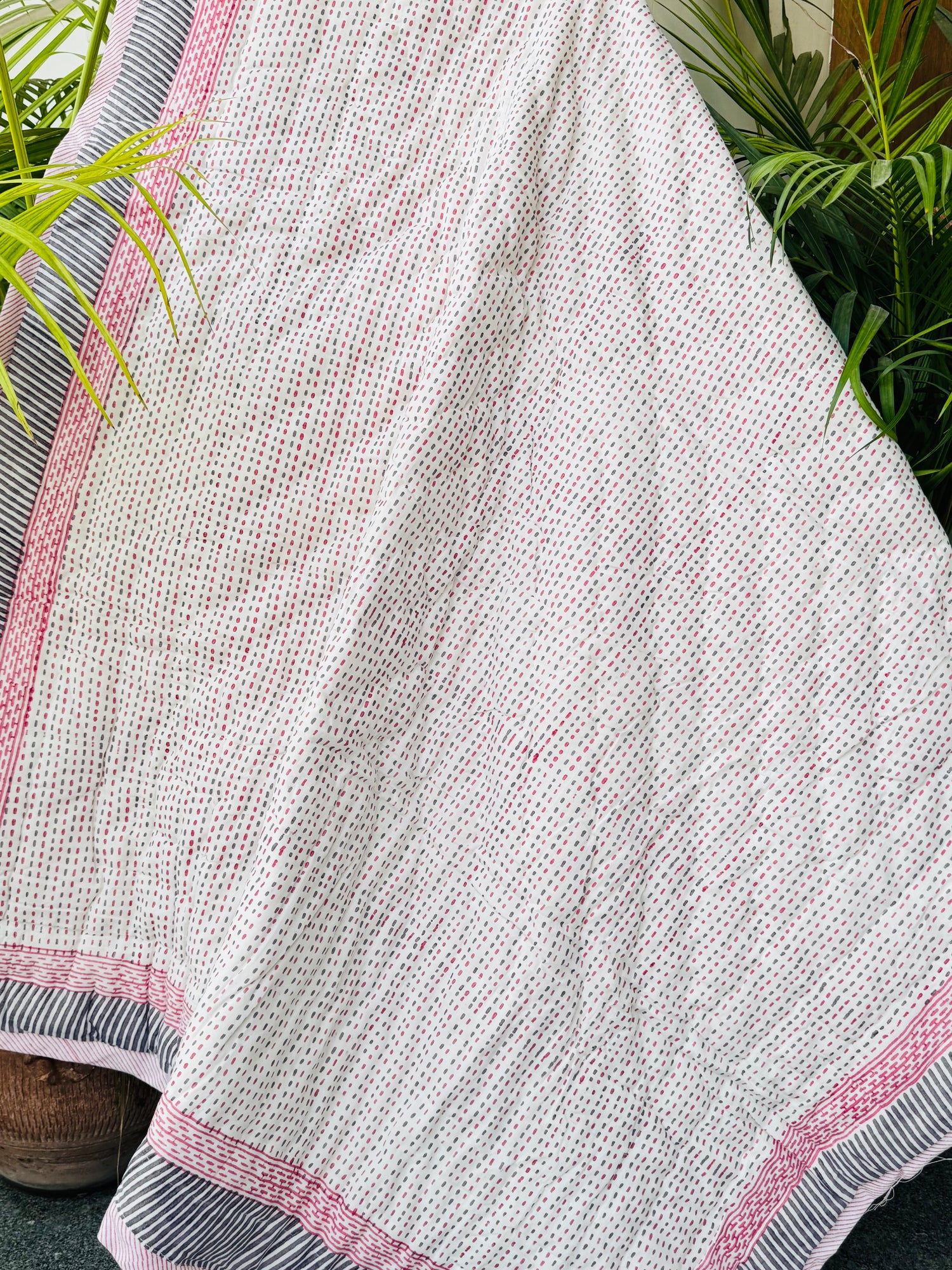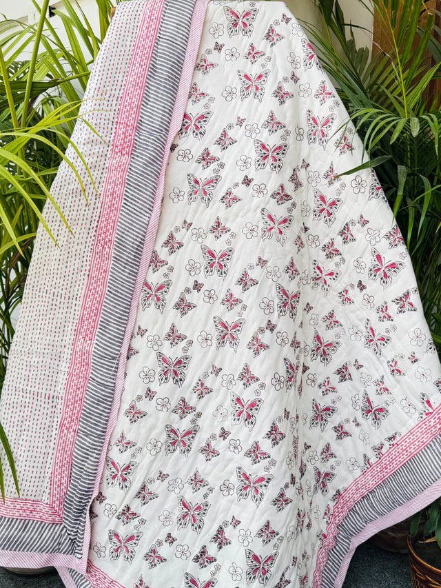 Pink Butterfly Kids Quilt Handblock Printed - Kids Size (60*40 inches) 0-6 yrs is backordered and will ship as soon as it is back in stock.