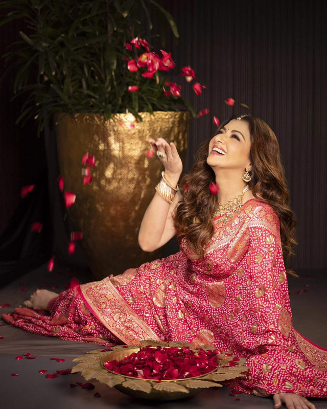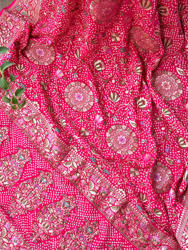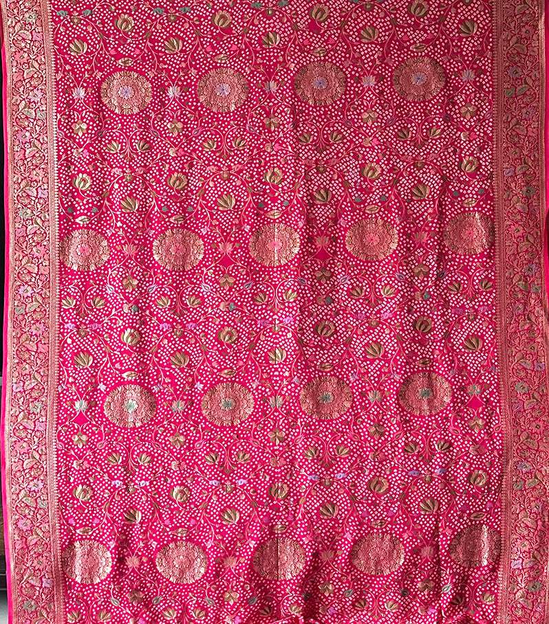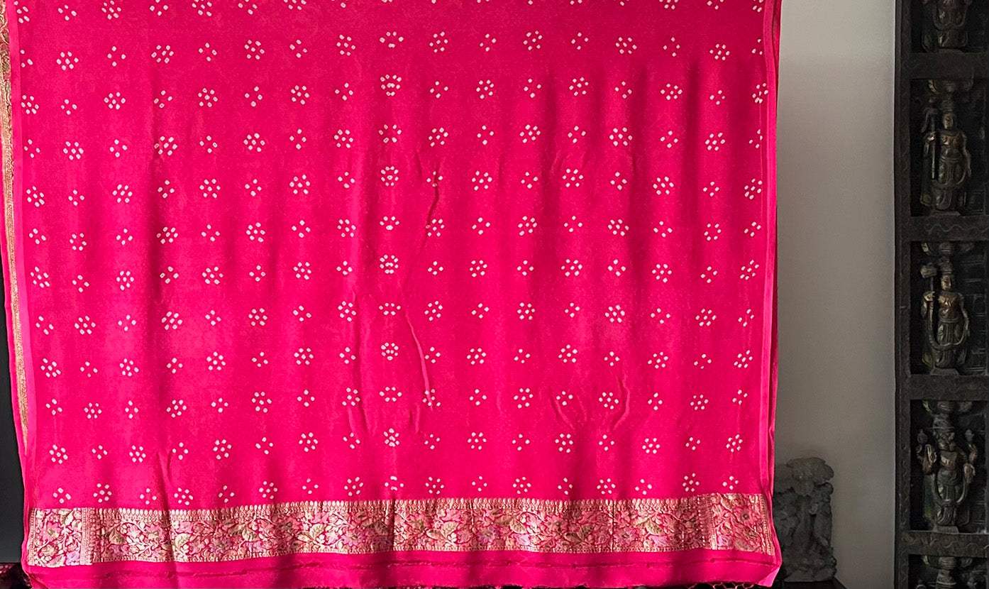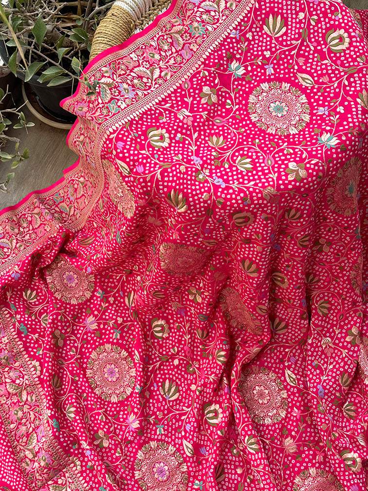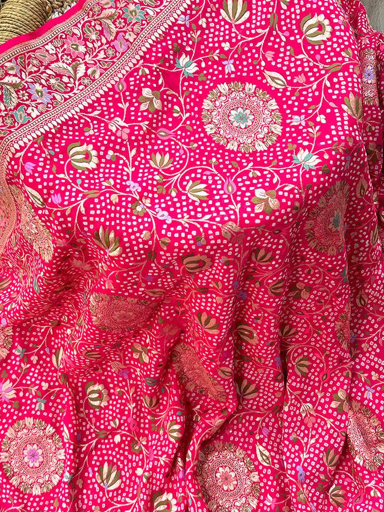Pink Exclusive Handloom Pure Banarasi Georgette Bandhani Saree