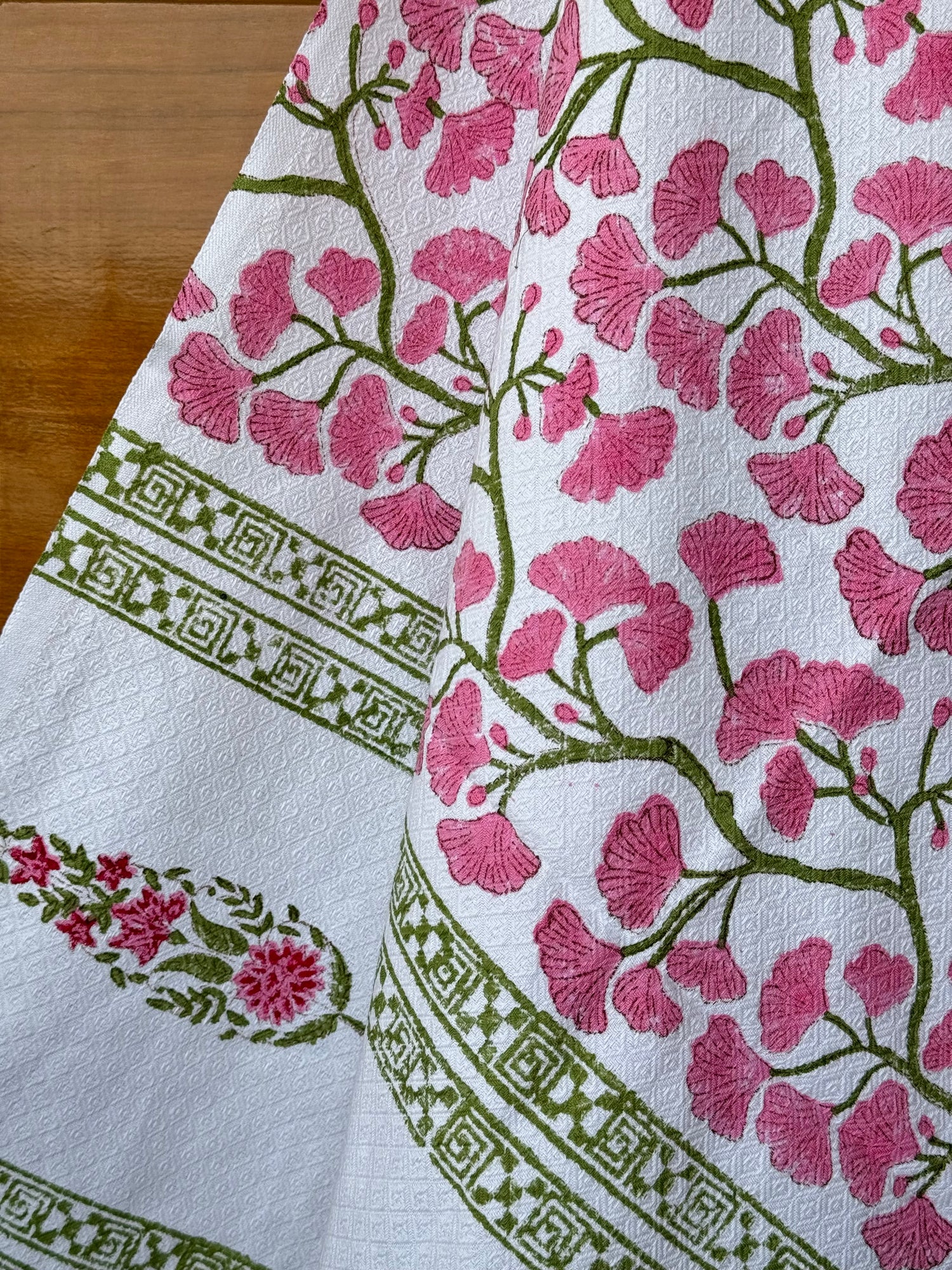 Pink Floral Blockprint Soft Cotton Towel– Cotton Jacquard Weave is backordered and will ship as soon as it is back in stock.