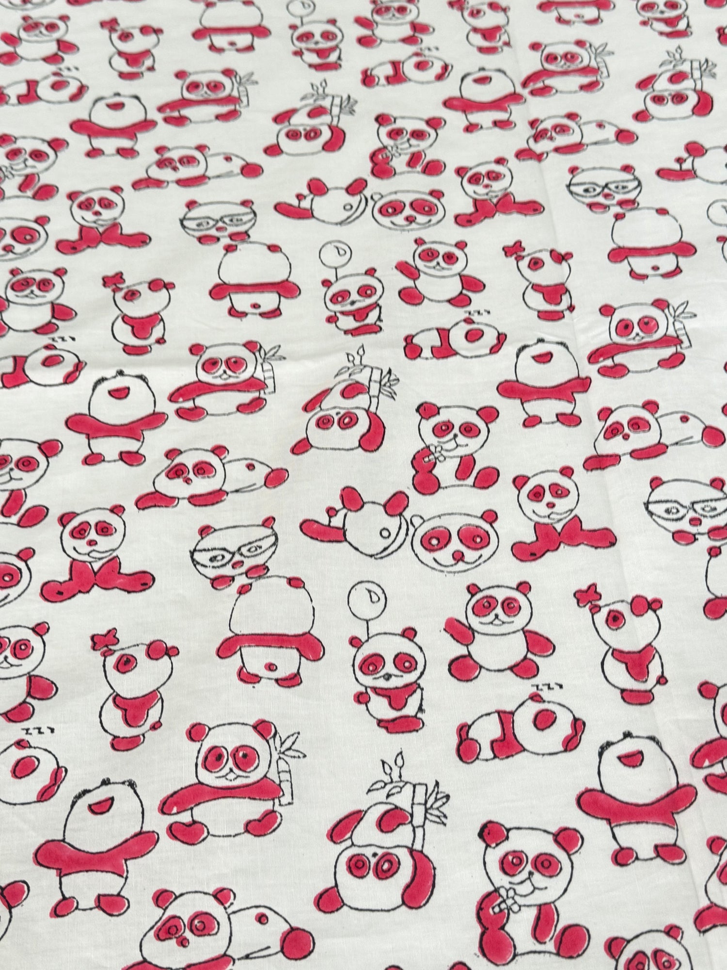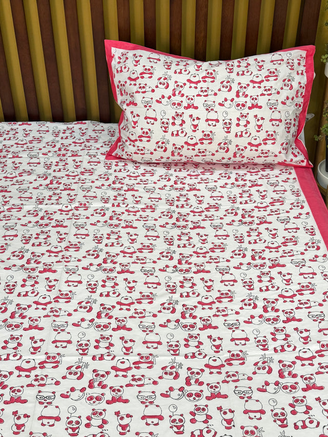 Pink Panda Handblock Printed Kids Cotton Bedsheet - Single Size Bedsheet (90*60 inches)- FLAT is backordered and will ship as soon as it is back in stock.