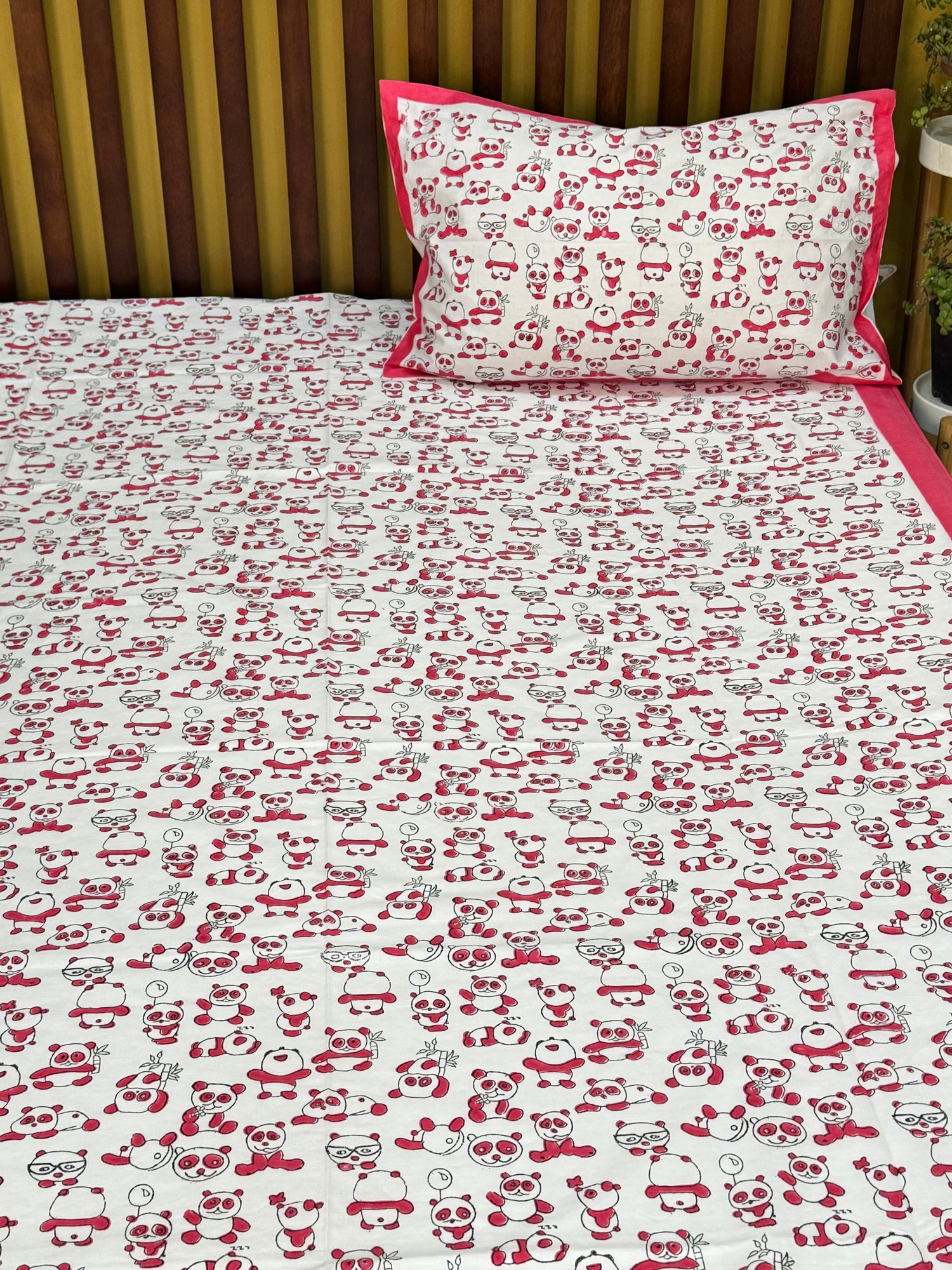 Pink Panda Handblock Printed Kids Cotton Bedsheet
