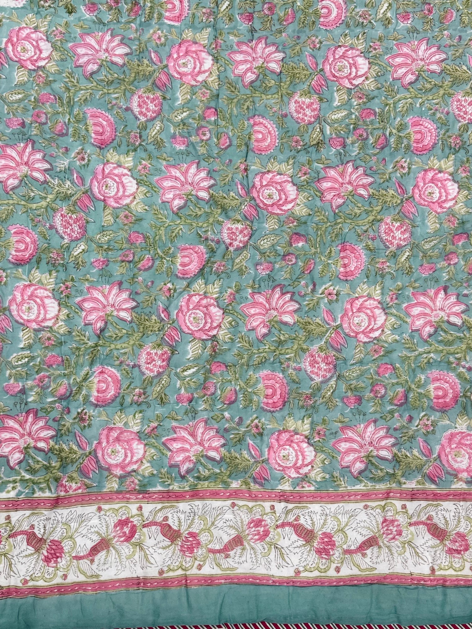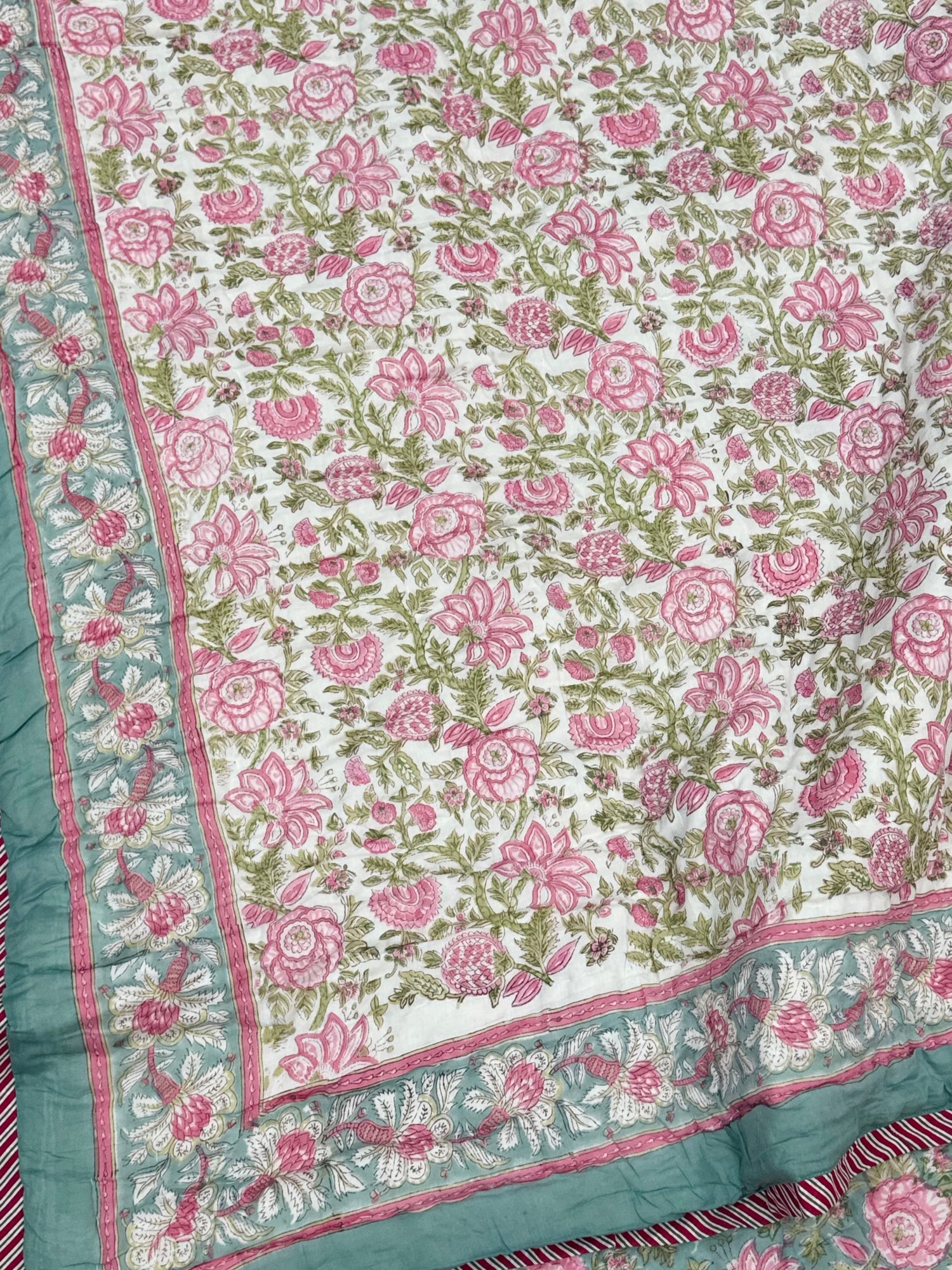 - Hand block printed and hand stitched