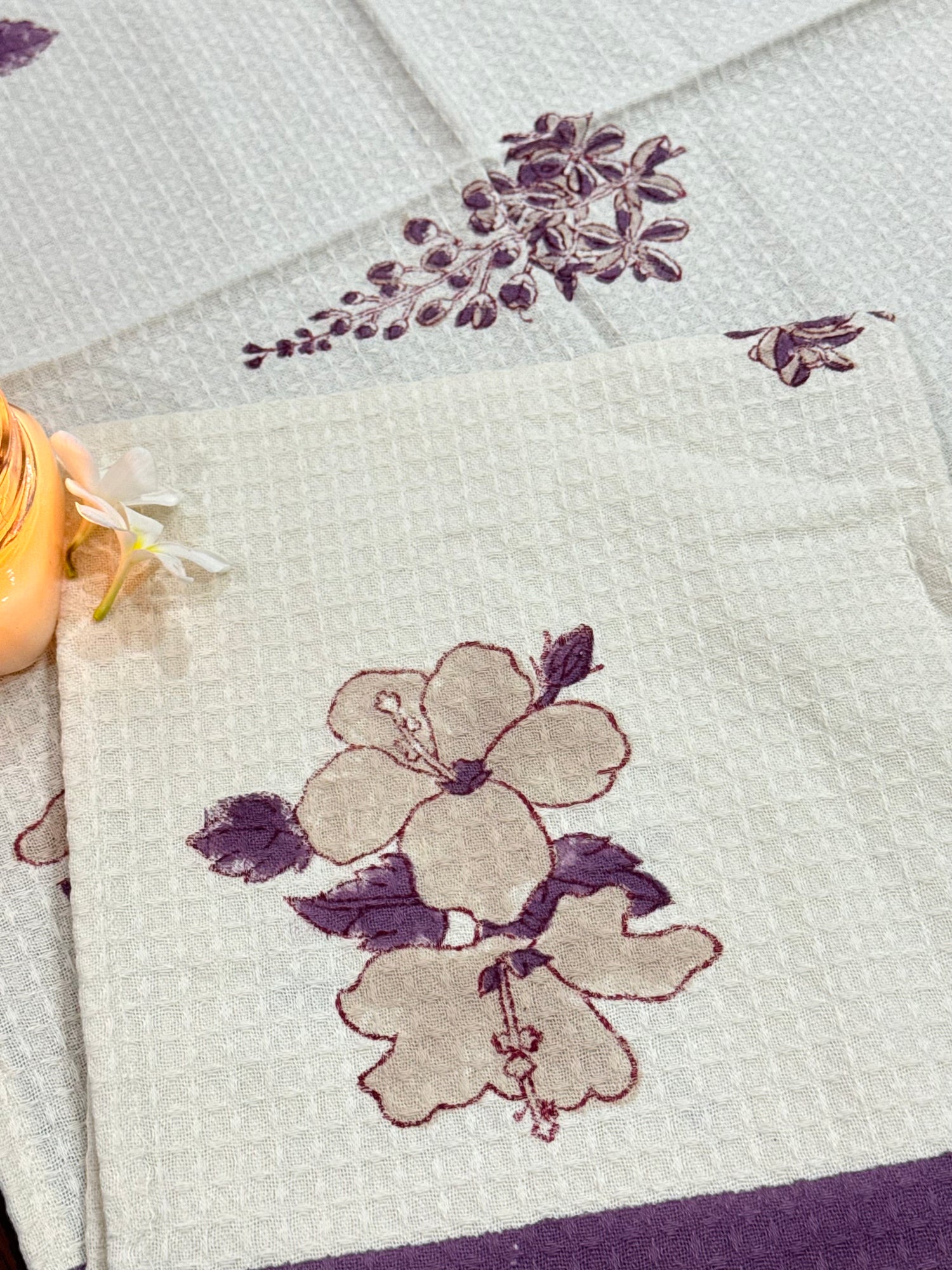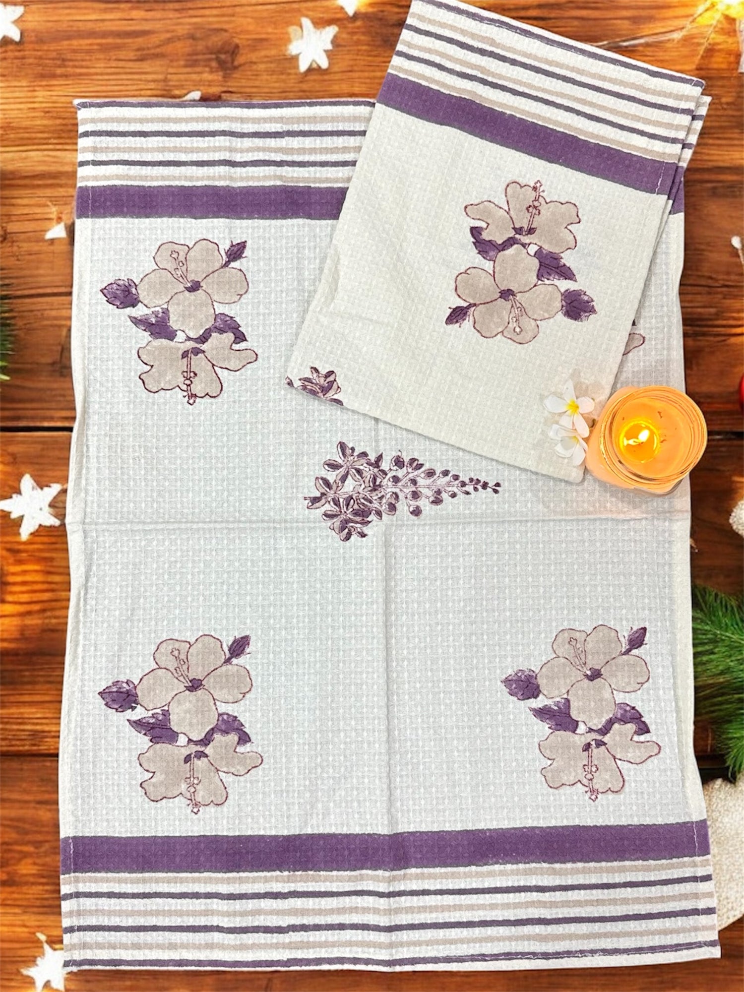 Purple Floral Blockprint Cotton Hand Towel- Set of 2