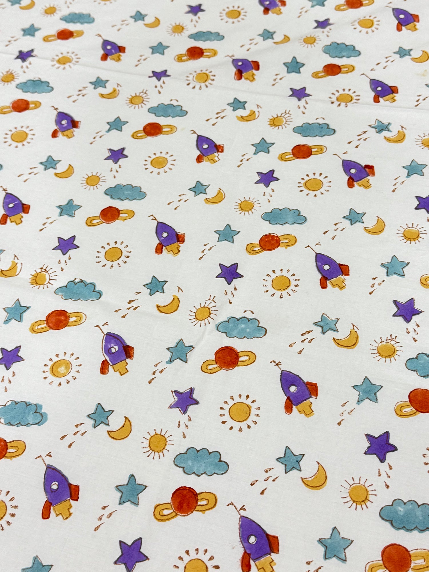 Purple Space rockets Handblock Printed Kids Cotton Bedsheet - Single Size Bedsheet (90*60 inches)- FLAT is backordered and will ship as soon as it is back in stock.