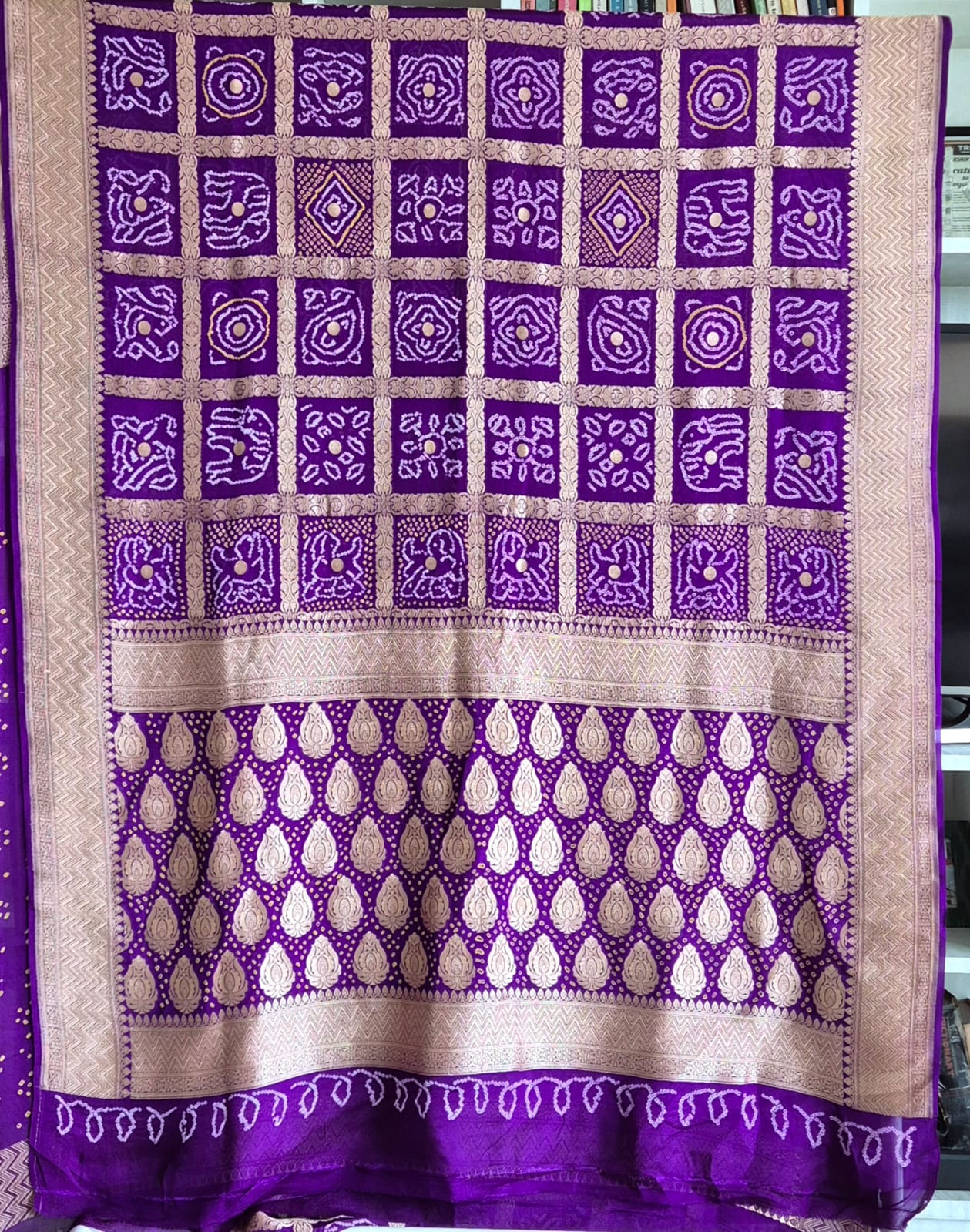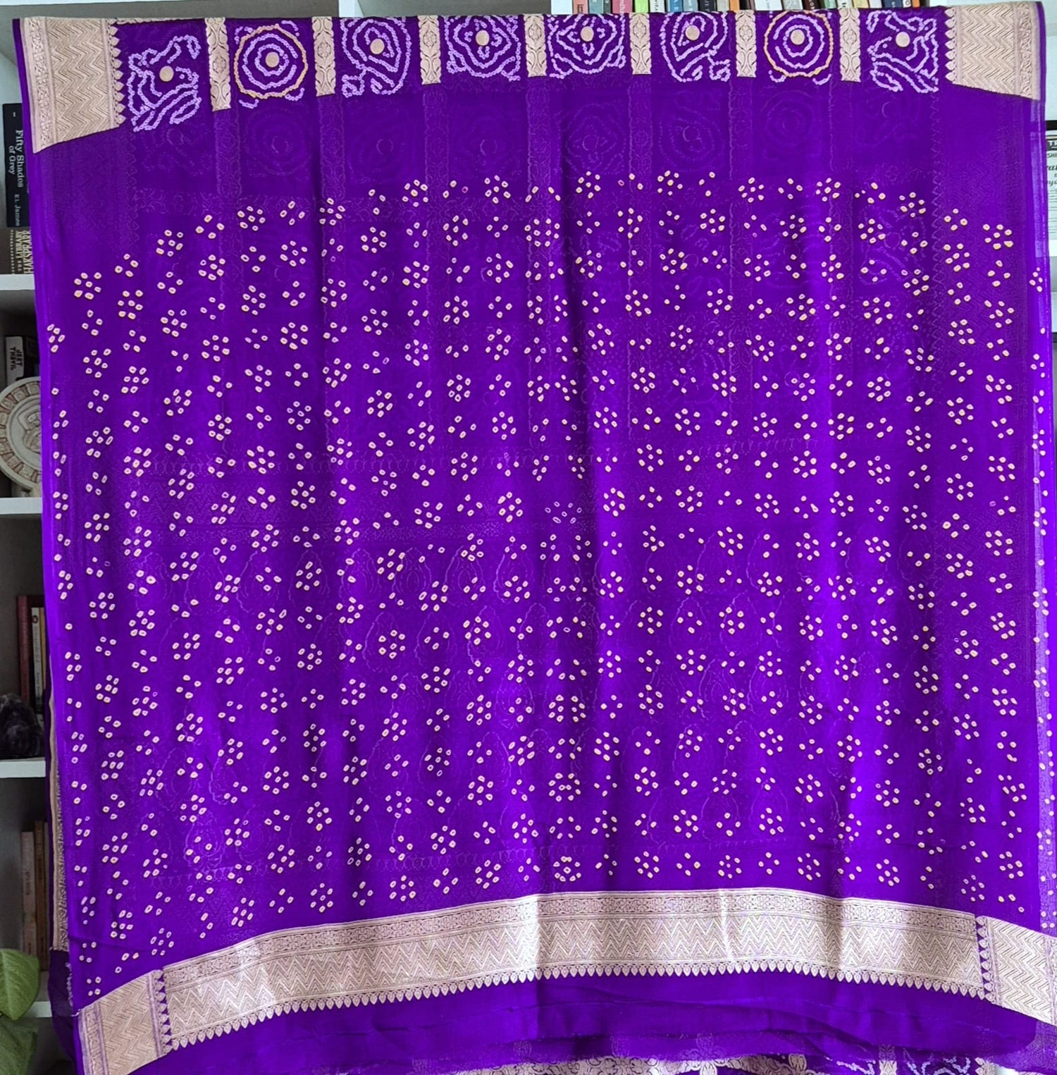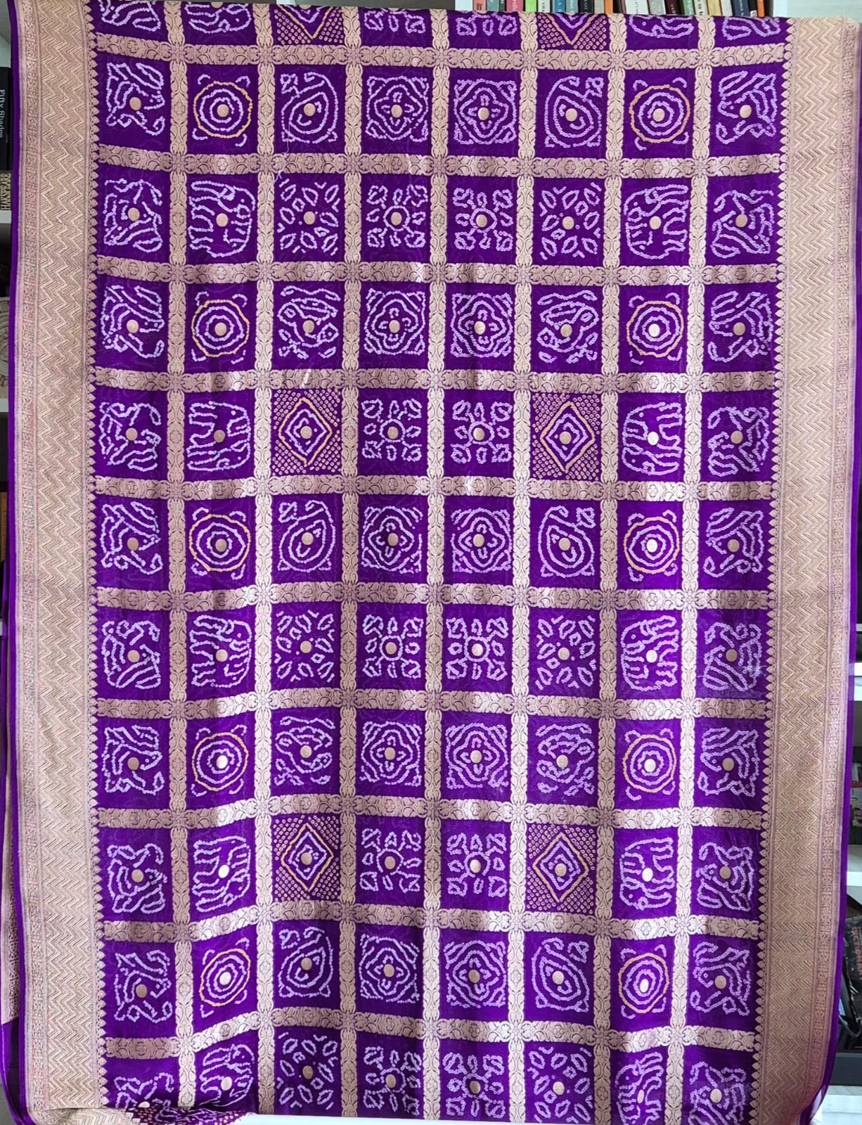 Purple Violet Pure Banarasi Georgette Gharchola Bandhani Saree