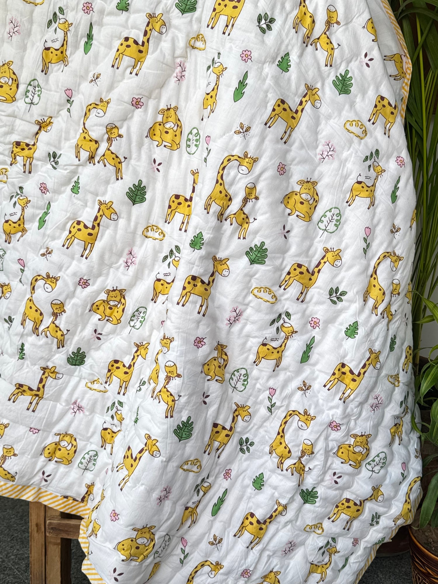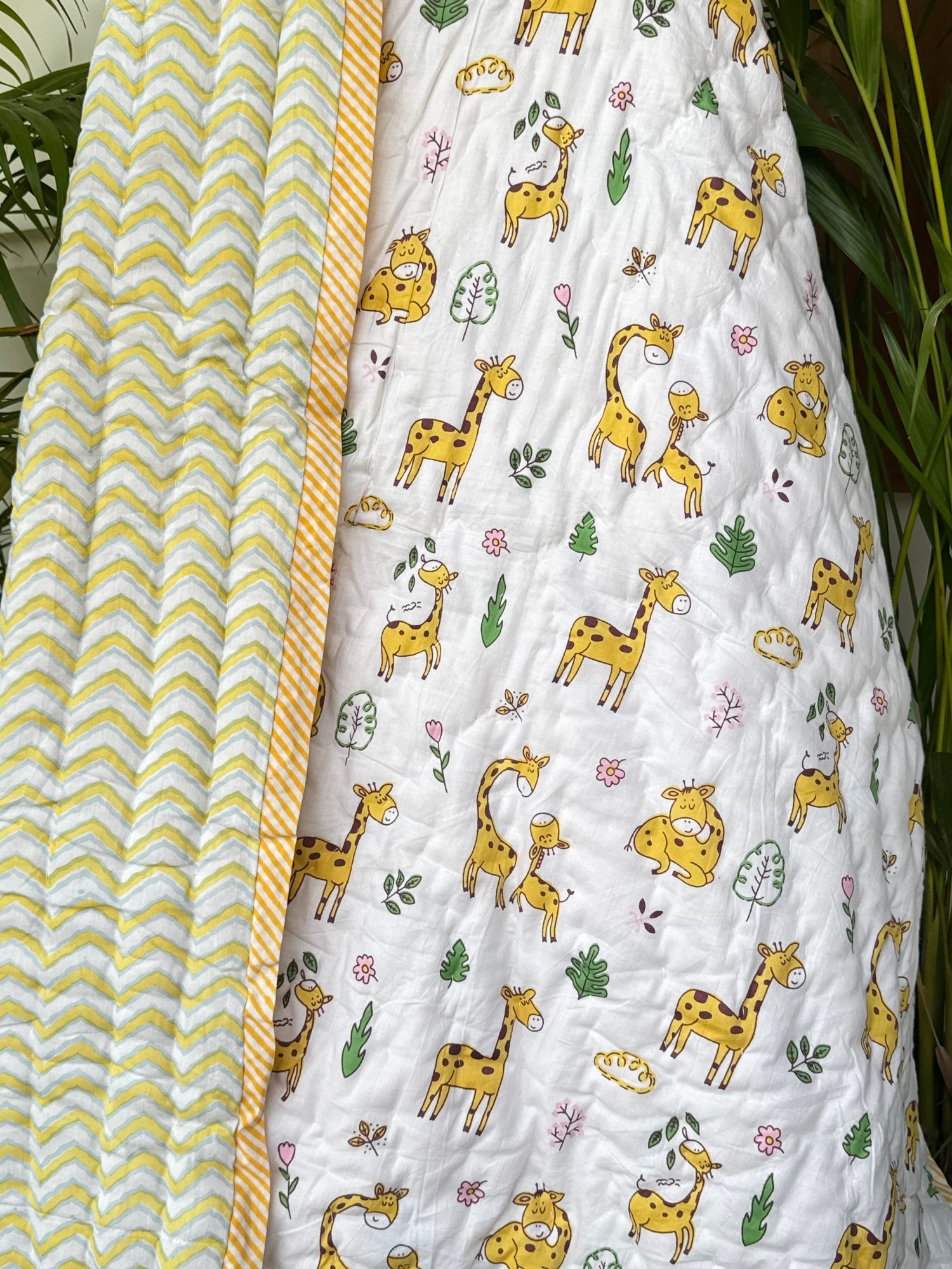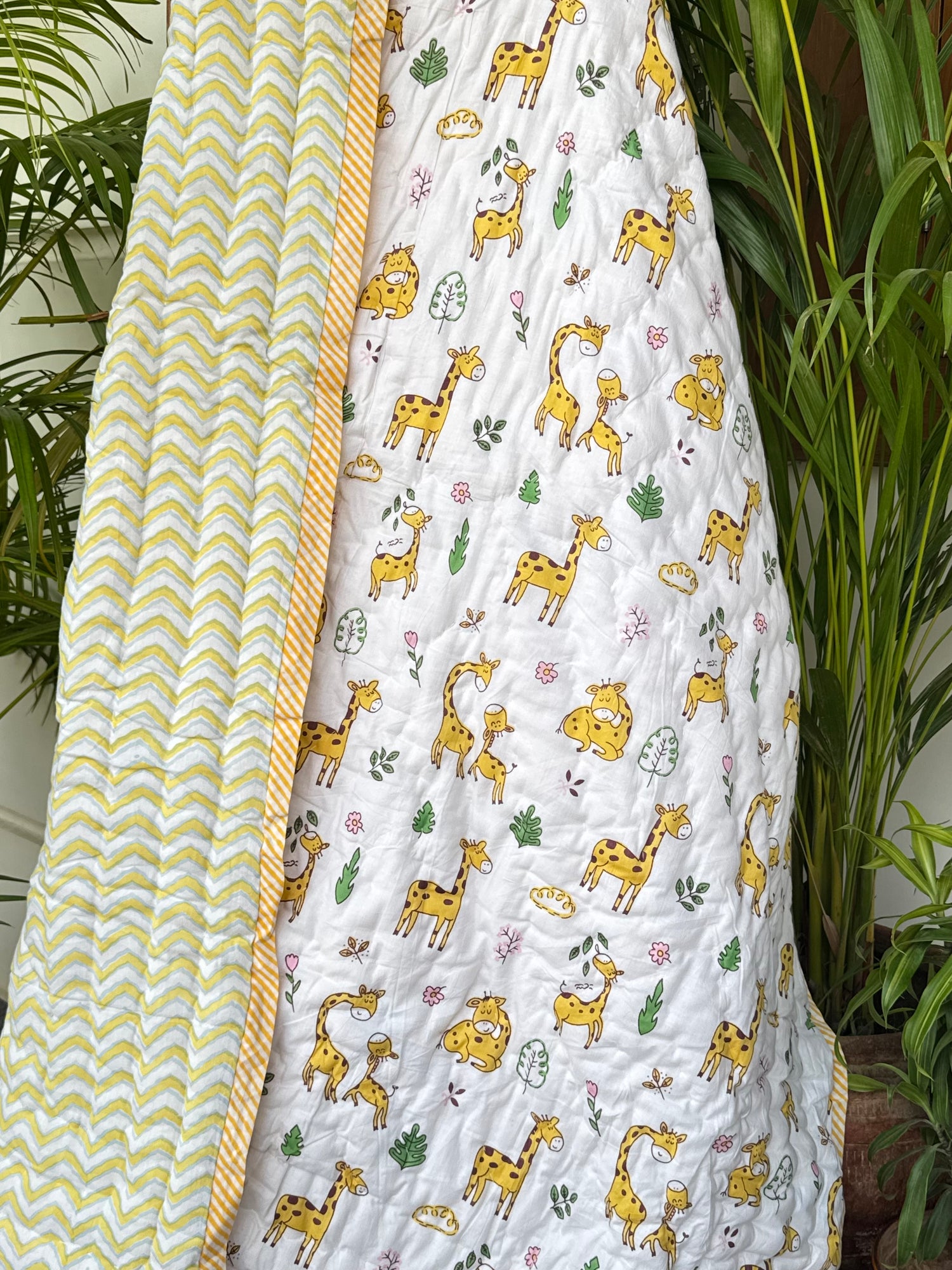 Yellow Giraffe Blockprint Kids Quilt - Baby Size (40*40 inches) 0-2 yrs is backordered and will ship as soon as it is back in stock.