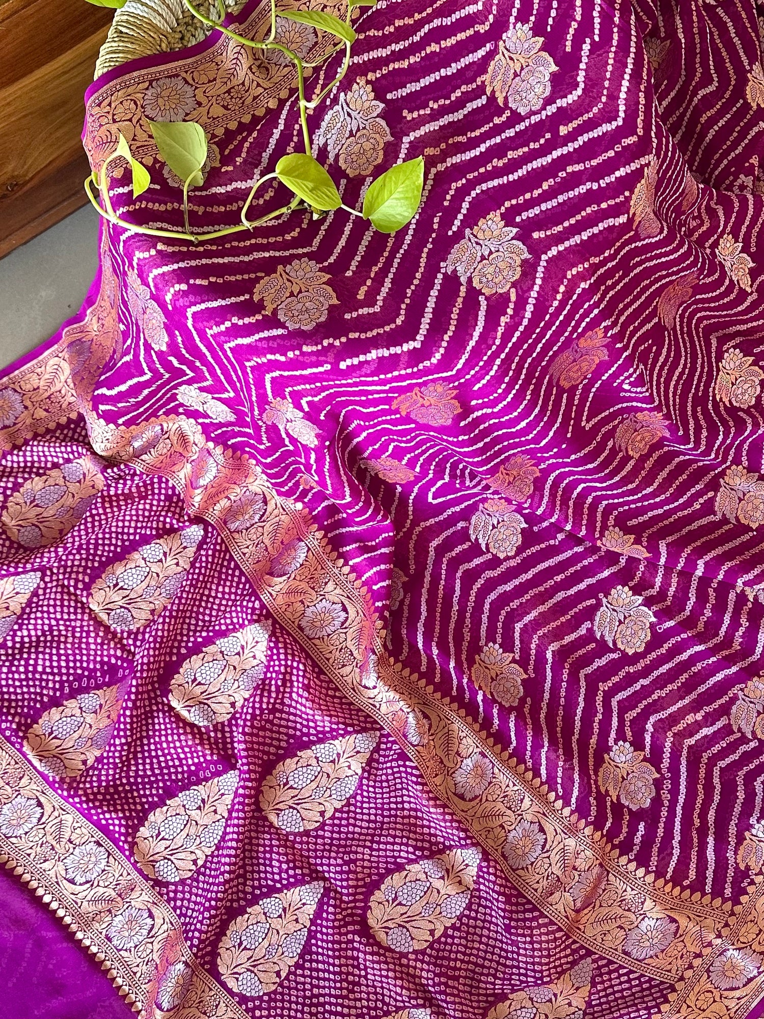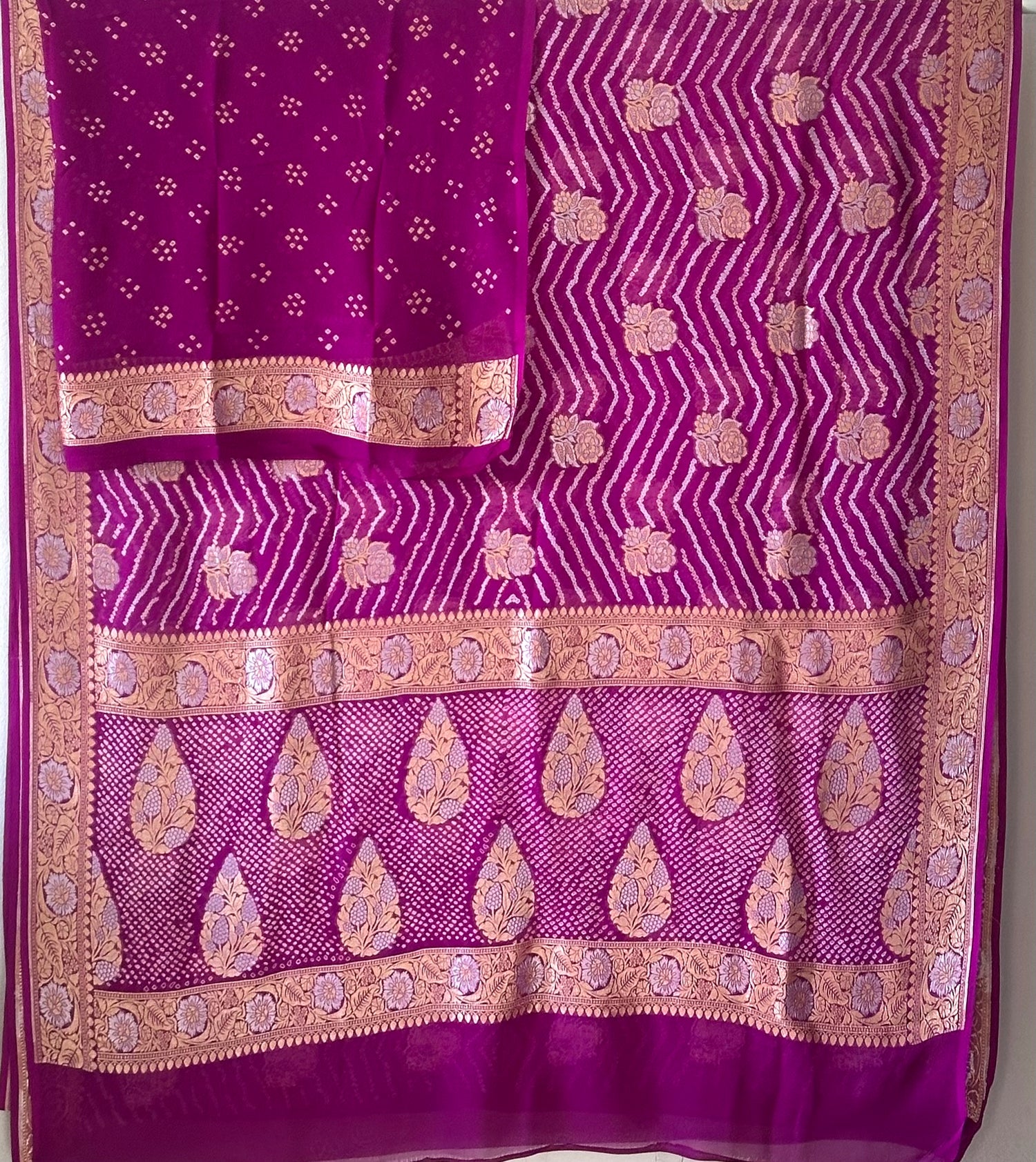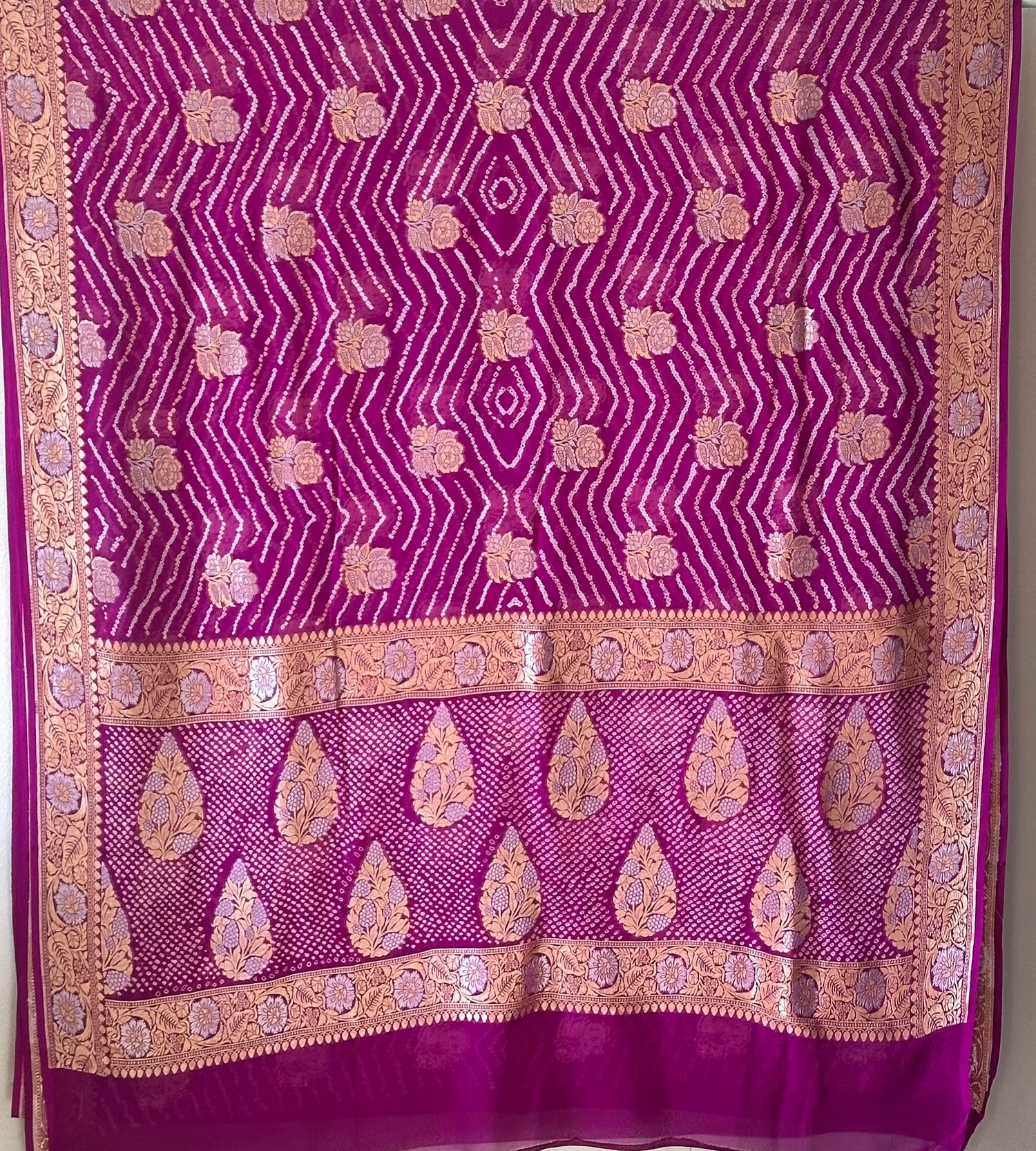 Radiant Amethyst Handloom Pure Bandhani Georgette Saree